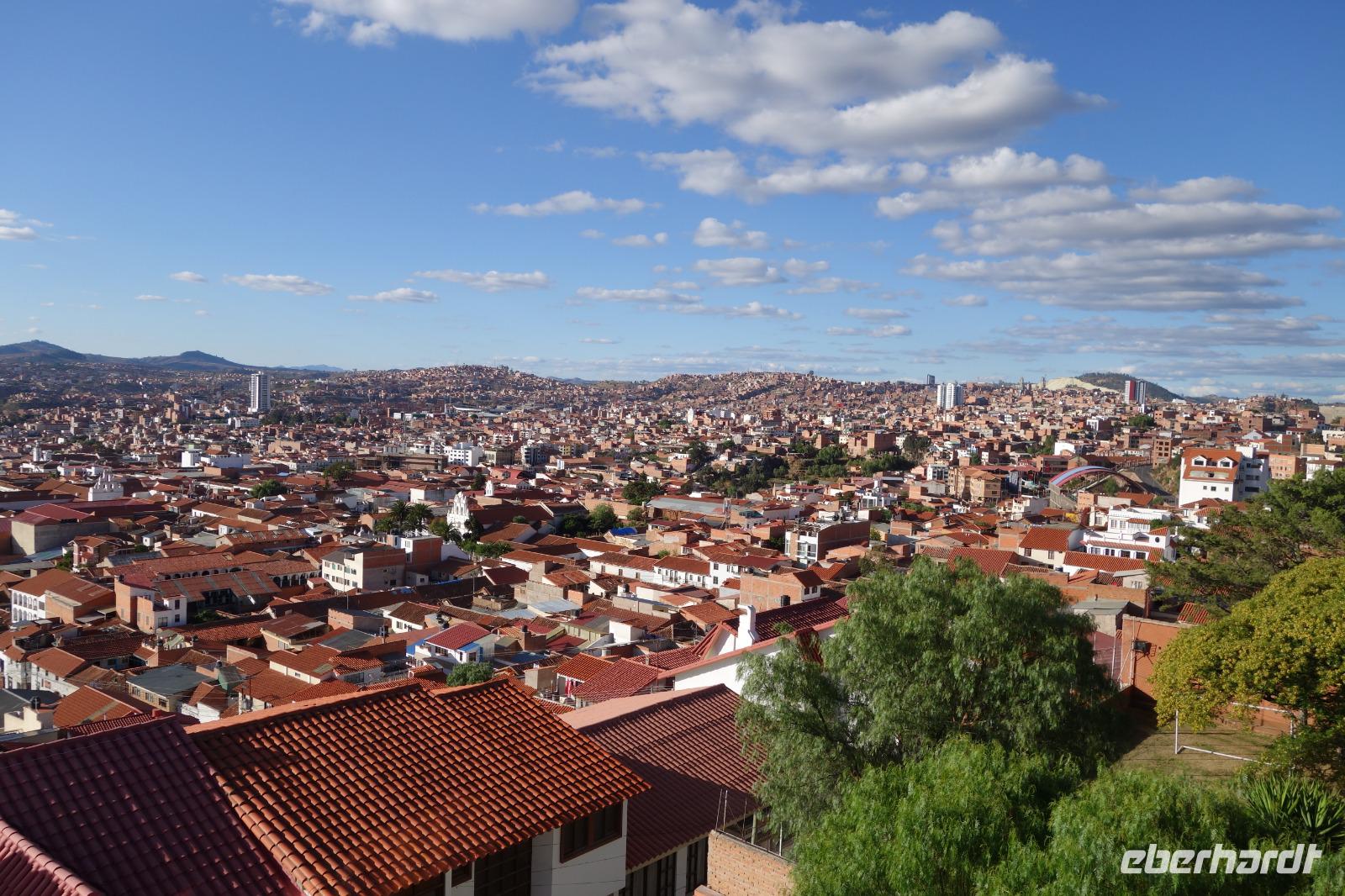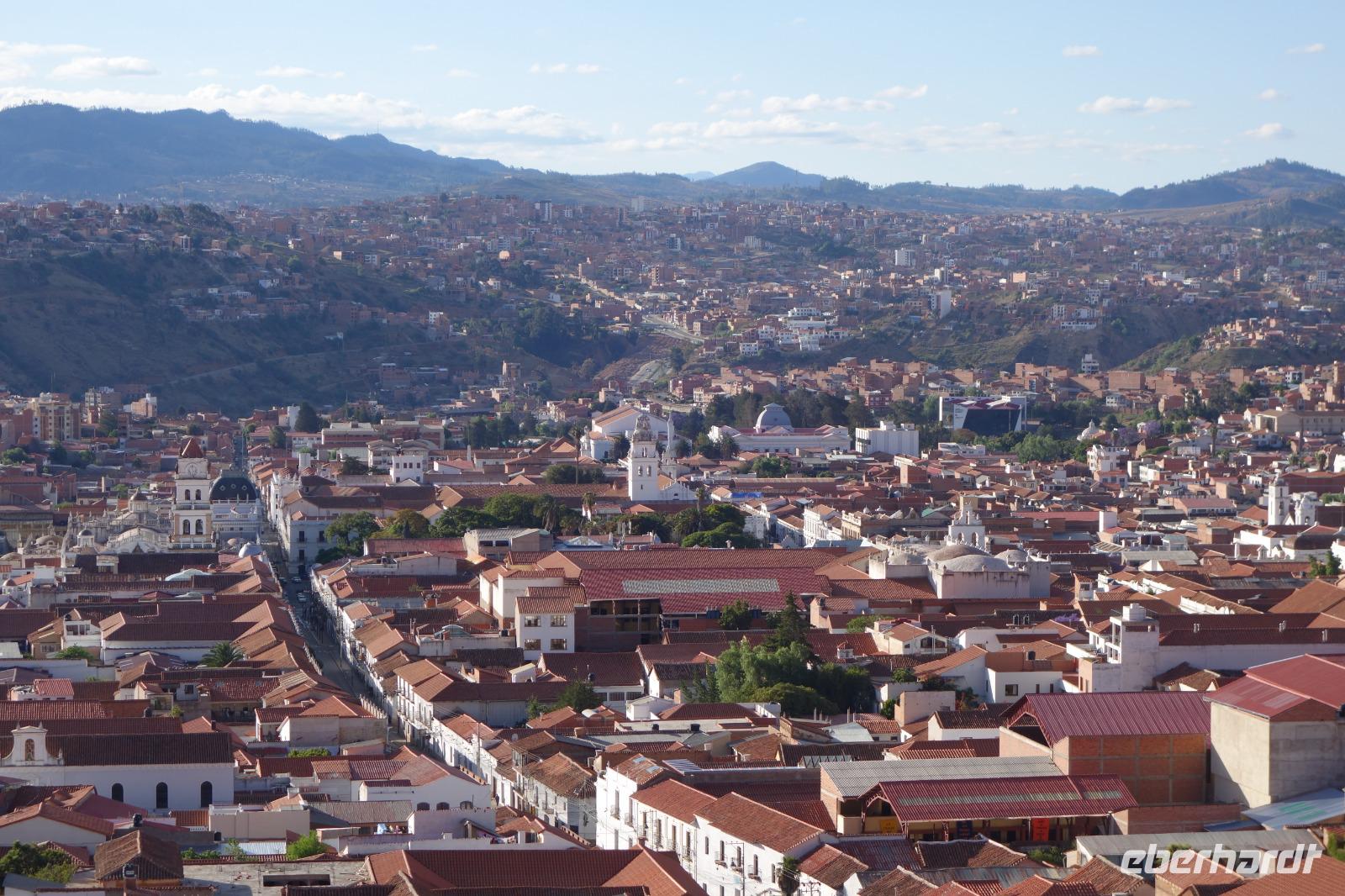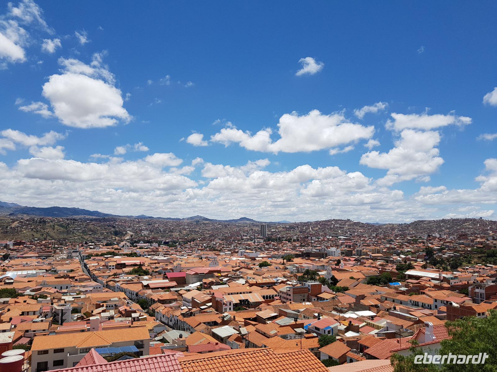 Frühstück ist heute um 7 Uhr und dann ging es gleich los zum Flughafen, da wir um 9.20 Uhr schon per Flugzeug ins bolivianische Hochland reisen sollten und um es genauer zu sagen, in die wohl schönste Stadt Boliviens, Sucre. Am Flughafen verabschiedeten wir uns von Katy und Jose. Katy hat uns sehr gut betreut und durch das Land geführt. Für mich war es eine Ehre mit ihr zusammen zu arbeiten. Echt Klasse. Sie fliegt im Flieger nebenan nach Cochabamba, wo Sie lebt und wir verstehen langsam, warum Sie sich vor vielen Jahren in Bolivien verliebt hat.