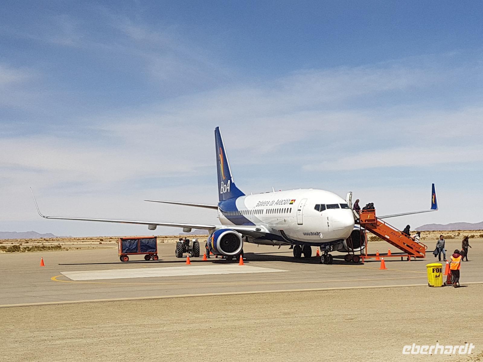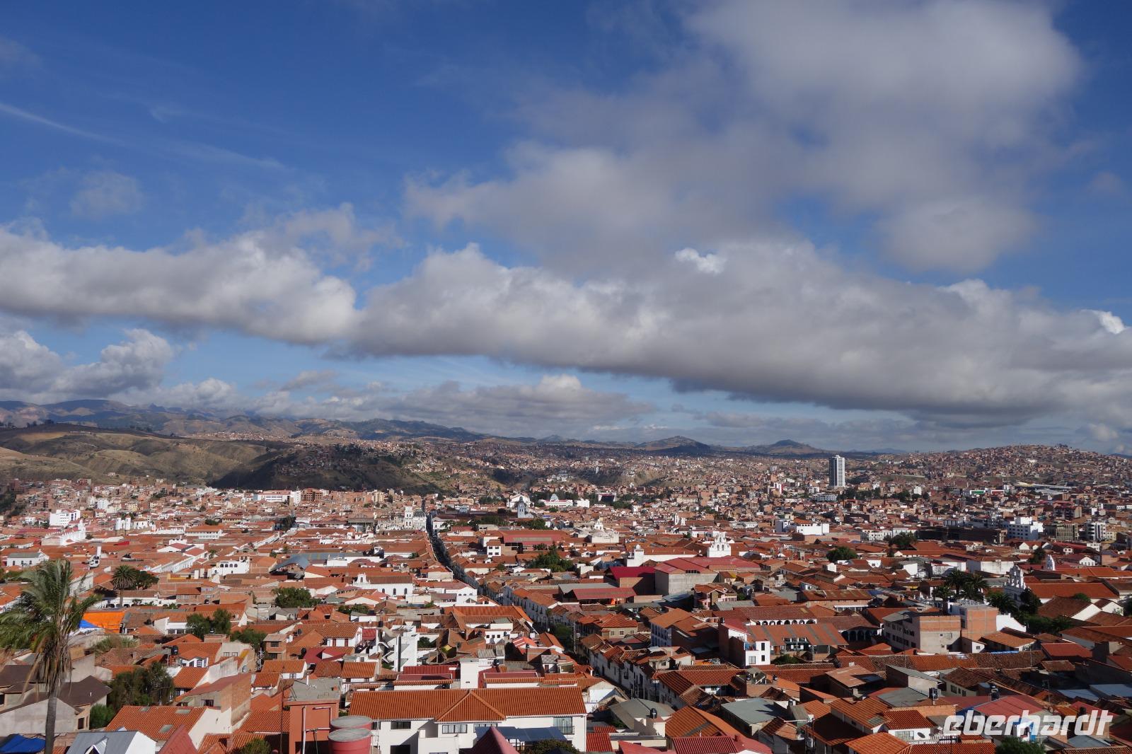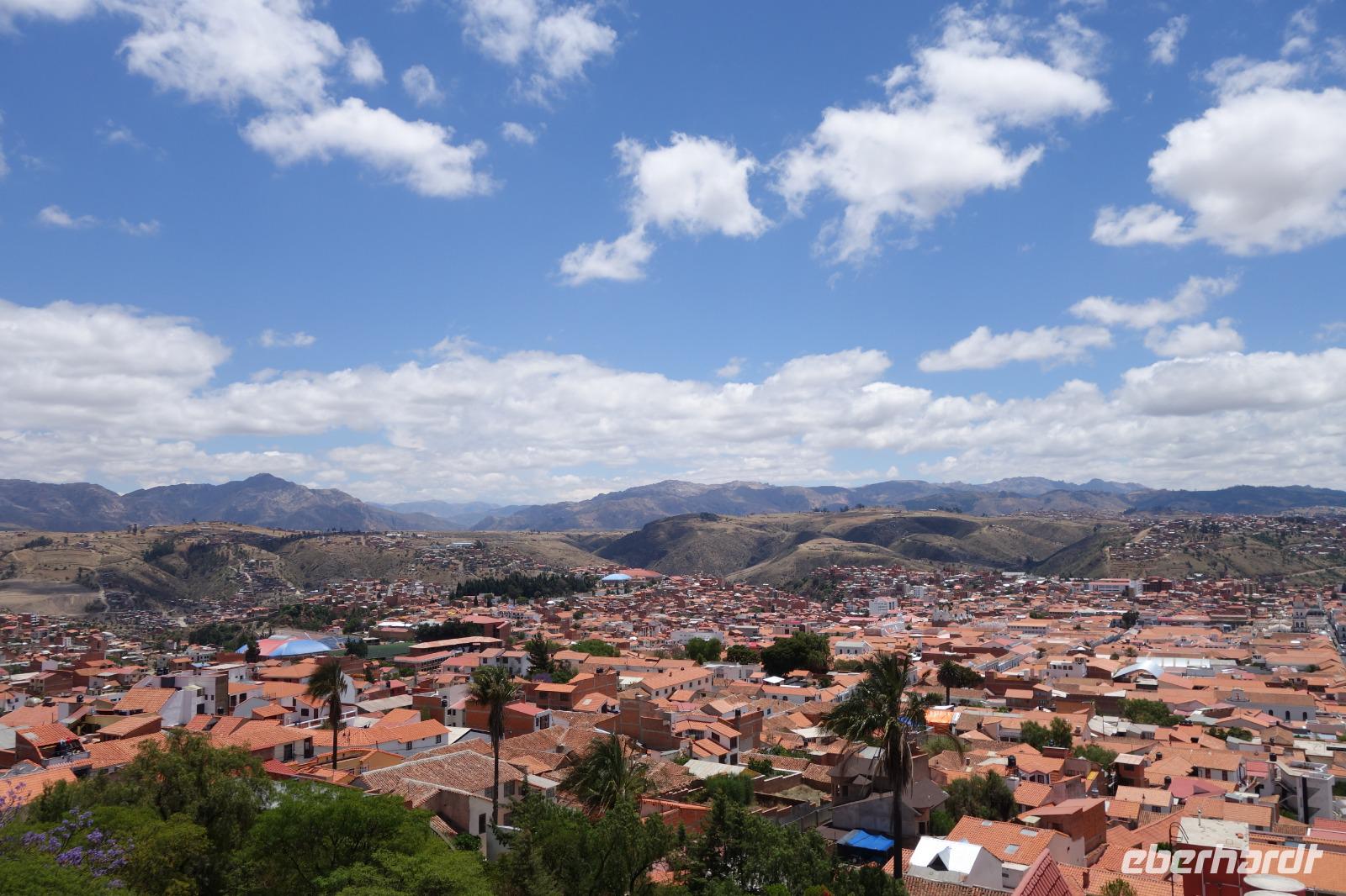 Frühstück ist heute um 7 Uhr und dann ging es gleich los zum Flughafen, da wir um 9.20 Uhr schon per Flugzeug ins bolivianische Hochland reisen sollten und um es genauer zu sagen, in die wohl schönste Stadt Boliviens, Sucre. Am Flughafen verabschiedeten wir uns von Katy und Jose. Katy hat uns sehr gut betreut und durch das Land geführt. Für mich war es eine Ehre mit ihr zusammen zu arbeiten. Echt Klasse. Sie fliegt im Flieger nebenan nach Cochabamba, wo Sie lebt und wir verstehen langsam, warum Sie sich vor vielen Jahren in Bolivien verliebt hat.