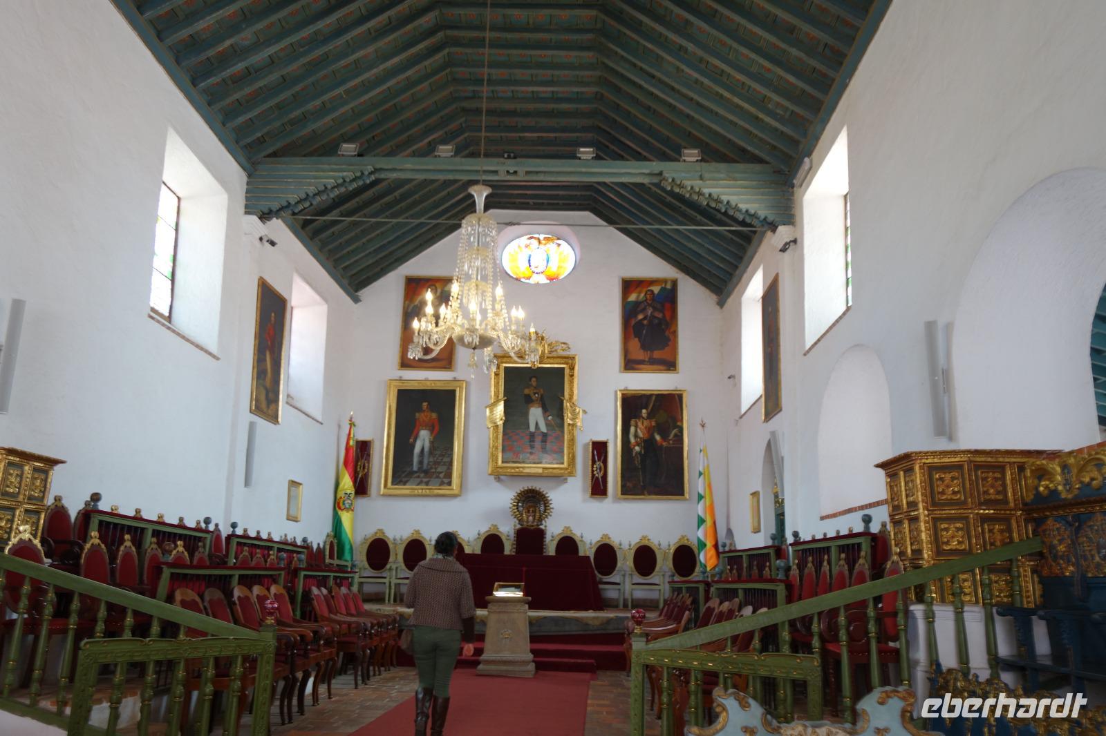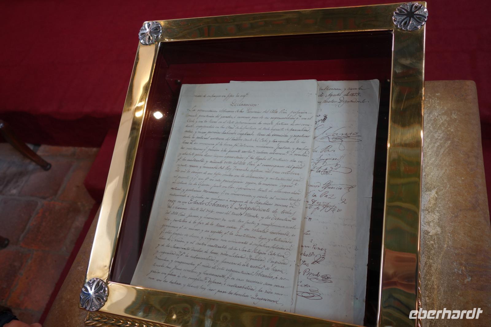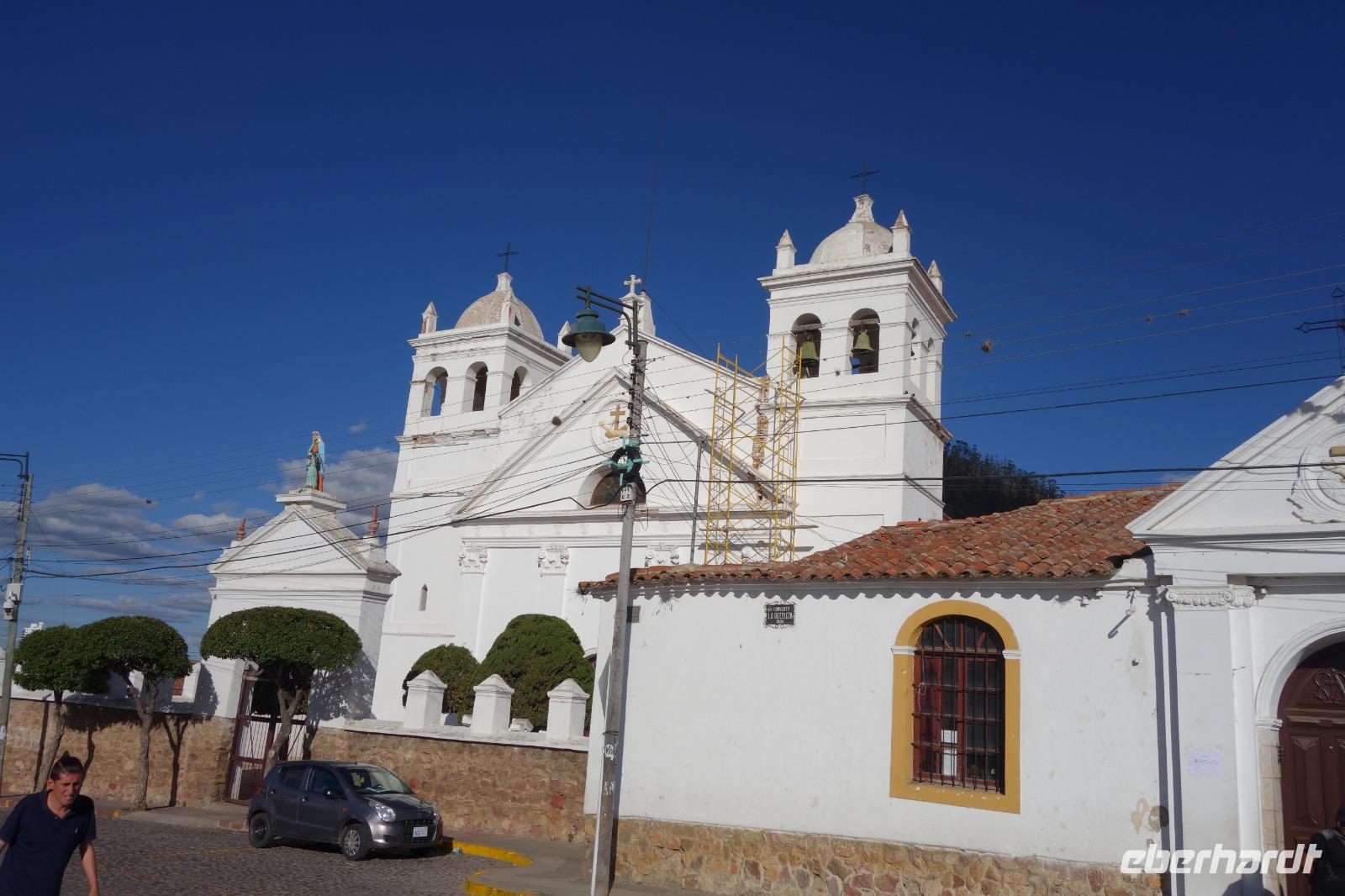 Wir fliegen knapp 35 Minuten und landen am Flughafen in Sucre um 10 Uhr. Die Stadt Sucre liegt 2800 M.ü.NN. Unsere neue örtliche Reiseleiterin Cinthia empfängt uns am Flughafen ganz herrlich und sagt uns, dass es ab heute und die nächsten Tage sehr wichtig ist, viel Wasser zu trinken. Sucre hat uns heute sehr gut gefallen. Wir sind bezaubert von den weißen Kolonialbauten, die Sucre auch den Namen "weiße Stadt Amerikas" einbrachten! Wir fahren erstmal direkt ins Zentrum und besuchen die Casa de la Libertad, die heute am Sonntag um 12:30 Uhr schließt. Hier erfahren wir mehr über die Entstehung Boliviens und über wichtige Persönlichkeiten des Landes, wie Romulo Roma oder Simon Bolivar. Dann fahren wir kurz hoch zu unserem Hotel Kolping mit dem besten Blick auf Sucre. Kurz danach geht es wieder hinunter ins Zentrum zum Mittagessen. Ein tolles Menu für nur 60 Bolivars. Richtig gut. Wir unternehmen einen Rundgang durch die Stadt. Die Kirche und das Konvent können wir erst ab 19 Uhr besichtigen, aber wir spazieren gemütlich um den Hauptplatz herum und weiter bis zum Justizpalast. Der Busfahrer Moises fährt uns zum Supermarkt, damit wir uns für heute und morgen noch etwas holen können. Danach fahren wir zum wunderbaren Aussichtspunkt von "La Recoleta", von dort aus haben wir eine einmalige Aussicht auf Sucre. Am Nachmittag haben wir noch etwas Zeit, um im Hotel oder in der Umgebung zu Entspannen. Um 18 Uhr treffen wir uns alle zum Sonnenuntergang und anschließend zum gemeinsamen Abendessen in einem kleinen Hotel.