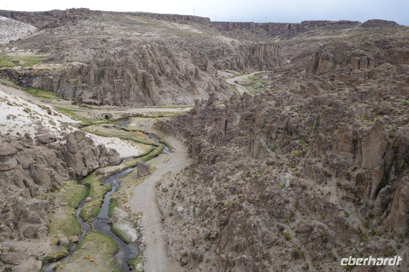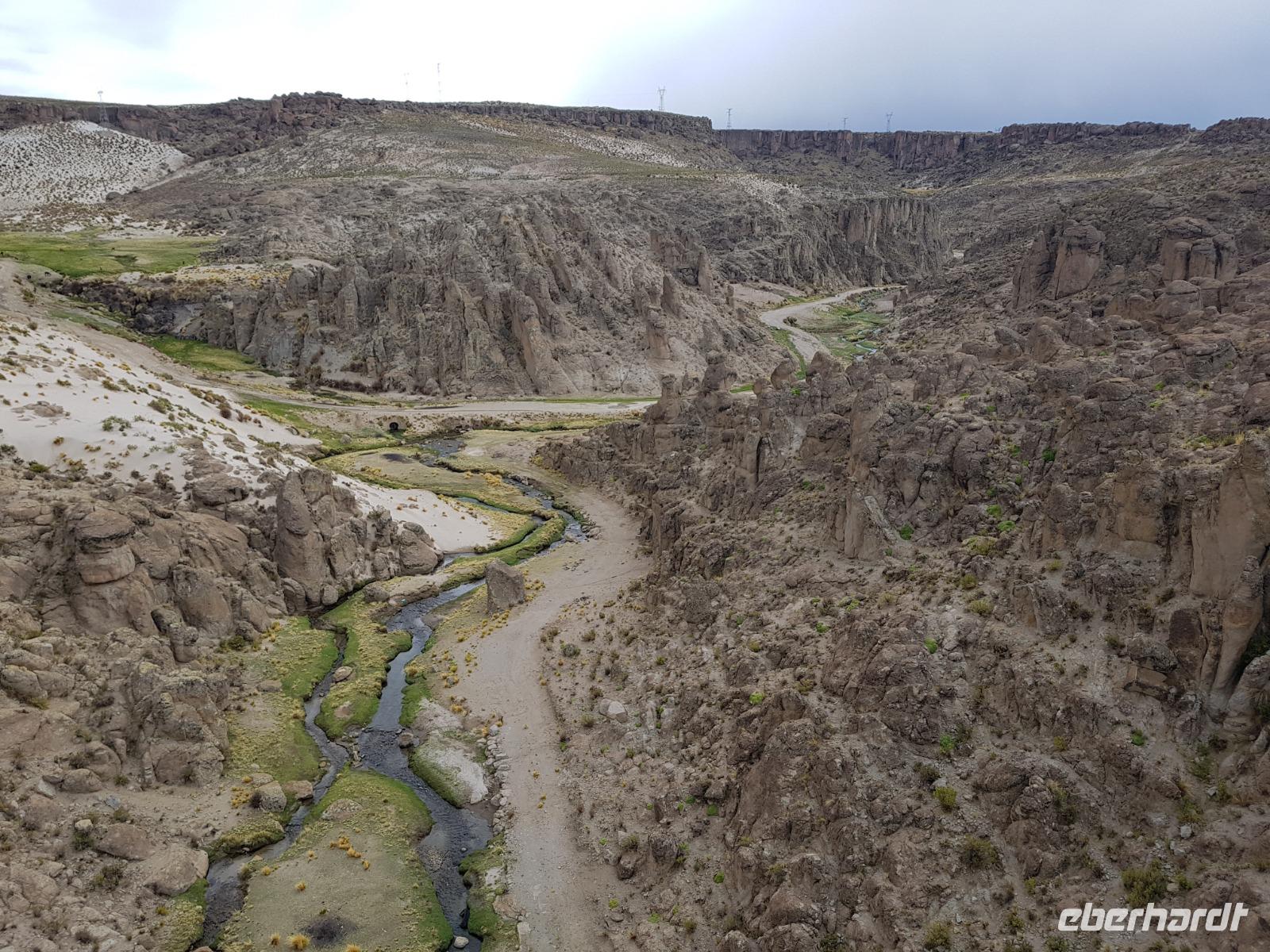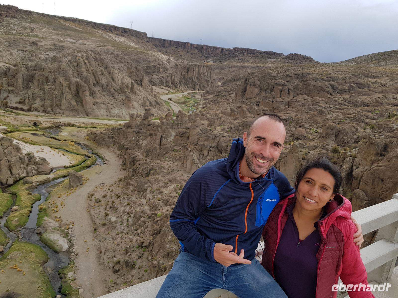 Auf dem Weg nach Potosi machen wir 2 Photo-stops mit Schluchten und tollem Gebirge im Hintergrund. Wir fahren immer nach oben. Heutzutage ist Potosi mit seiner Lage auf 4.000 Metern über dem Meeresspiegel die höchstgelegene Stadt der Welt. Die Höhe fühlen wir ein kleines bisschen aber wir trinken immer viel Wasser und uns gefällt es hier echt. Wir fahren erstmal direkt zum Hotel Patrimonio, um unsere Zimmer zu beziehen und anschließend zum Mittagsessen zu gehen. heute bestellen viele eine typische Suppe, die auf heißen Vulkansteinen serviert wird, damit sie nicht kalt wird.