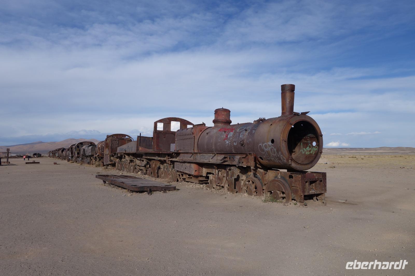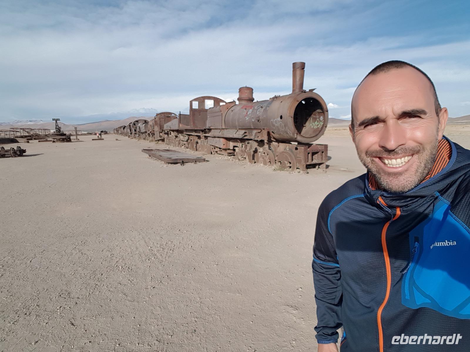 Gut in Uyuni angekomen, fahren wir zuerst zum Zugfriedhof. Ja, von der langen Besiedlungsgeschichte zeugt der Zugfriedhof, auf dem erstaunlich gut erhaltene Lokomotiven und Wagen aus dem 19. Jahrhundert zu sehen sind. Unser Hotel Jardines de Uyuni gefällt uns sehr gut. Es hat sogar einen Pool und eine Sauna, falls man das benutzen will. Wir treffen uns nochmals in Hotel um 19 Uhr zum Abendessen und wie gesagt, wir freuen uns sehr auf morgen.