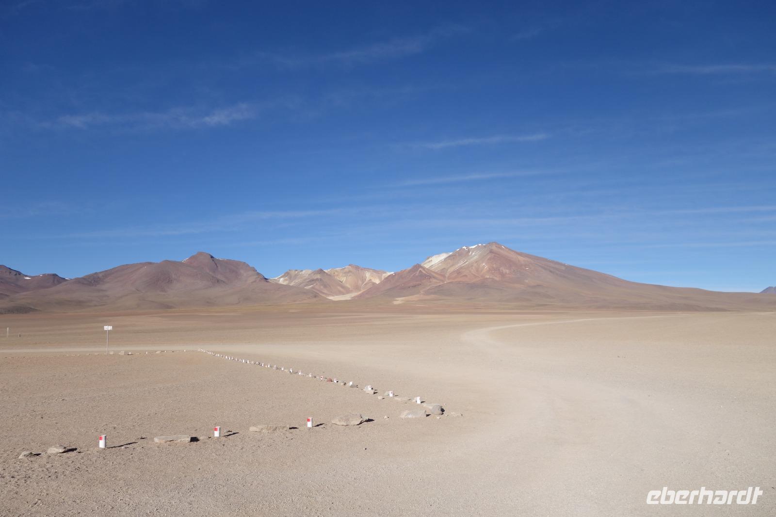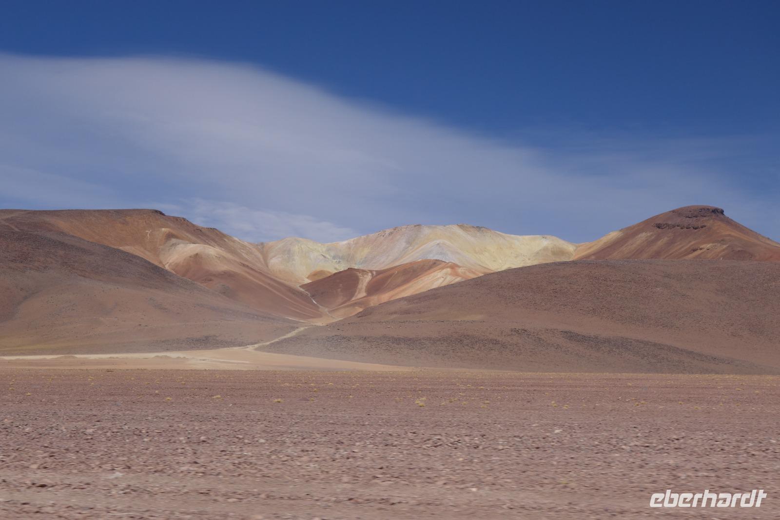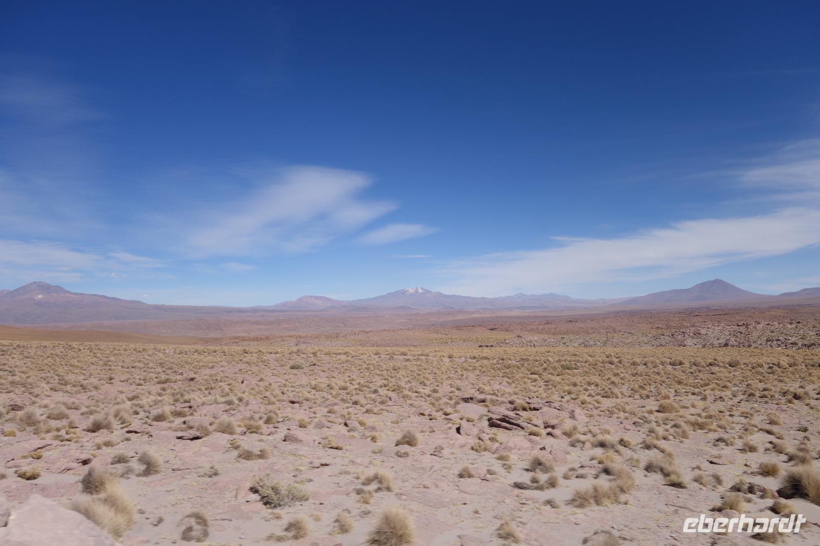 Heute hat Benjamin von Eberhardt Travel gemeinsam mit Cinthia im Supermarkt eingekauft und alle Gäste zu einem gemeinsamen Picknick eingeladen. Wir verlassen Potosi und Cerro Rico voll Mineralien und fahren weiter in den kleinen Wüstenort Uyuni. Die Fahrt heute ist besonders schön, wir sehen endlose Straßen und die Landschaft und Fauna, die sich langsam verändert. Wir sehen schon die ersten Lamas und Vicunas. Im Hintergrund sieht man auch ein Vulkan. Das Wetter verändert sich im laufe des Tages und ab und zu regnet es ein bisschen. Wir machen auf dem Weg verschieden Photo-Stopps, einen am Ort ds Picknicks und einen von einem höheren gelegenen Punkt aus, von wo man den Uyuni Salz See im Hintergrund sehen kann. Wir freuen uns schon sehr auf morgen und die nächsten 3 Tage. Ein Highlight der Reise.
