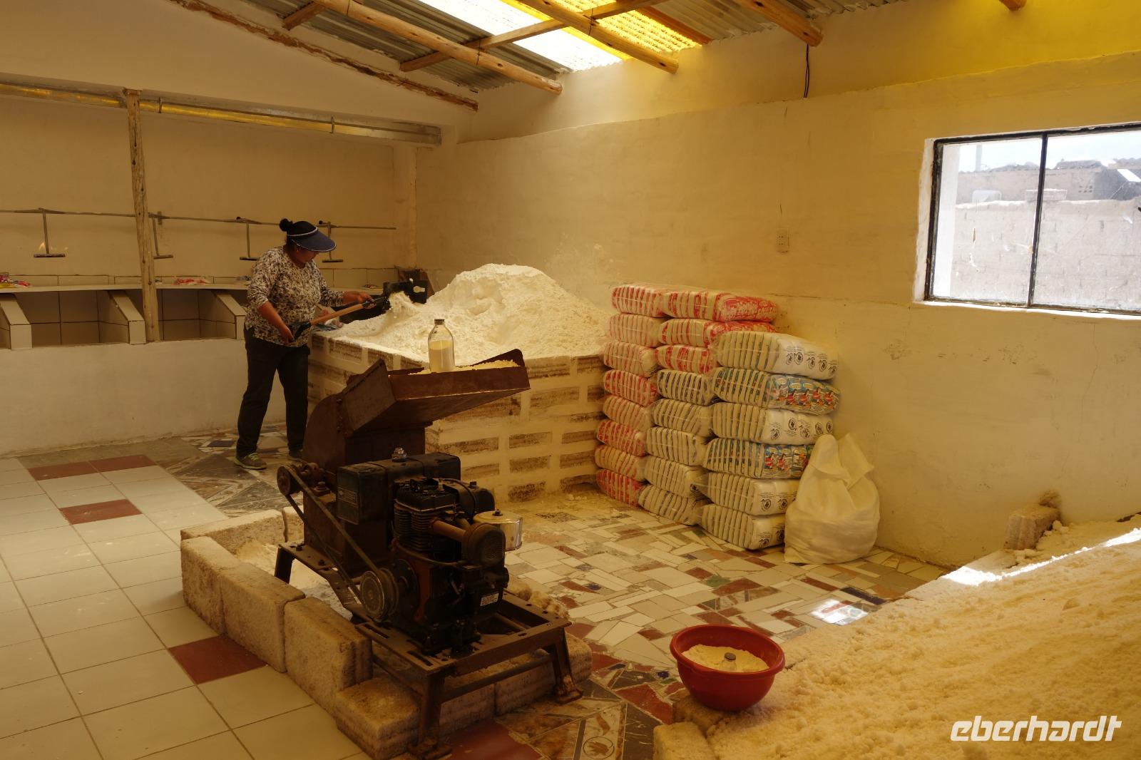 den typischen kolonialen Gebäuden (Kirchen, Klöster und Türme) von Potosi. Wir besuchen gemeinsam die wichtigste Sehenswürdigkeit der Stadt: "Casa de la Moneda" oder die "königliches Münzhaus". Es war sehr interessant. Hier haben wir mit Cinthia einen guten Einblick in die geschichtliche Entwicklung des Silberbergbaus erhalten und wie Sie damals die Münzen geprägt haben.