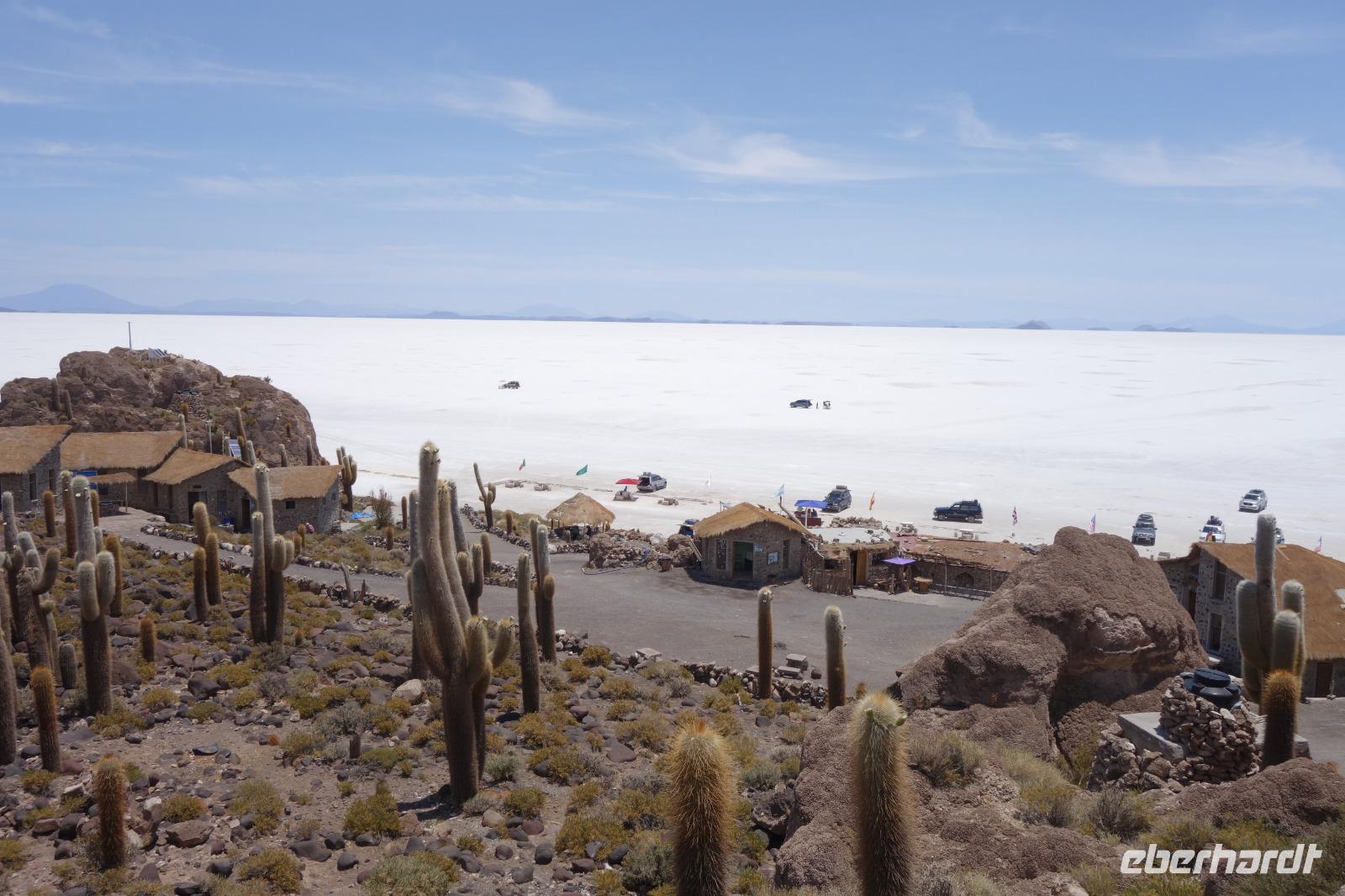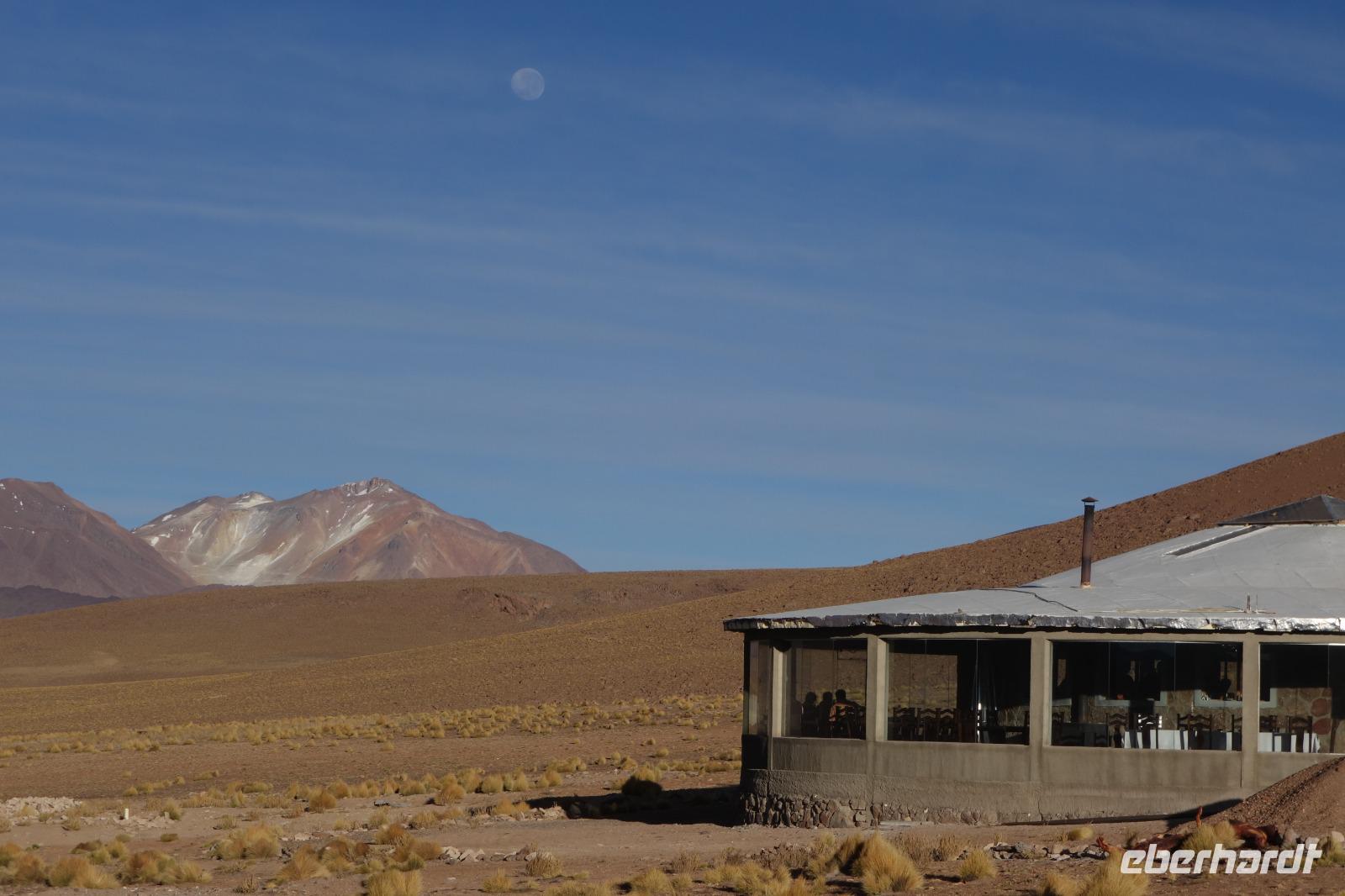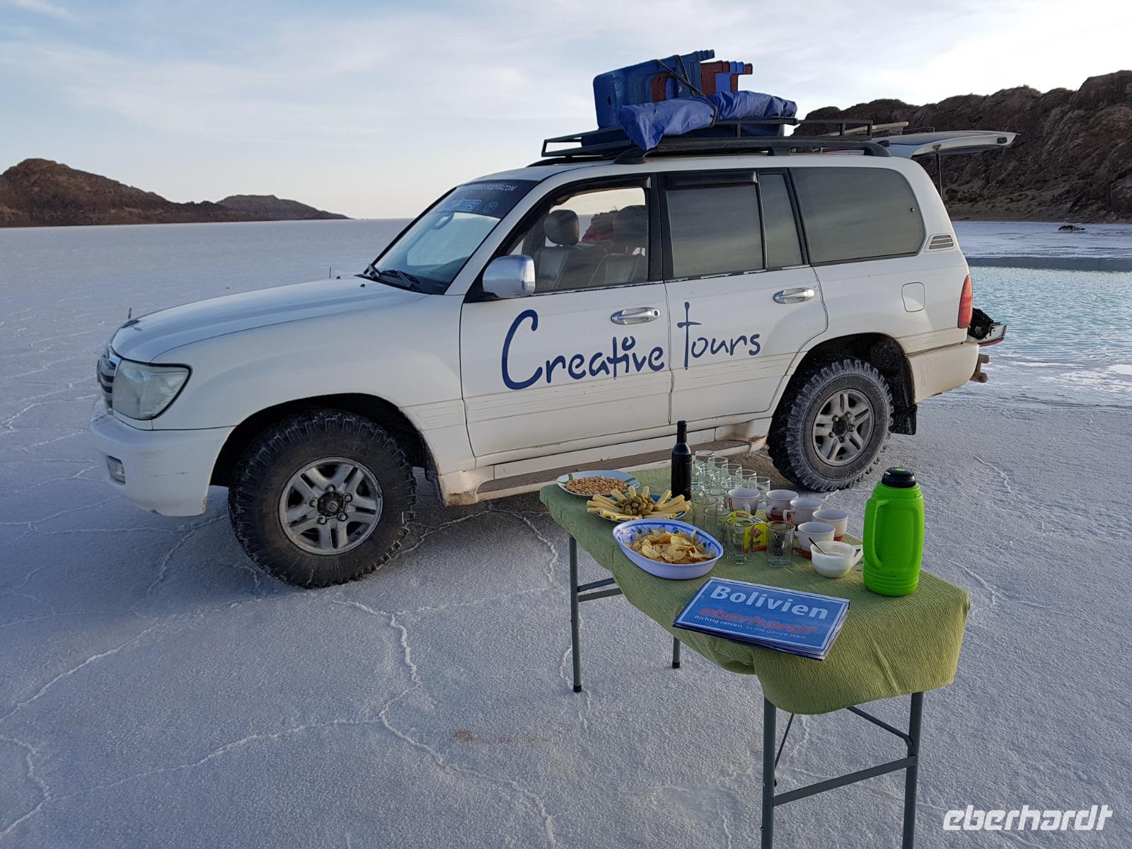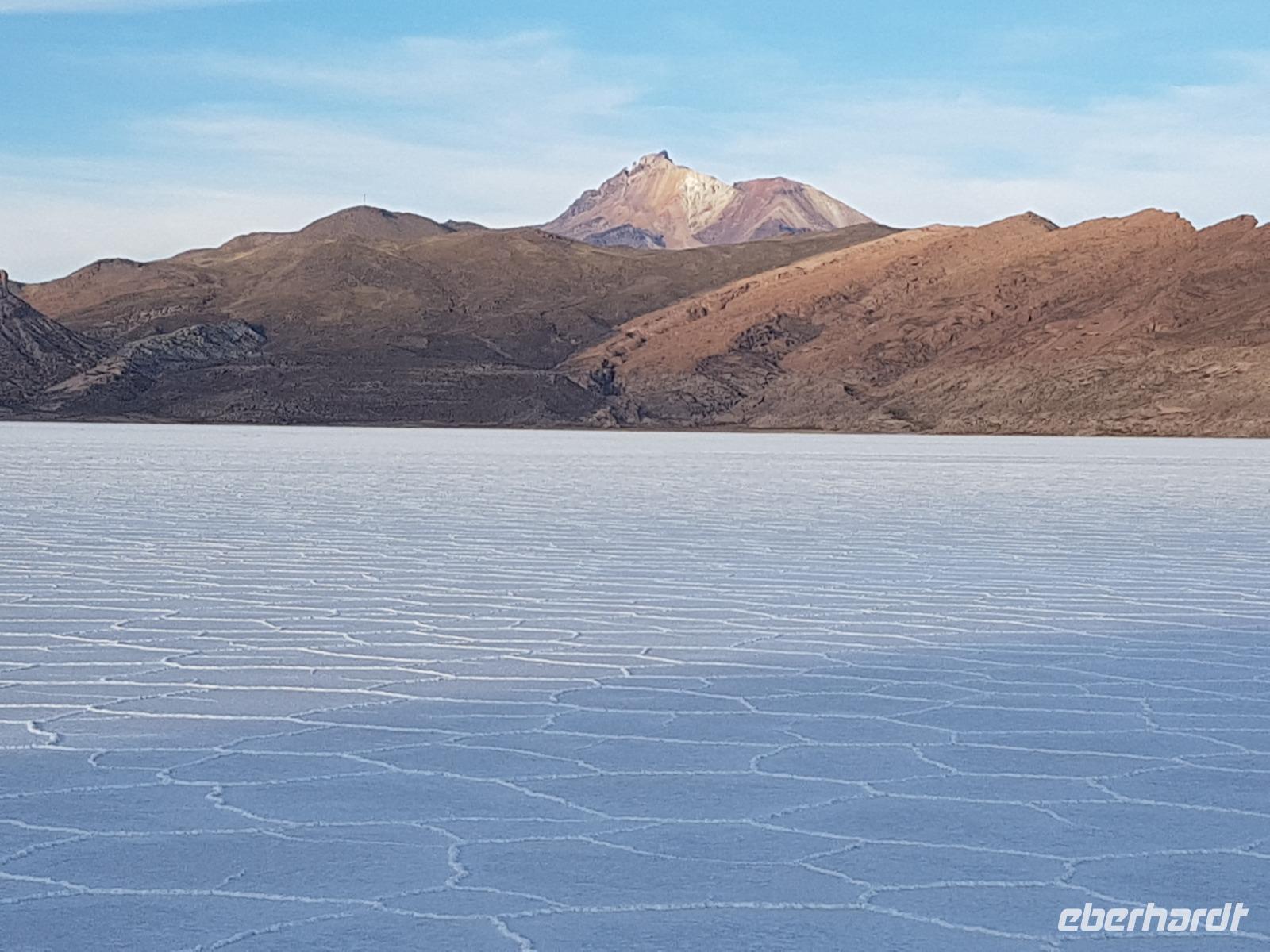 Wir haben sehr gut geschlafen und langsam akklimatisieren wir uns mit der Höhe. Heute und morgen werden wir Höhen von bis zu 5.000 Meter erreichen. Wir genießen eine unvergessliches Frühstück mit Blick auf den Salzsee. Man sieht den Salzsee tausendmal und jedes mal ist es faszinierend. Wir haben heute viel schönes vor und fahren daher schon um 8 Uhr los.