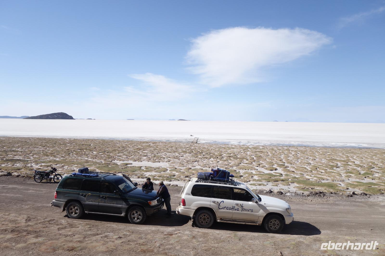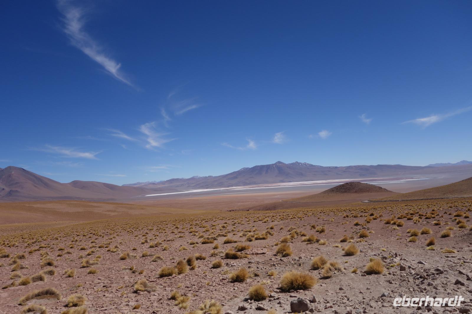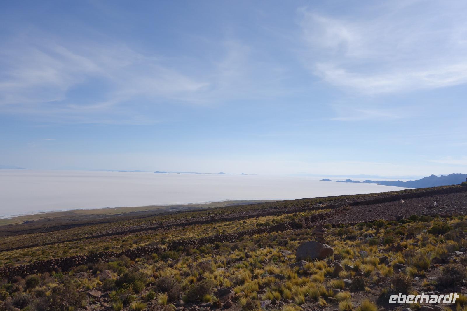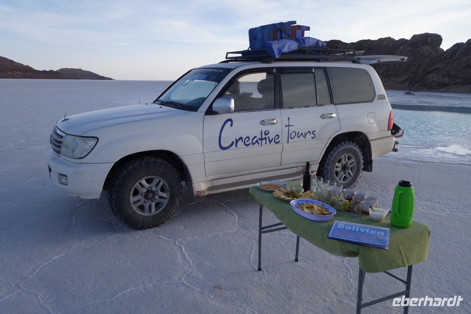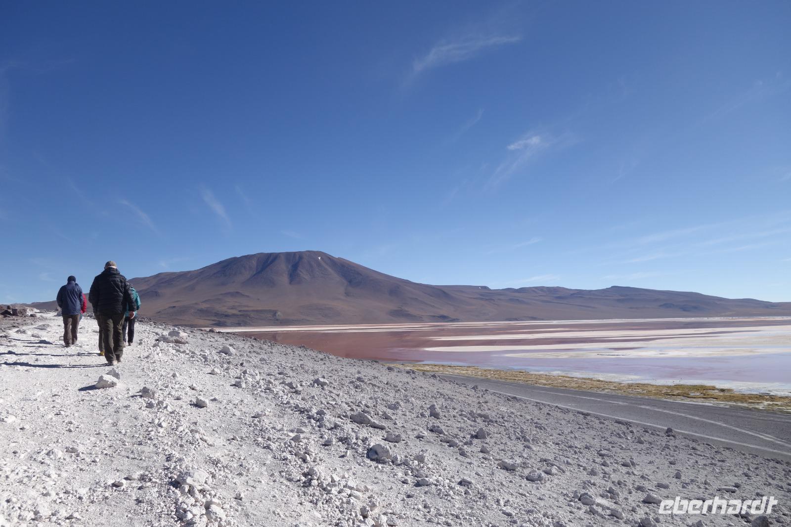 Wir haben sehr gut geschlafen und langsam akklimatisieren wir uns mit der Höhe. Heute und morgen werden wir Höhen von bis zu 5.000 Meter erreichen. Wir genießen eine unvergessliches Frühstück mit Blick auf den Salzsee. Man sieht den Salzsee tausendmal und jedes mal ist es faszinierend. Wir haben heute viel schönes vor und fahren daher schon um 8 Uhr los.