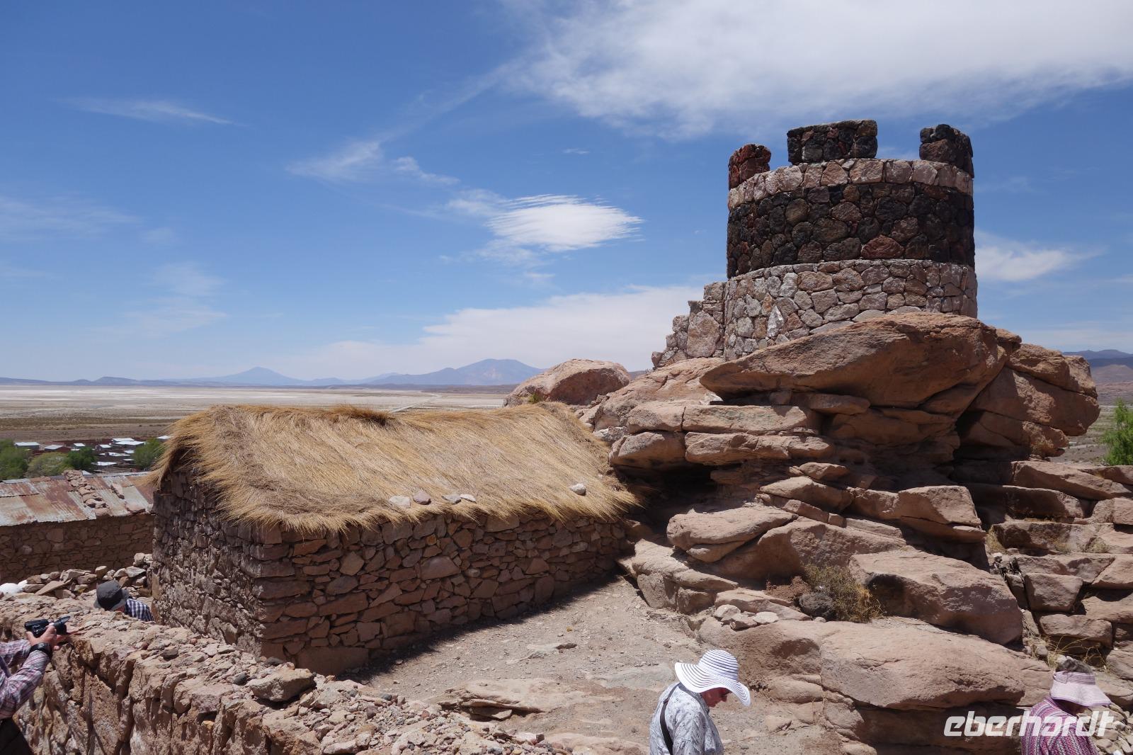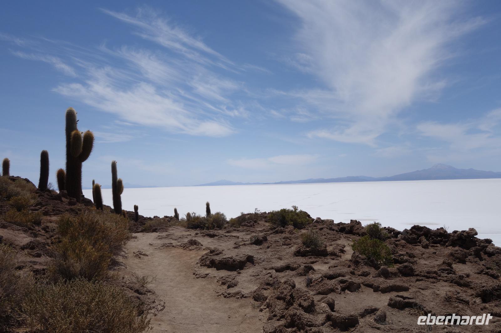 Wir fahren noch hoch bis zu Aussichspunkt am Vulkan Thunupa. Selbst der Vulkan liegt auf 5432 Metern. Von hier oben hat man den besten Blick auf den Salzsee. Hier merkt man erst, wie groß und breit der See eigentlich ist. Ein Traum hier sein zu dürfen. Wir sind alle begeistert. Nicht weit von hier gibt es eine Höhle, in der begrabene und mumifizierte Familien aus der Inka Zeit gefunden wurden.