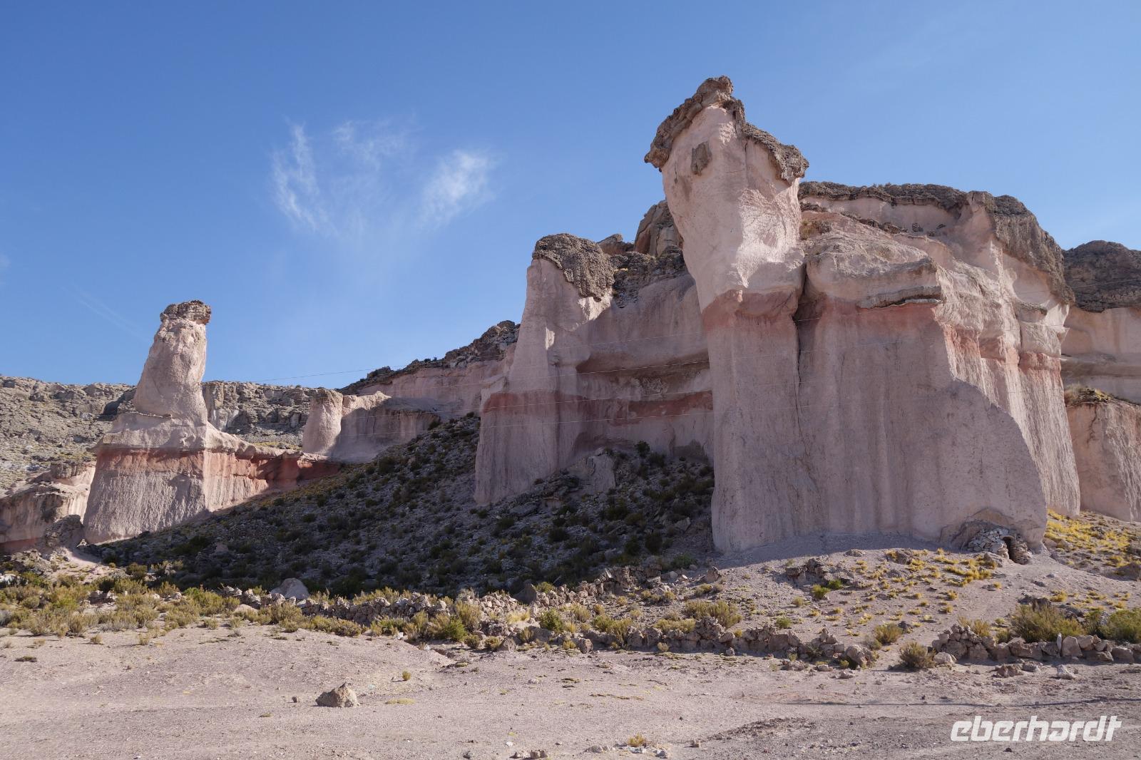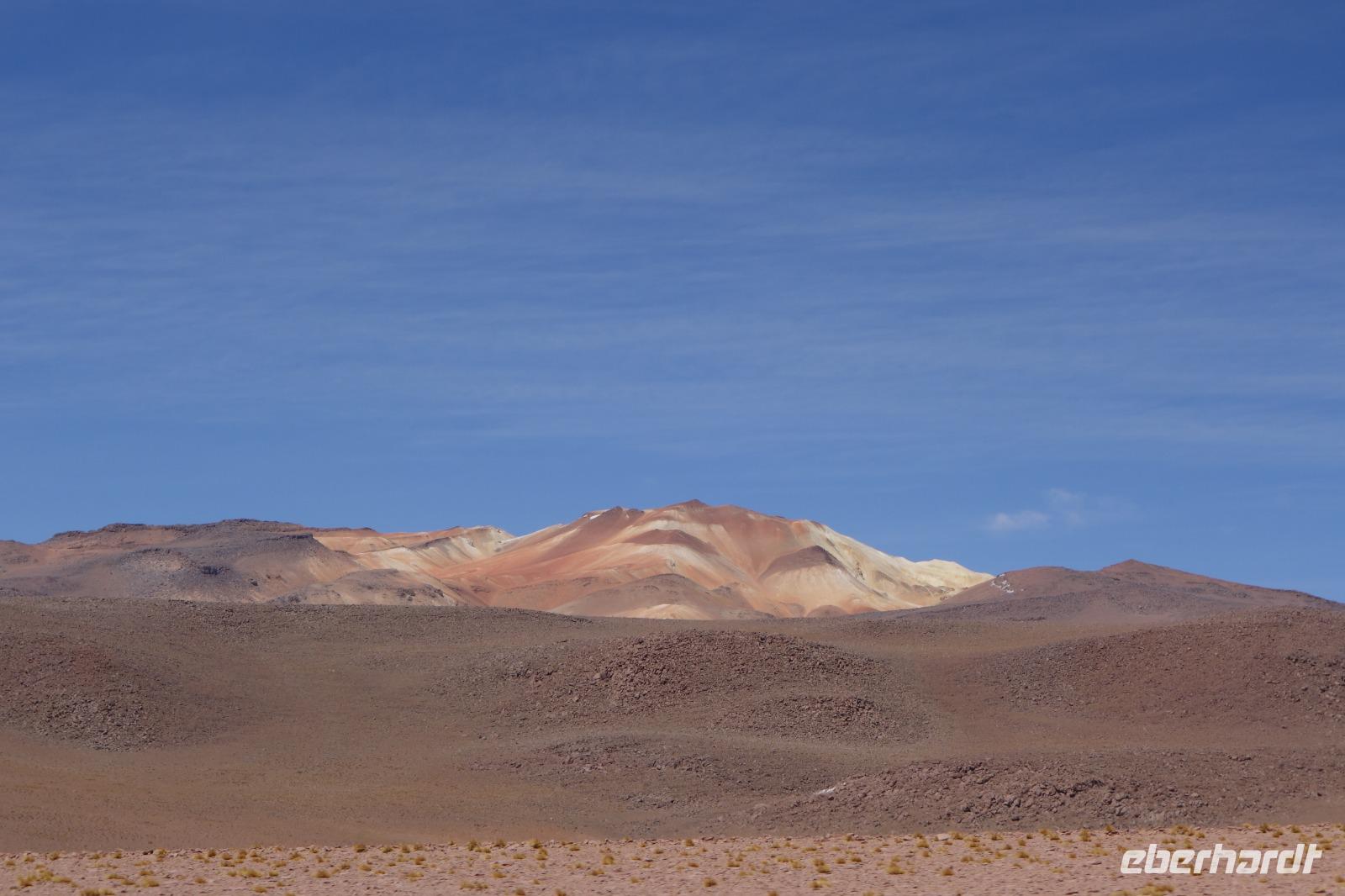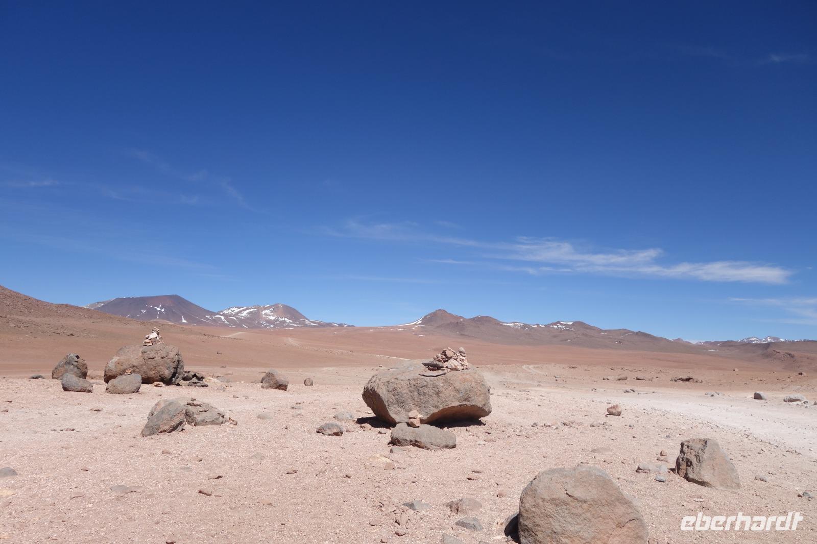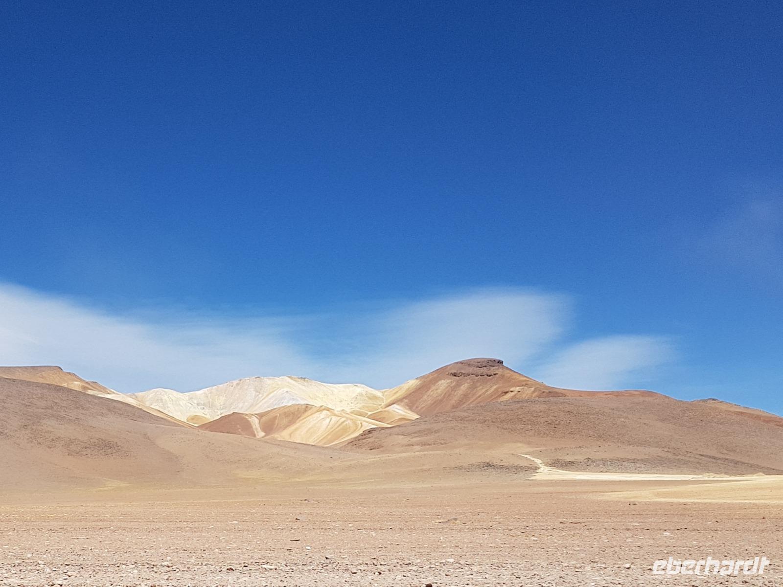 Am Nachmittag erwarten uns beim Besuch der Hochland-Lagunen Canapa, Honda und Hedionda, spektakuläre Farben, wobei ein leuchtendes blau überwiegt. Hier haben wir genug Zeit und Gelegenheit, die drei verschiedenen Flamingoarten zu sehen und zu fotografieren, die hier in der Region leben. Aber auch andere Vögel haben hier bei den Lagunen ihren Lebensraum. Es war wieder einen wunderschönen Tag. Wir sind im Land der Vulkane. Wie viele Vulkane haben wir heute gesehen? 10, 20, 30? Bei einem dieser Vulkane haben wir sogar Fumarole gesehen. Wir sind weit weg von der Zivilisation. Heute übernachten wir im Hotel del Desierto auf ca. 4.500 Meter üNN, inmitten der faszinierenden Siloli-Wüste. Nach dem Abendessen wollen einige von uns Sterne beobachten. Der Himmel ist voll mit Sternen und man kann sogar die Milchstraße sehen. Ein Traum hier zu sein. Und morgen geht es weiter. Falls jemand heute Nacht Sauerstoff brauchen würde, liegt dies bei Benjamin im Zimmer bereit. Man hat die Höhe gemerkt aber niemand hat es gebraucht. Seit Potosi haben wir uns langsam akklimatisiert.