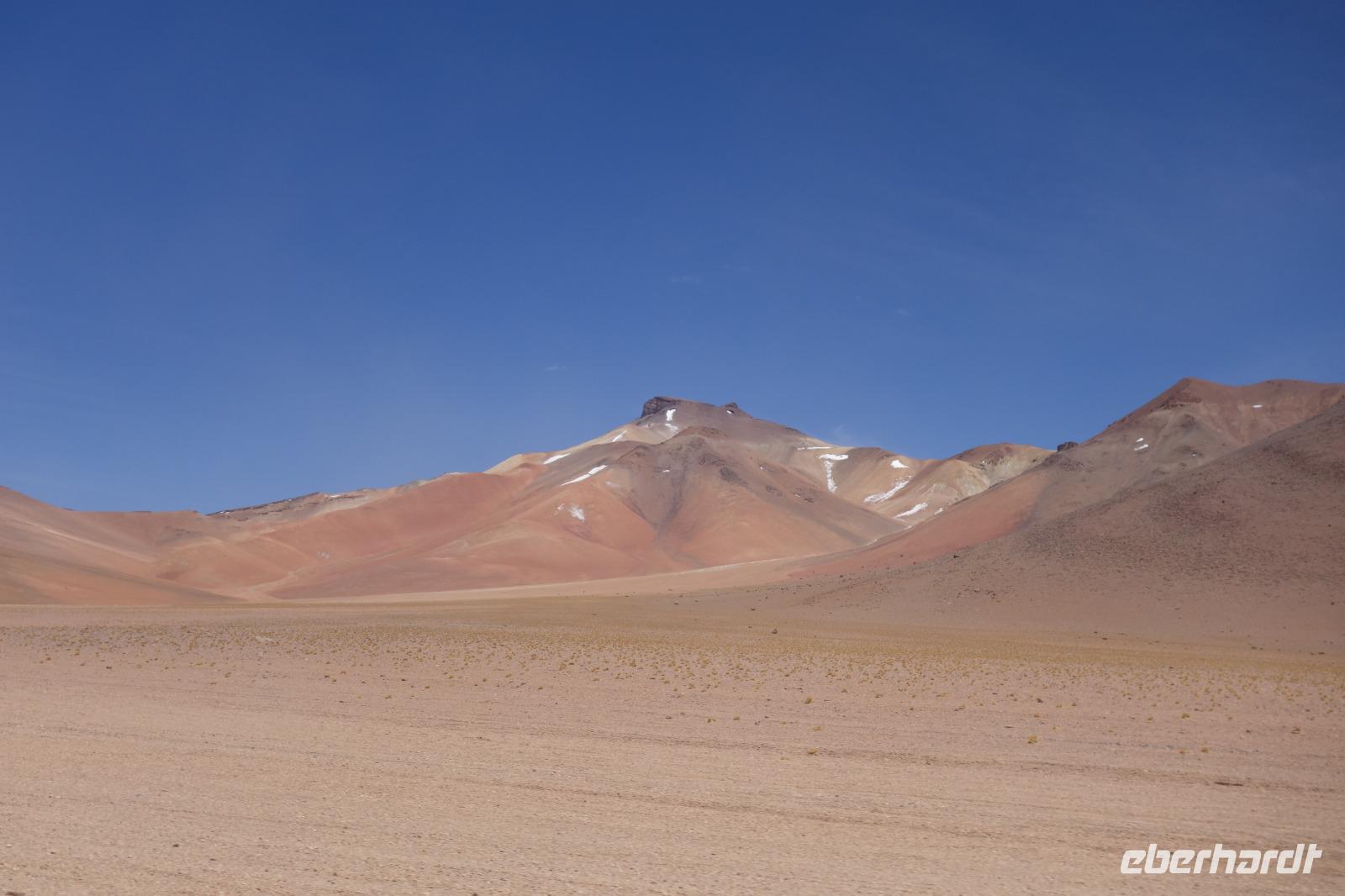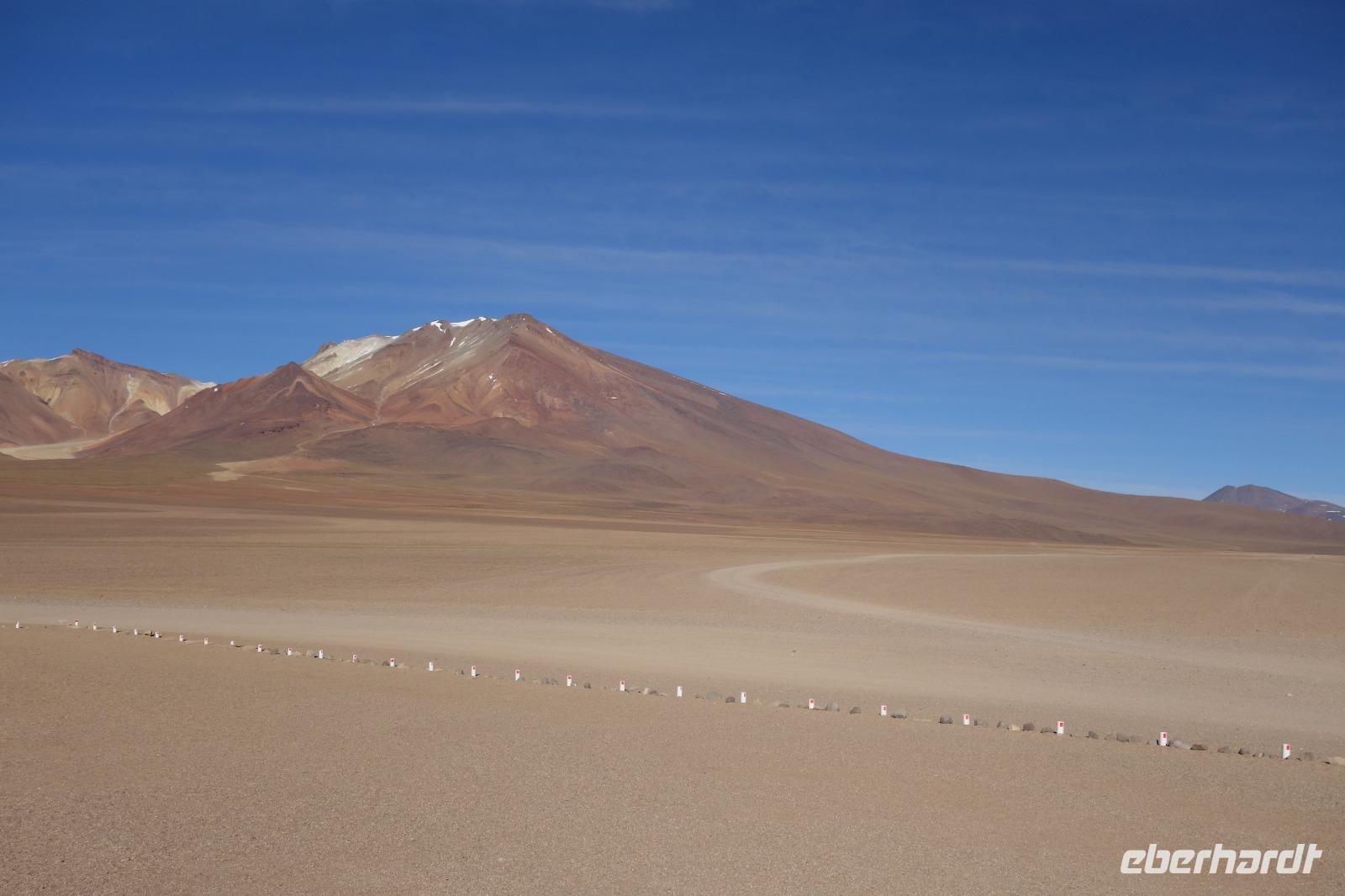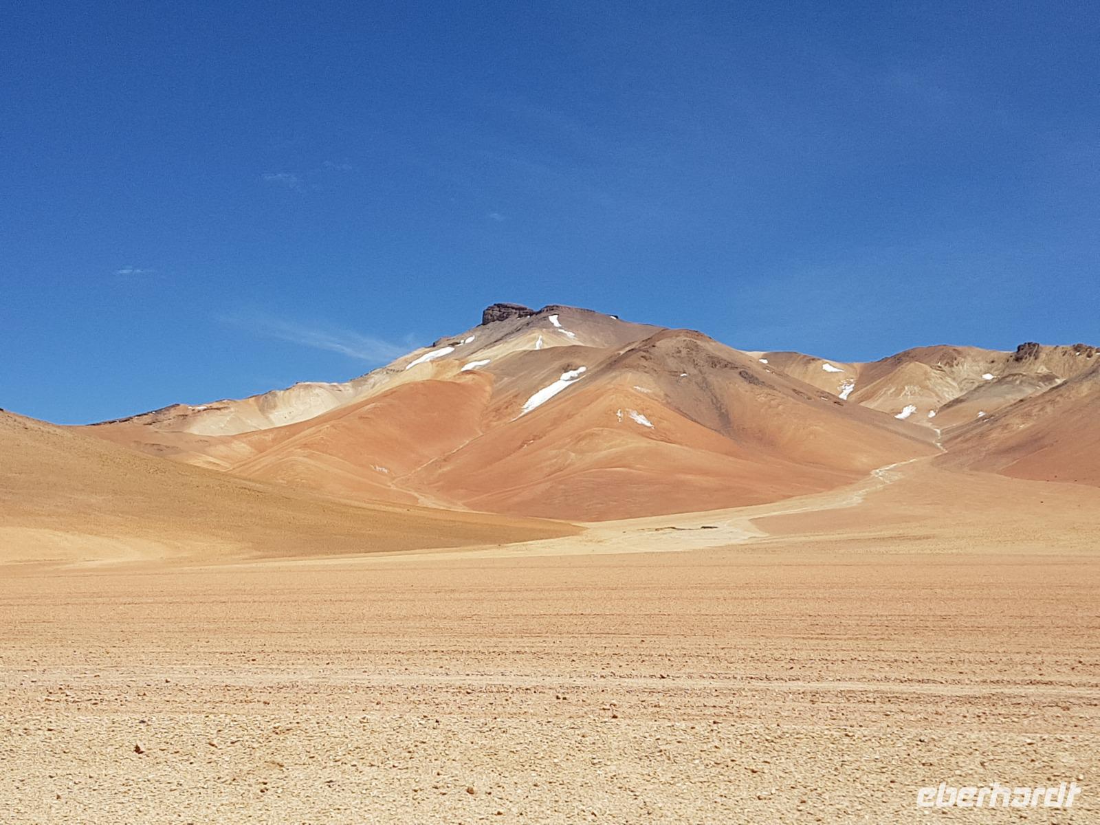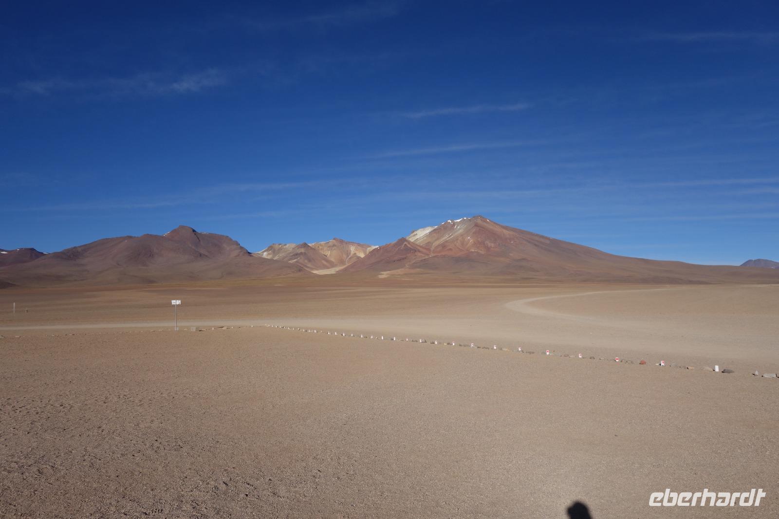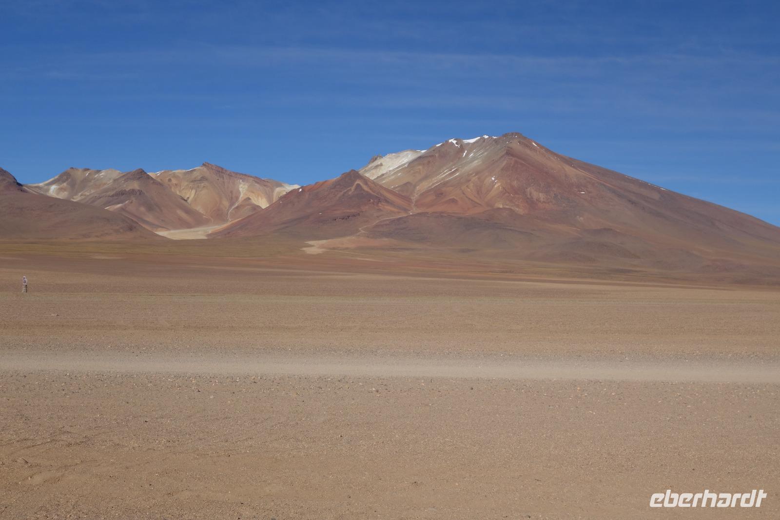 Anschließend fahren wir zur Salvador Dali Wüste. Es gibt mindestens ein Bild von Dali (die verlorene Zeit), das genau wie die Landschaft hier aussieht. Und Dali war nie hier... Echt schön. Wir sehen viele Lagunen aber die schönste wird noch kommen. Die Laguna Verde oder grüne Lagune. Wir haben Glück mit dem Wetter und die Lagune ist heute grün. Warum Glück? Man sieht nur die grüne Farbe, wenn der Wind bläst. Denn dann werden die Mineralien im Wasser aufgewirbelt und das Wasser erscheint in der grünen Farbe. Ich sehe die vielen Bilder tausend mal und jedes mal ist es schön. Diese besondere Lagune befindet sich ganz in der Nähe der chilenischen Grenze. Am Rand der grünen Lagune befindet sich der höchste Vulkan in der Region "Licancabur". Ein Vulkan, wie im Bilderbuch. Perfekt. Viele von uns haben, Gott sei Dank, viele schöne Dinge auf der Welt gesehen aber was wir in diesen Tagen sehen ist wie von einem anderen Planeten. Und das alles befindet sich im Naturschutzgebiet und National Park Eduardo Avaroa.