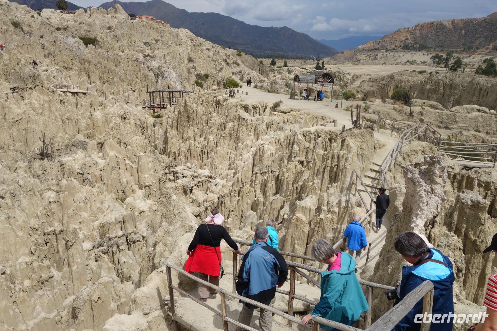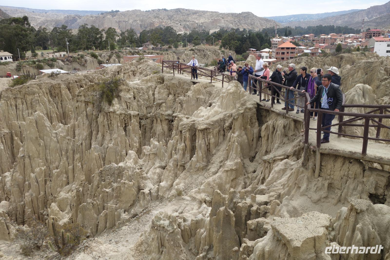 Wir unternehmen hier einen gemütlichen Spaziergang und erhalten viele Erklärungen von unserem Reiseleiter Willy, der auf spanisch spricht und Cinthya übersetzt. Danach fahren wir wieder nach La Paz zum Flughafen und treten unseren Flug nach Santa Cruz de la Sierra an. Aber vorher kommen bei vielen die Tränen, da wir uns von Cinthya sowie auch von Moises, dem Busfahrer, verabschieden müssen. Wir sagen DANKE. Cinthya hat eine tolle Arbeit gemacht. Wir haben uns zusammen mit Kathy sehr wohl hier in Bolivien gefühlt und sie haben uns mit voller Leidenschaft ihr Land und ihre Leute näher gebracht. Wir hätten nie gedacht, dass uns Bolivien so sehr gefallen würde. Bevor wir weiter nach Santa Cruz fliegen wollen wir uns ganz herzlich und in Ruhe von Cinthya und dem Busfahrer Moises bedanken. Die Tränen schossen von allein in die Augen, da es echt eine tolle Reise war. Wir sind sehr dankbar für die tollen Menschen und Erlebnisse hier in Bolivien. Dieses tolle Land werden wir alle nie vergessen. Cinthia und Kathy waren jeder Zeit bereit, unsere Fragen zu beantworten und haben immer aus voller Leidenschaft und Liebe über ihr Land und die Leute hier in Bolivien erzählt. Jallalla Bolivien!