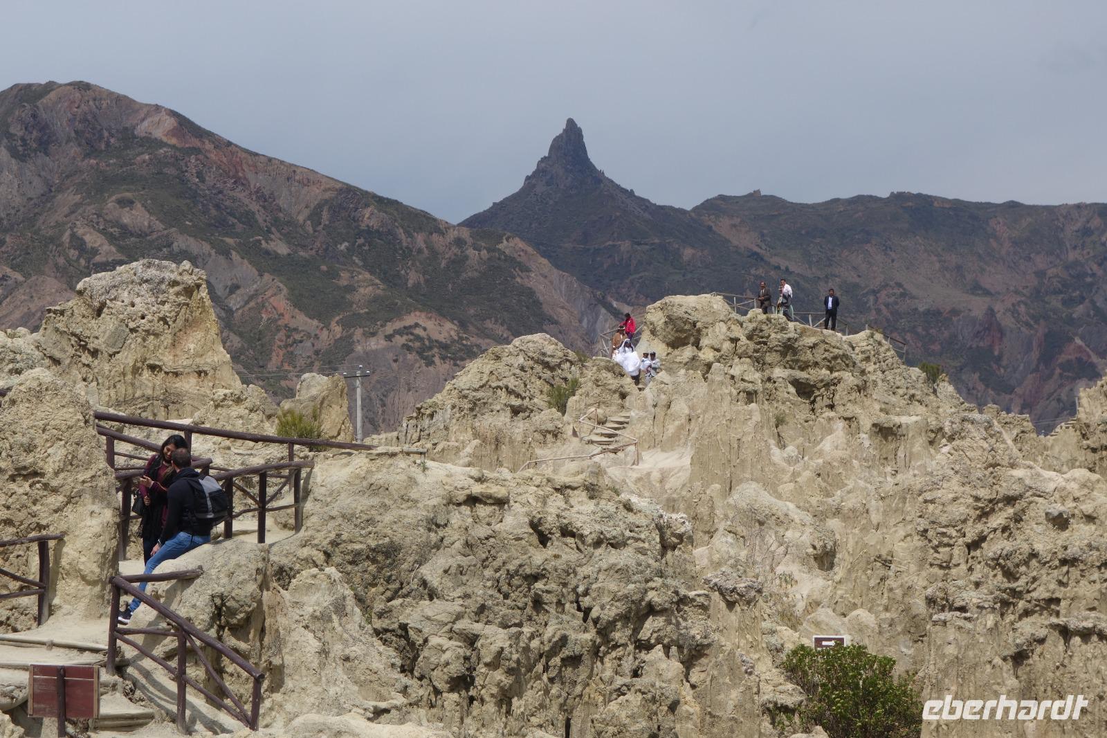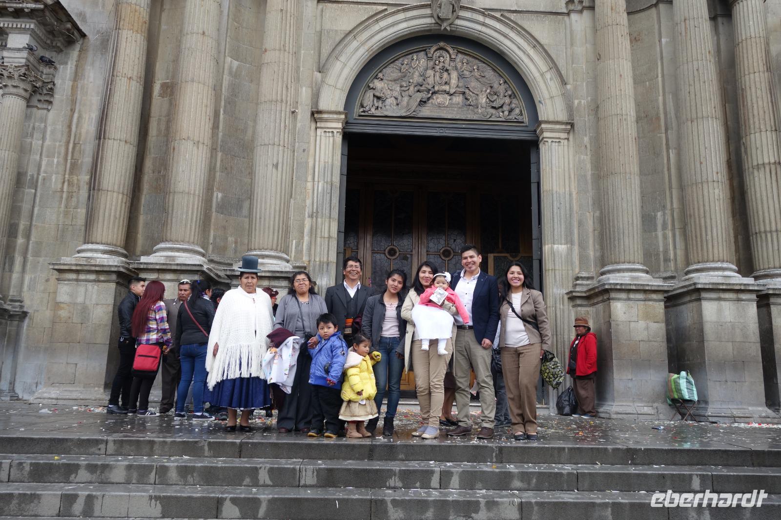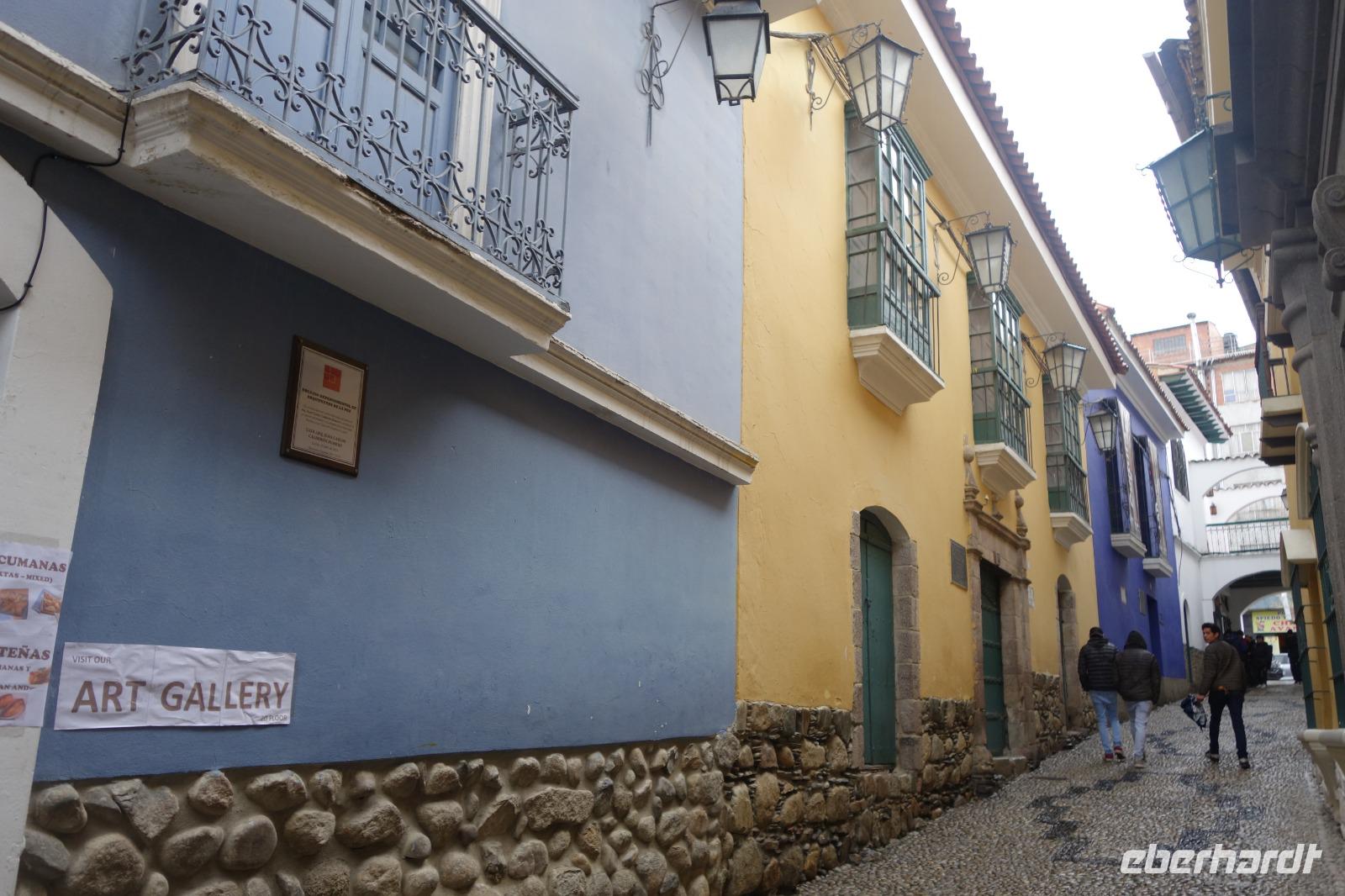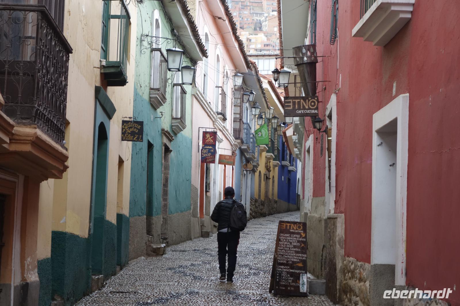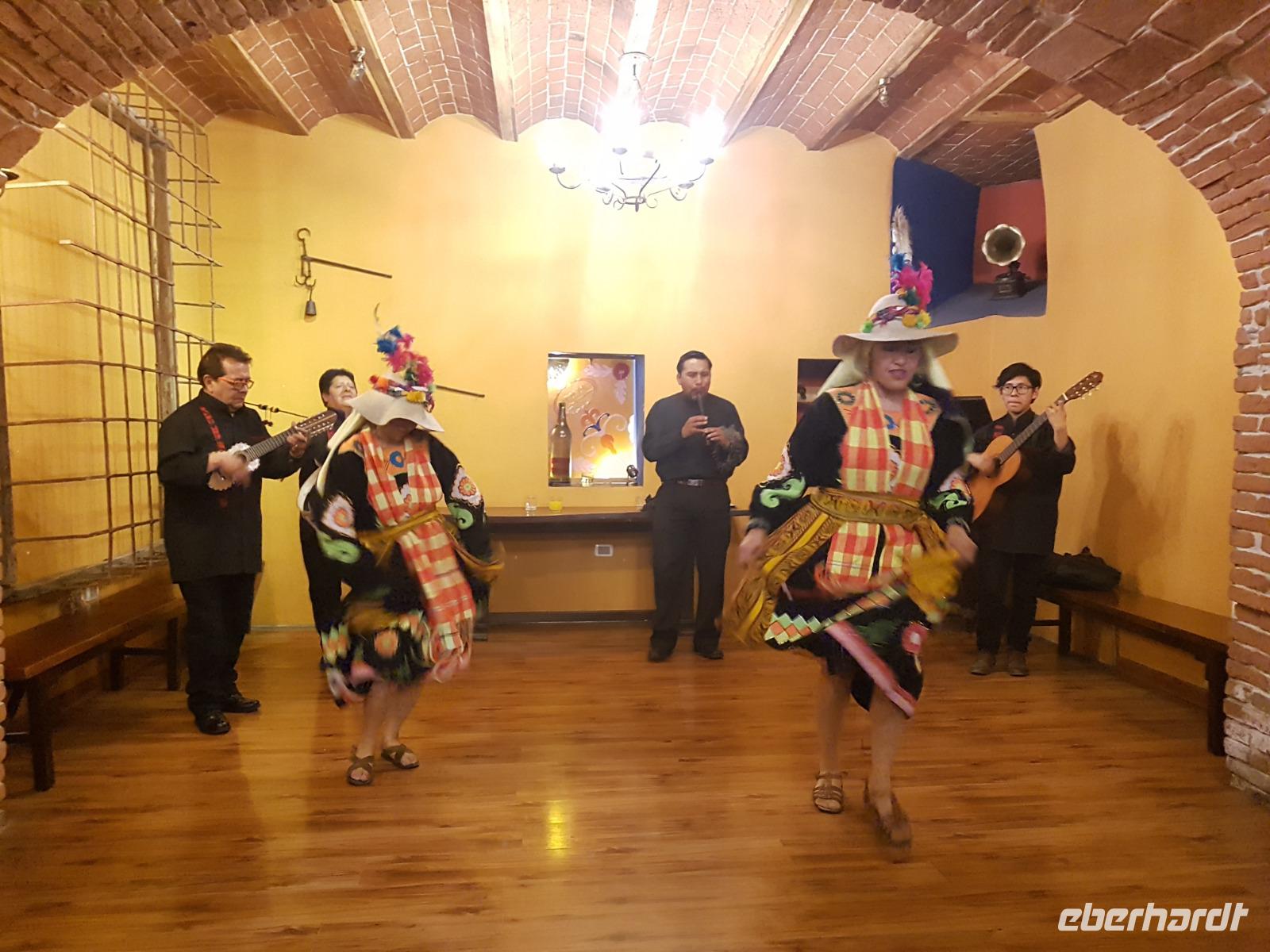 Danach ging es kurz in unserer Hotel "Boutique Hotel Casa de Piedra". Dann hatten alle etwas Zeit sich frisch zu machen und sich auszuruhen, bevor die Stadtführung mit Cinthia begann. Erstes Highlight unseres Stadtrundganges ist die Calle Jaen. Hier treffen wir auf wunderschöne Häuser und Gebäude im andalusischen Stil, die damals von den Spaniern erbaut wurden. Dann fahren wir weiter und kommen zum Hauptplatz "Murillo", wo sich die Kathedrale, das Parlament und der Regierungspalast befindet. Heute sind in der Stadt viele Hochzeiten und wir sehen, wie hübsch die Bräute hier gekleidet sind. Unsere Führung endet am Hexenmarkt, wo wir verschiedene einheimische Heilmittel näher kennenlernen. Zu Fuß geht es nun zurück ins Hotel. Um 19 Uhr treffen wir uns dann zum gemeinsamen Abendessen. Im Hotel gibt es nach dem Essen eine Folklore Show mit Musik und Tänzen aus ganz Bolivien. Einige von uns schwingen sogar das Tanzbein zu den wundervollen Klängen. Es war wieder ein schöner Tag in einer verrückten Stadt, in der fast 1 Million Menschen leben. Aber zum Glück kann man La Paz mit Seilbahn sehr schnell und gut überqueren.