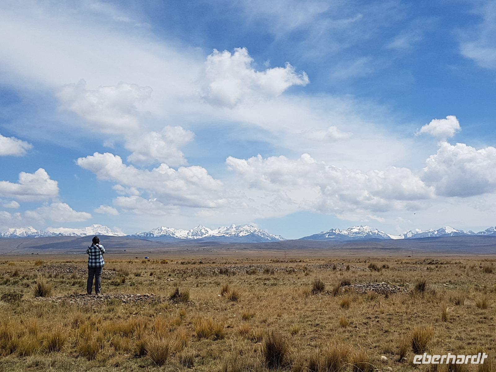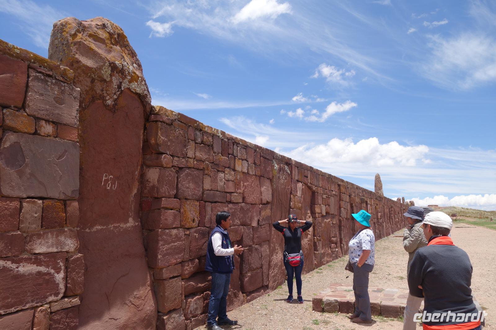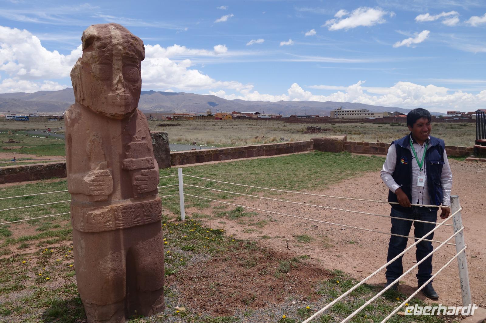 Das Frühstück heute war wieder herrlich mit traumhaftem Blick auf dem Titicaca-See. Wir fahren heute mehr als 3 Stunden, bis wir die Archäologische Stätte "Tiwanaku" erreichen. Auf der Fahrt legen wir wieder mehrere tolle Foto-Stopps am Titicaca-See ein. Zum Beispiel an der Gebirgskette Cordillera Real de los Andes, die zum Teil schneebedeckte Gipfel hat und auf 6000 Metern Höhe liegt. Um Machu Picchu und die Inka Kultur zu verstehen, muss man erstmal das geheimnisvolle Flair der archäologischen Stätten von Tiwanaku entdecken. Wir besuchen mit einem örtlichen Reiseleiter und Cinthya die bekannteste präinkaische Stätte Boliviens. Vermutlich wurde diese Kulturstätte vom gleichnamigen Volk erbaut, welches vor den Inkas ca. 100 bis 1000 n. Chr. hier am Titicaca-See lebte. Wir besuchen damit heute die dritte der sieben UNESCO-Welterbestätten Boliviens! Uns hat diese Reise sehr gut gefallen: das "besondere" Bolivien - authentisch und wenig touristisch - haben wir entdeckt.