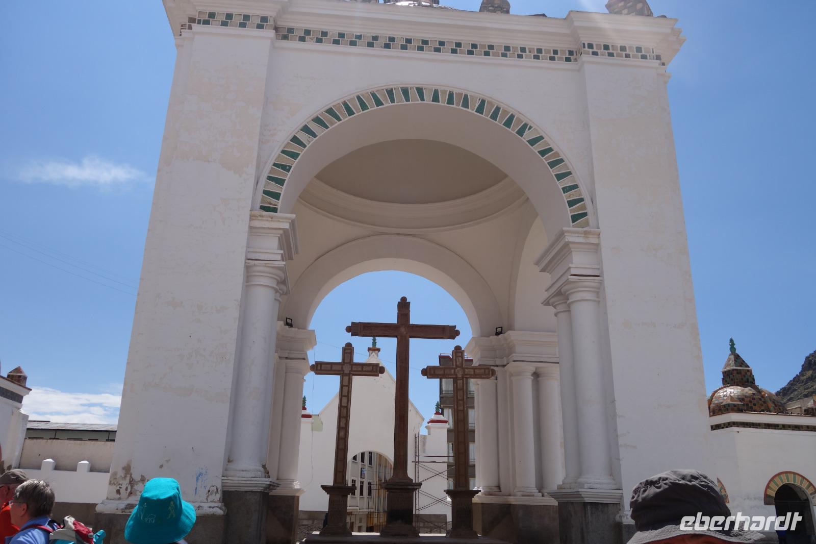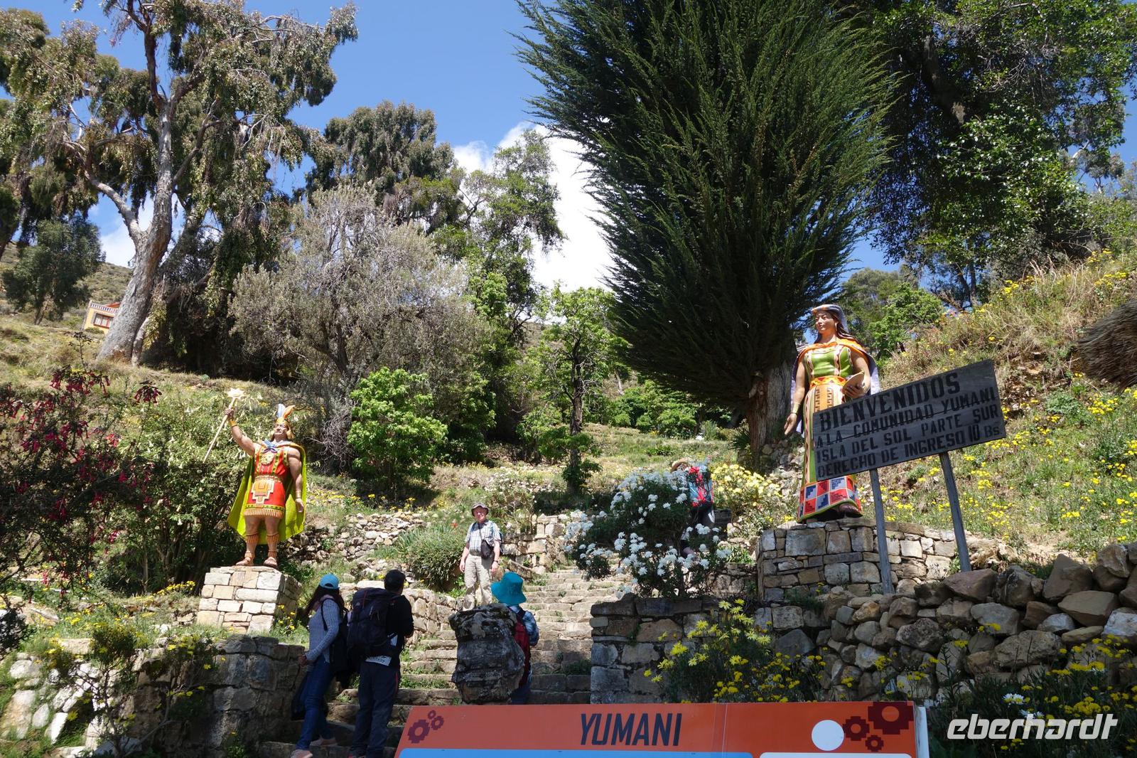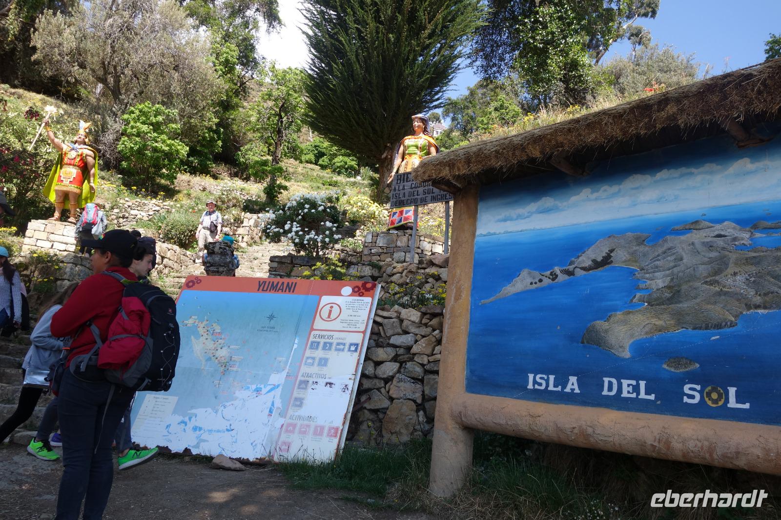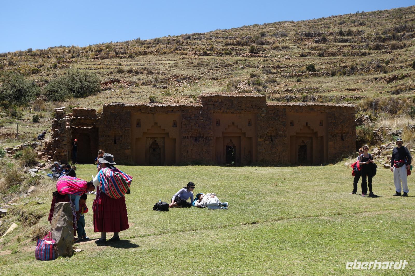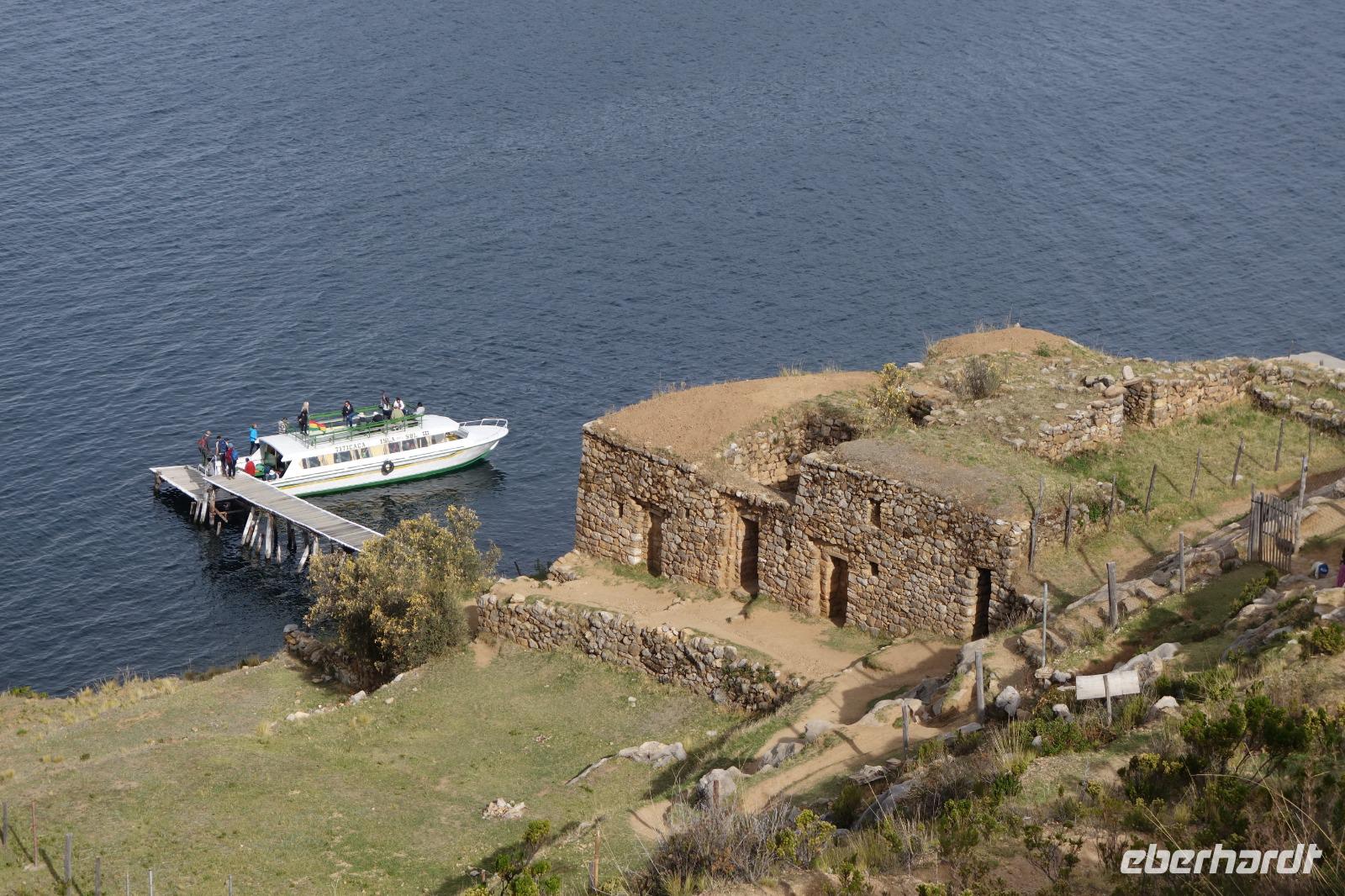 La Paz ist verkehrsmäßig betrachtet eine verrückte Stadt. So entscheiden wir uns La Paz wieder zu verlassen und fahren mit der roten und blauen Seilbahnlinie über "El Alto", wo uns Moises mit den Koffern empfängt. Heute ist Sonntag und Markt in "El Alto". Man kann es nicht in Worte fassen, wie beeindruckend der Blick von Seilbahn hier oben ist. Die riesige Stadt La Paz ist komplett eingekesselt. Die ebenfalls riesige Stadt El Alto ist heute voller Leute, denn auf den Straßen ist Markt. Ein einmaliges Erlebnis, das alles von der Seilbahn aus zu sehen. Wir reisen heute weiter zum nahegelegenen Titicaca-See. Auf der Fahrt machen wir ein Foto-Stopp, um die Cordillera Real Bergkette der bolivianischen Anden zu fotografieren. Wir sehen schneebedeckte Berggipfel, die über 6000 Meter hoch sind. Danach machen wir eine Pause am Rand des Titicaca Sees, wo uns gezeigt wird, wo und wie die berühmten Schilfboote erfunden wurden. Sehr interessant zu sehen, wie die kleinen Schiffe gebaut wurden und schließlich die Ozeane überquert haben. Wir fahren direkt zum Hafen des kleinen Ortes am Rande des Sees, Copacabana. Moises bringt in der Zwischenzeit unsere Koffer ins Hotel, indem wir die übernächste Nacht verbringen werden. Denn heute fahren wir noch über den Titicaca-See zur berühmten Sonneninsel "Isla de Sol". Daher können wir die Bootsfahrt bequem mit nur einer kleinen Tasche oder einem Rucksack für eine Übernachtung antreten. Unser lokaler Bootsführer Willi steuert die Isla de Sol (Sonneninsel) an, die legendäre Wiege des Inka-Imperiums. Zum Mittagessen geht es an einen tollen Ort mit Terrasse und traumhaften Blick auf die Mond Insel. Danach führt uns ein angenehmer Pfad an die Anlegestelle Pilco Kayma (Sonnentempel), vorbei am gleichnamigen Inka-Tempel und hinauf auf den Inselkamm. Wir laufen ganz gemütlich und mit kleinen Pausen schaffen wir den Weg innerhalb einer guten Stunde. Hier oben übernachten wir heute in der wunderschönen Eco Lodge Palla-Khasa mit tollen Ausblicken auf den See. Die besondere Lage unser Lodge macht eine Übernachtung auf der Insel zu einem Highlight unserer Bolivienreise. Wir treffen uns zum Sonnenuntergang um 18.30 Uhr und stellen wissenschaftlich gesehen fest: Die Sonne in Europa und auf der Nordhalbkugel geht von links nach rechts. Aber hier auf der Südhalbkugel geht die Sonne von rechts nach links. Mensch, sind wir klug heute. Der Sonnenuntergang hier oben war so was von traumhaft, mit tollem Blick auf den See und im Hintergrund die Berge Perus. Bevor wir ins Bett gehen, gibt es noch ein tolles Abendessen am Kamin. Danach können wir draußen den wunderschönen Sternenhimmel beobachten. Es ist einfach herrlich hier zu sein. Ein Besuch des Titicaca-Sees mit einer komfortablen Übernachtung auf der Sonneninsel lässt uns die Einmaligkeit und Mystik dieses Ortes spüren. Unvergesslich.