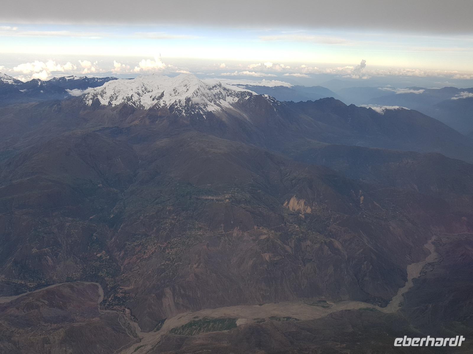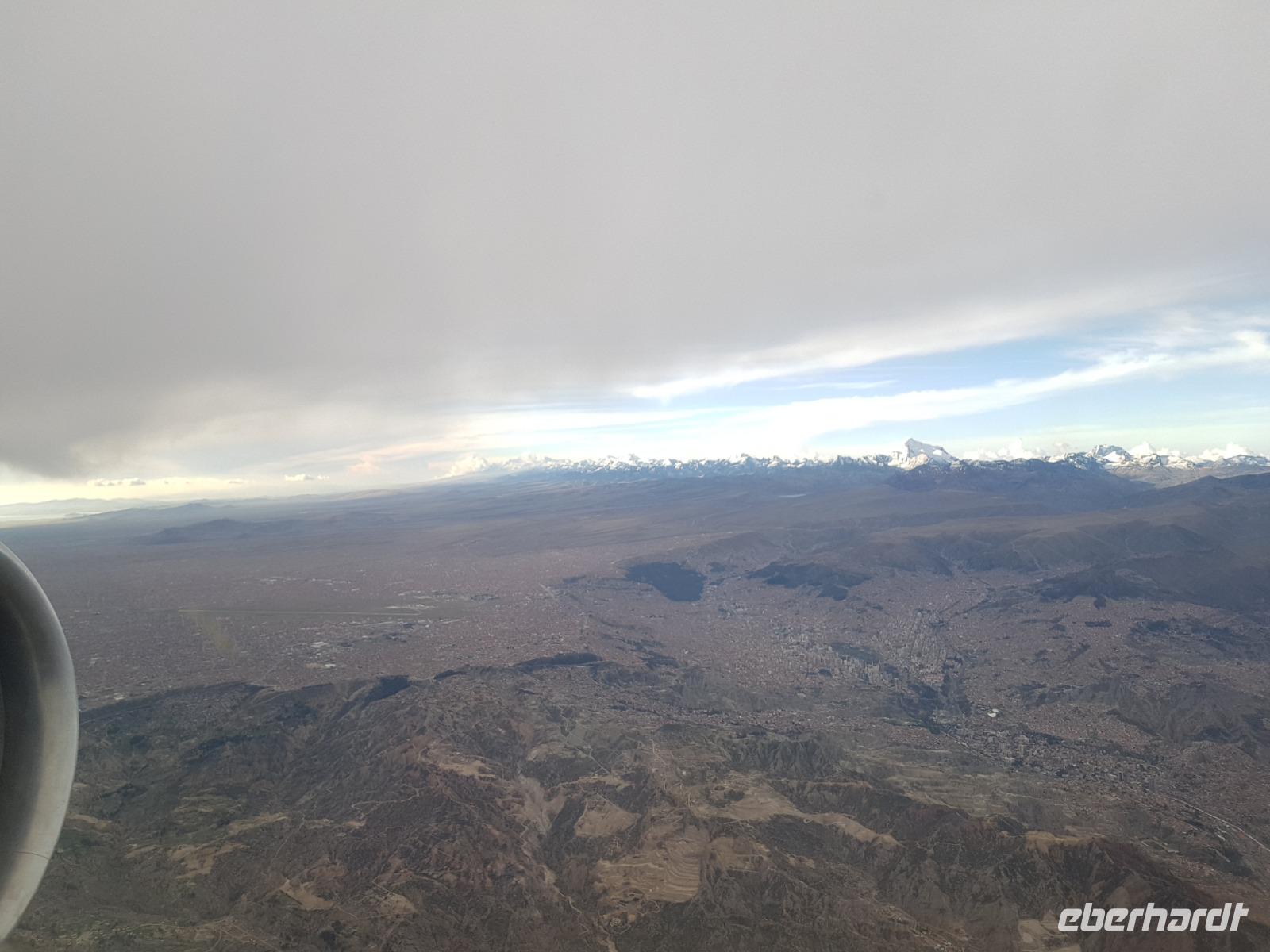 Am Flughafen haben wir Glück und wir können fast 2 Stunden eher nach Santa Cruz fliegen, sodass wir zum Abendessen auch eher in Santa Cruz sind. Das ist toll, da heute Eberhardt Travel eine tolle Überraschung für die Gäste hat. Während des Fluges staunen wir von der Luft aus über die faszinierende Lage der Stadt La Paz und den schneebedeckten Illimani im Hintergrund. In Santa Cruz gibt es ein leckeres Abendessen mit Rind, Schwein oder Hähnchen, einer Beilage und einem guten Rotwein dazu. Besser kann eine Reise nicht zu Ende gehen.