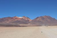 Nach einem reichhaltigen Frühstück werden wir heute von drei Jeeps von unserem Hotel in Uyuni abgeholt. Nachdem alle Koffer verstaut sind, fahren wir zunächst in das kleine Dorf Colchani, wo uns unser Reiseleiter einiges zur Gewinnung sowie Verarbeitung des Salzes hier erzählt. Im Anschluss bestand die Möglichkeit, verschiedenes Salz, welches hier abgebaut wurde, käuflich zu erwerben. Doch es gab nicht nur Salz - zahlreiche Shops lockten mit schönen Alpaca-Produkten sowie anderen inmteressanten Souvenirs, welches der eine oder andere noch erstand. Anschließend fuhren wir richtig hinaus auf den Salzsee. Was für eine atemberaubende Umgebung! Ringsum alles weiß, man könnte es glatt für Schnee halten! Zuerst hielten wir an den Ojos de Salar, den Augen des Salars. Hier stieg schwefelhaltiges Wasser blubbernd an die Oberfläche - ein schönes Fotomotiv. Auch die wunderschöne Umgebung mit zahlreichen Bergen und Vulkanen fotografierten wir gern. Das aus den Augen blubbernde Wasser probierte der eine oder andere vorsichtig und musste feststellen, dass dies salziger als Meerwasser war. Bevor wir weiterfuhren, erhielt jeder von den Fahrern noch ein kleines Präsent: eine Stofftasche, gefüllt mit einigen süßen Leckereien sowie einer Karte. Unser nächster Stop erfolgte an den kleinen Salzhäufchen, welche wir sorgsam aufgeschichtet vorfanden. Früher erfolgte dies per Hand, heute jedoch bereits maschinell. Wenig später erreichten wir das erste Salzhotel, welches heute als kleines Museum fungiert. In dessen Umgebung fotografierten wir uns zunächst an dem großen Dakar-Denkmal, welches an die durch den Salzsee verlaufenden Dakar-Rallys erinnert. Weiterhin gab es zahlreiche Flaggen zu bestaunen. Eine deutsche war auch bereits vorhanden, allerdings nicht mehr in bester Qualität. Das nächste Mal werden wir wohl eine neue mitbringen müssen. Nach diesen vielen Fotostops lag nun eine etwas längere Fahrt vor uns, in welcher wir die Landschaft einfach genießen konnten.