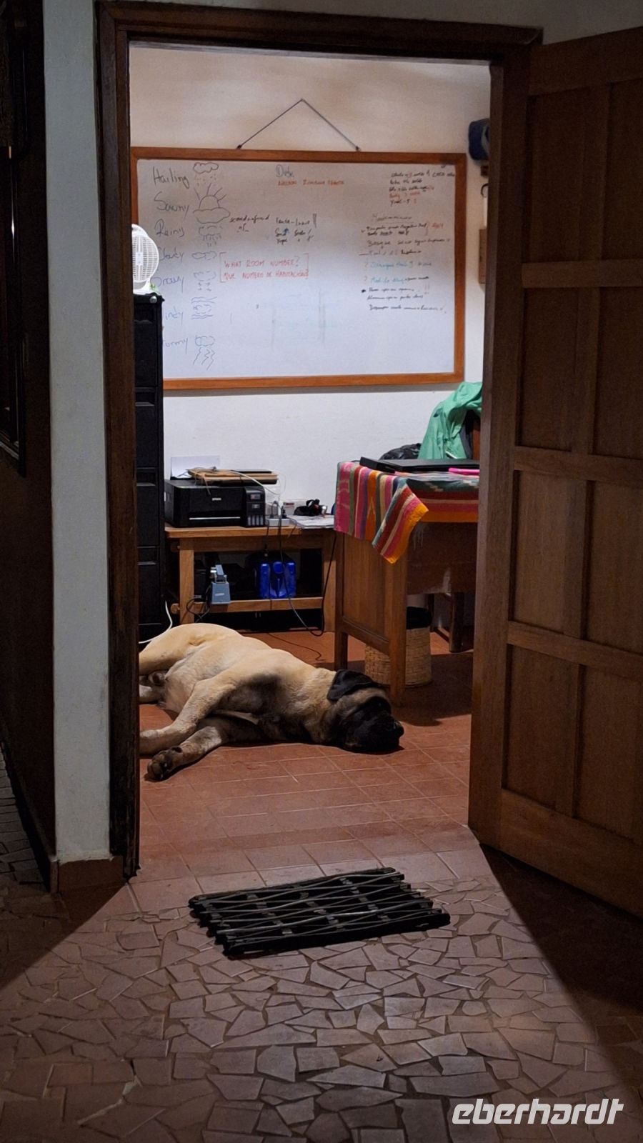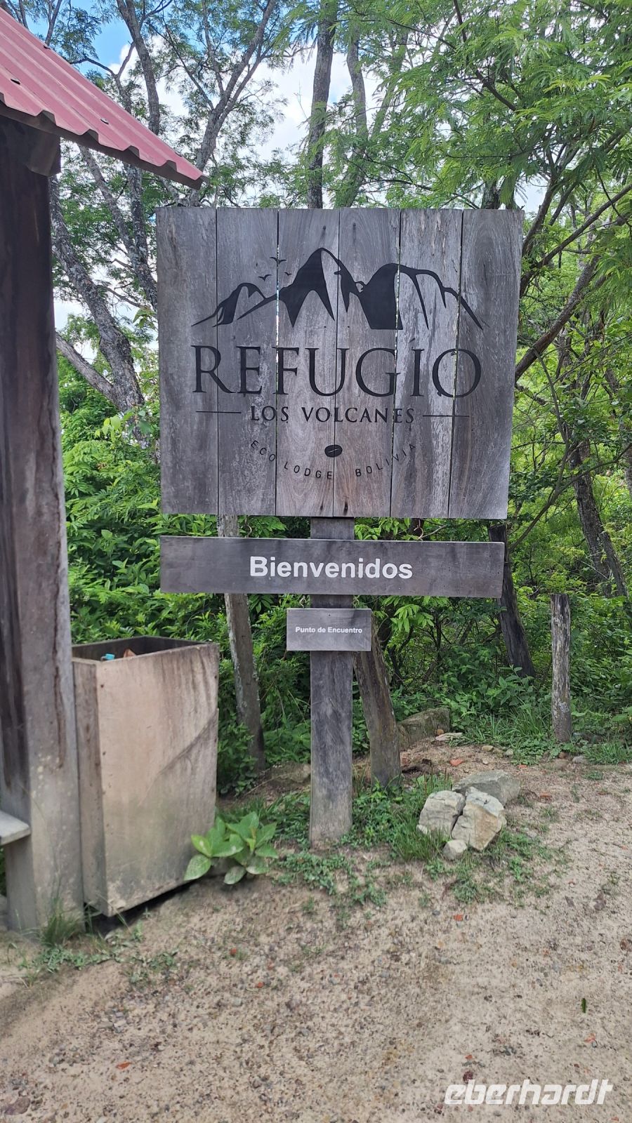 Am nächsten Morgen erwartet uns ein leckeres, hausgemachtes Frühstück mit selbstgebackenem deutschem Brot. Im Anschluss machen wir uns dann auf den Weg in Richtung Amboro Nationalpark. Etwa eine Stunde fahren wir mit unserem Bus, dann müssen wir umsteigen: zu unserem Refugio mitten im Naturschutzgebiet führt nur eine enge und steinige Piste, daher müssen wir auf Geländewagen umsteigen. Wer möchte, kann auch ganz abenteuerlich auf der Ladefläche Platz nehmen. Dann geht es los und wir rütteln bergauf. Nach etwa einer halben Stunde erreichen wir den Eingang zu unserem Refugio und gleichzeitig einen herrlichen Aussichtspunkt, von welchem wir die typischen Felsformationen bestaunen können. Dann geht es noch einmal gute zwanzig Minuten bergab und dann sind wir da, mitten im Paradies. Auf einer großen Lichtung zwischen Wald und Bergen befindet sich das Refugio de los Volcanes. Die Pferde laufen hier frei herum und grasen und wir werden freundlich begrüßt von den Mitarbeitern und "Wach"-Hund Max, einem gigantischen aber absolut lieben English Mastiff.