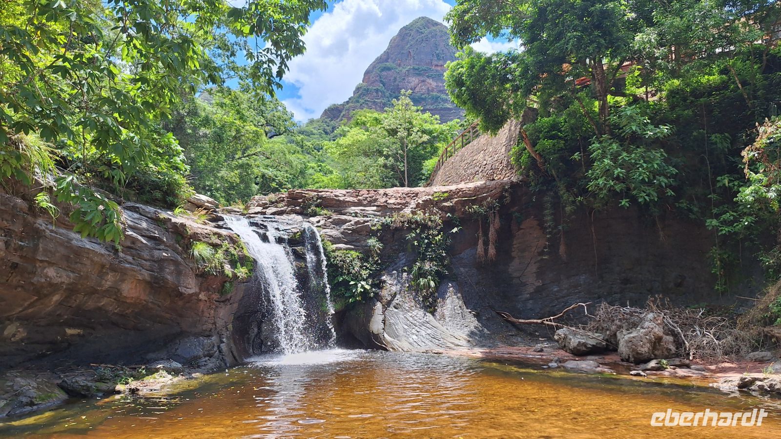 Wir können uns erst mal ein wenig ausruhen, dann lernen wir Rocky kennen, unseren Wanderguide für die nächsten beiden Tage. Wir unternehmen schon vor dem Mittagessen einen ersten gemeinsamen Spaziergang zu den nahegelegenen Wasserfällen direkt unterhalb der Terrasse. Wer möchte, kann hier später sogar baden gehen.