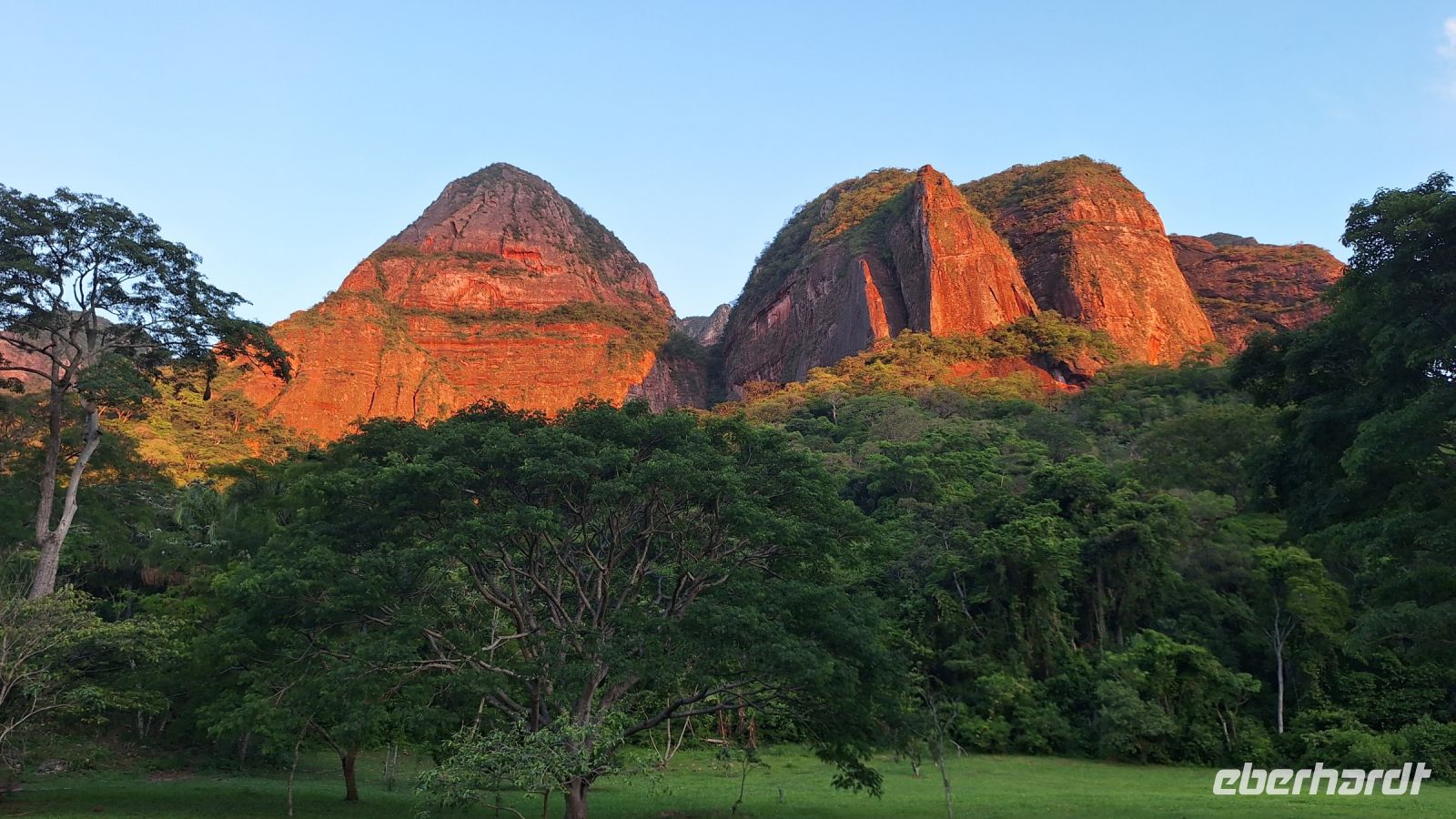 Schließlich erreichen wir die bergige Landschaft des Amboro Nationalparks und legen mit dem Bus einige Höhenmeter zurück. Unser Ziel ist zunächst einmal die Kleinstadt Samaipata. Dort angekommen beziehen wir unsere Zimmer im liebevoll gestalteten "Landhaus", welches vor fast 40 Jahren von deutschen Aussiedlern gegründet wurde. Herzlich werden wir von deren Sohn Pedro begrüßt.