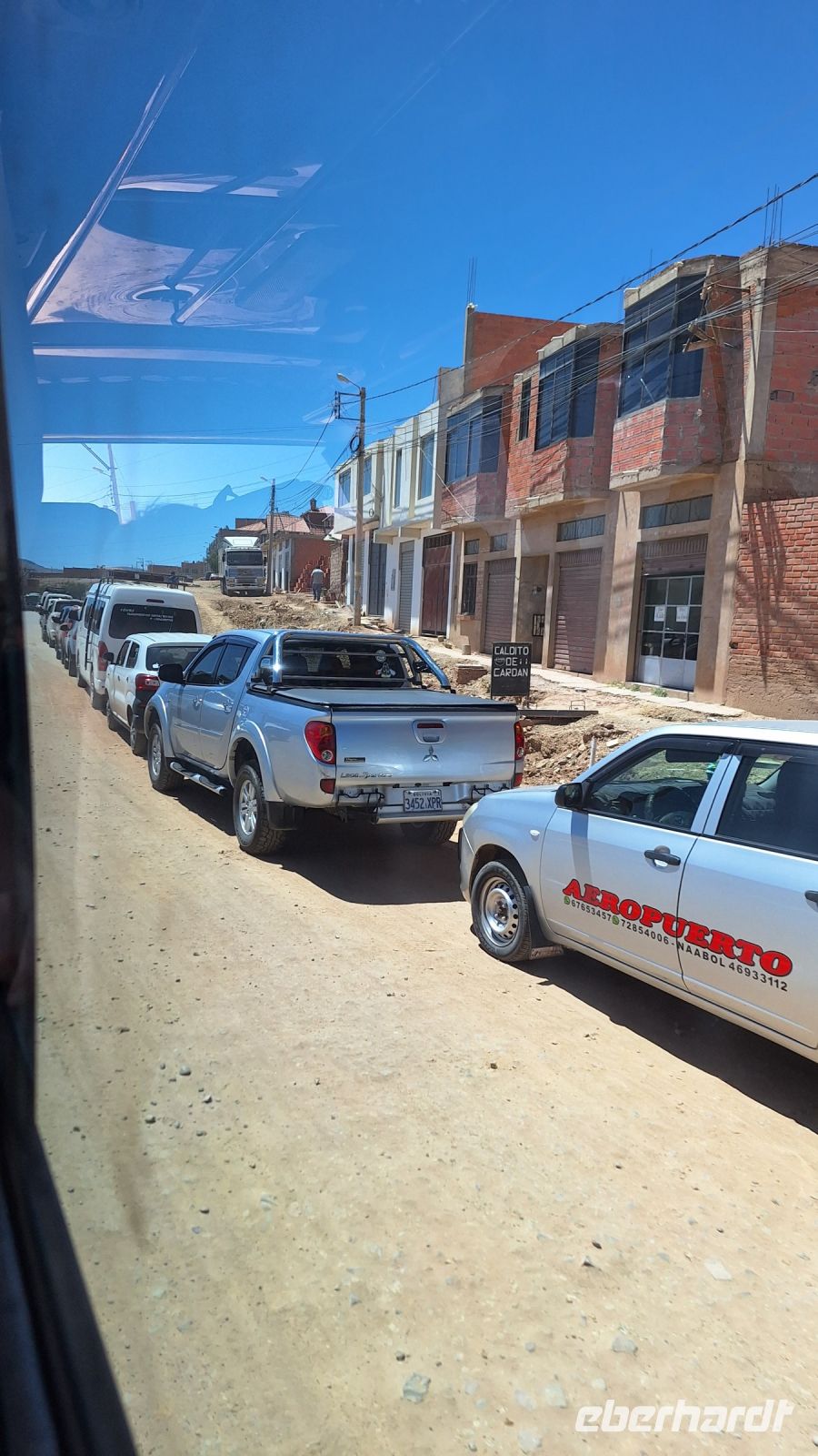 Da Bolivien sich mittlerweile schon seit einem Jahrzehnt in einem politischen Ausnahmezustand und einer großen Wirtschaftskrise befindet, spitzt sich die Situation aktuell wieder einmal zu und man muss mit Protesten und Straßensperren rechnen. Gefährlich ist das für uns zwar nicht, aber es kann eben unser Vorankommen auf der Straße beeinflussen. Um dies zu vermeiden verlassen wir Santa Cruz früh am nächsten Morgen. Auf unserer Fahrt ändern sich die Eindrücke ständig. Kleine Dörfer ziehen an uns vorbei und wir bekommen einen Einblick in das Leben außerhalb der Großstadt. Was sich auch relativ schnell einprägt: Kilometerlange Autoschlangen an geschlossenen Tankstellen. Die Wirtschaftskrise und der Mangel an Devisen zieht auch einen Mangel an Treibstoff nach sich und so kann es passieren, dass man tagelang warten muss, um sein Auto betanken zu können. Unvorstellbar für uns, in Bolivien seit Monaten Lebensrealität. Kein Wunder, dass die Menschen unzufrieden sind.