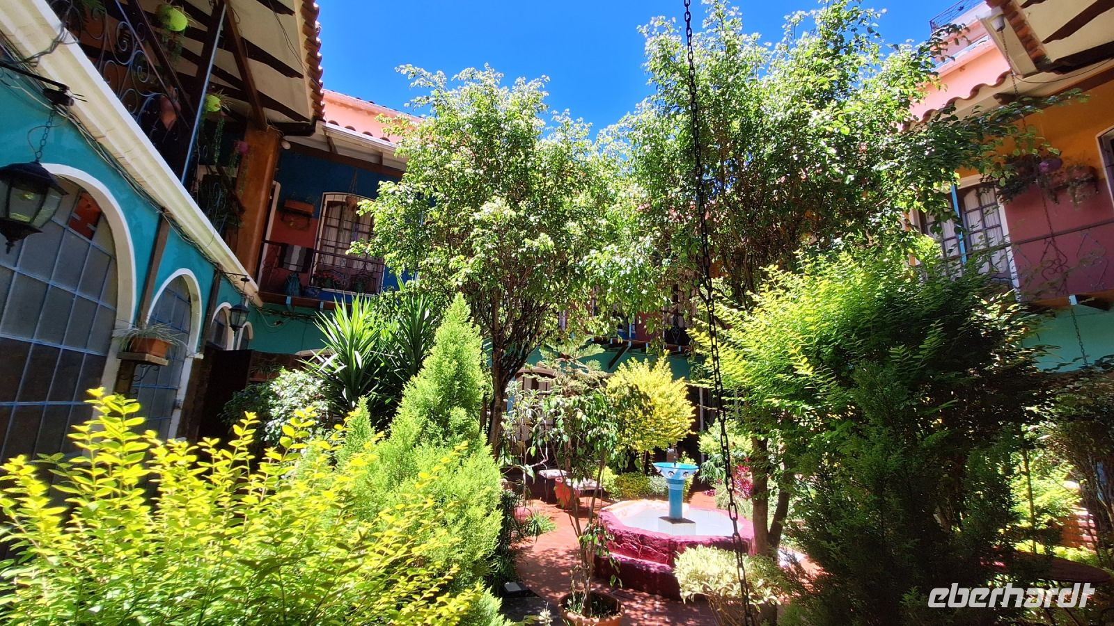 Unser Busfahrer lenkt sein Gefährt gekonnt durch den chaotischen Verkehr in den engen Straßen der alten Kolonialstadt. Ein paar mal halten wir förmlich die Luft an, wenn zwischen dem Bus und der nächsten Hauswand nur noch wenige Millimeter Platz sind, doch am Ende erreichen wir doch unser Ziel. Die letzten Meter müssen wir zu Fuß absolvieren, denn die Straße, in der sich unser Hostal Colonial findet ist dann doch zu eng. Schnell checken wir ein und machen uns auf zum Mittagessen, denn wir haben Nachmittags noch einen Termin.