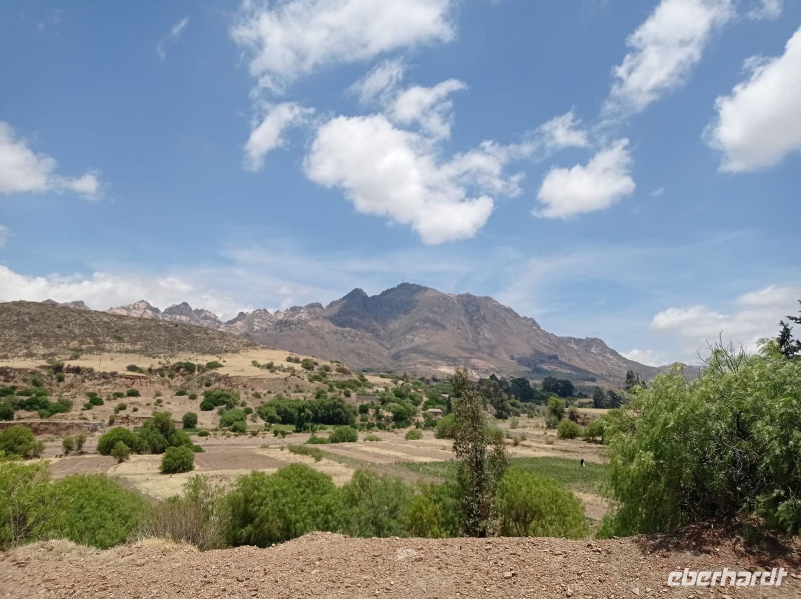 Nachdem wir La Paz und El Alto hinter uns gelassen haben wird es ruhig auf der Straße. Wir durchfahren landwirtschaftliches Gebiet, in dem vor allem Gemüse, Getreide und Quinoa angebaut werden, aber auch Milchprodukte hergestellt.