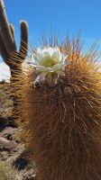 Am Mittag treffen wir uns alle wieder im Hostal und bereiten uns auf die Weiterreise nach Uyuni vor. Einige Zeit später verlassen wir die umtriebige Stadt und begeben uns zurück in die Einsamkeit des Altiplano. Die Fahrt heute ist besonders schön, wir genießen die Landschaft, die sich vor unseren Fenstern langsam verändert. Schon nach kurzer Zeit sehen wir die ersten Lamas und versuchen, die schönen Tiere vor unsere Kameralinsen zu bekommen. Auch das Wetter verändert sich mehrmals während unserer Reise und zaubert so noch einmal ganz verschiedene Eindrücke der Natur. Im Kaktus-Tal legen wir einen längeren Stopp ein, um die besondere Vegetation zu bestaunen, denn wir sind zur nur sehr kurzen Phase der Kakteenblüte unterwegs. Später haben wir die Möglichkeit noch einen Teil der Strecke entlang der Straße zu Fuß zu gehen, um die verschiedenen landwirtschaftlichen Flächen zwischen den kleinen Dörfern ein wenig genauer anzusehen.