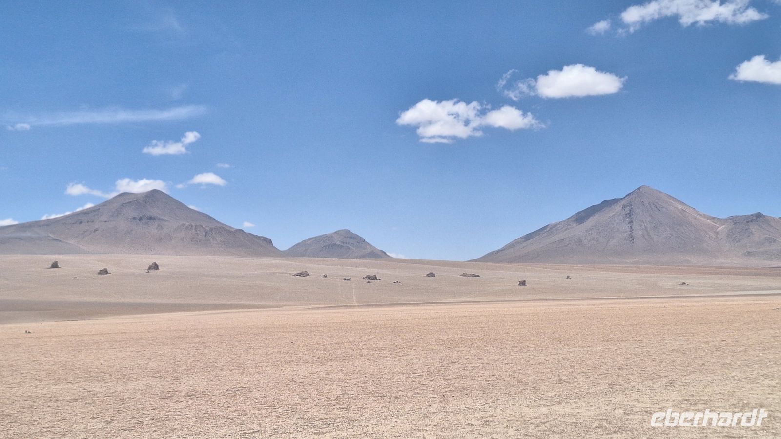 Der zweite Tag unseres Abenteuers im Hochland beginnt trotz Gewitter in der Nacht wieder mit Sonnenschein. Nach dem Frühstück mit Blick auf den Salzsee beladen wir unsere Fahrzeuge und machen uns auf den Weg. Wir überqueren den Salar heute von Norden nach Süden und begeben uns dann auf den Weg in die Sioli Wüste. Unterwegs finden wir noch eine Stelle, an der dicke Salzblöcke für den Bau von Häusern abgetragen werden und begutachten Neugierig die "Baustelle". Man kann förmlich zusehen, wie das Wasser verdunstet und neues Salz kristallisiert. Wirklich faszinierend.