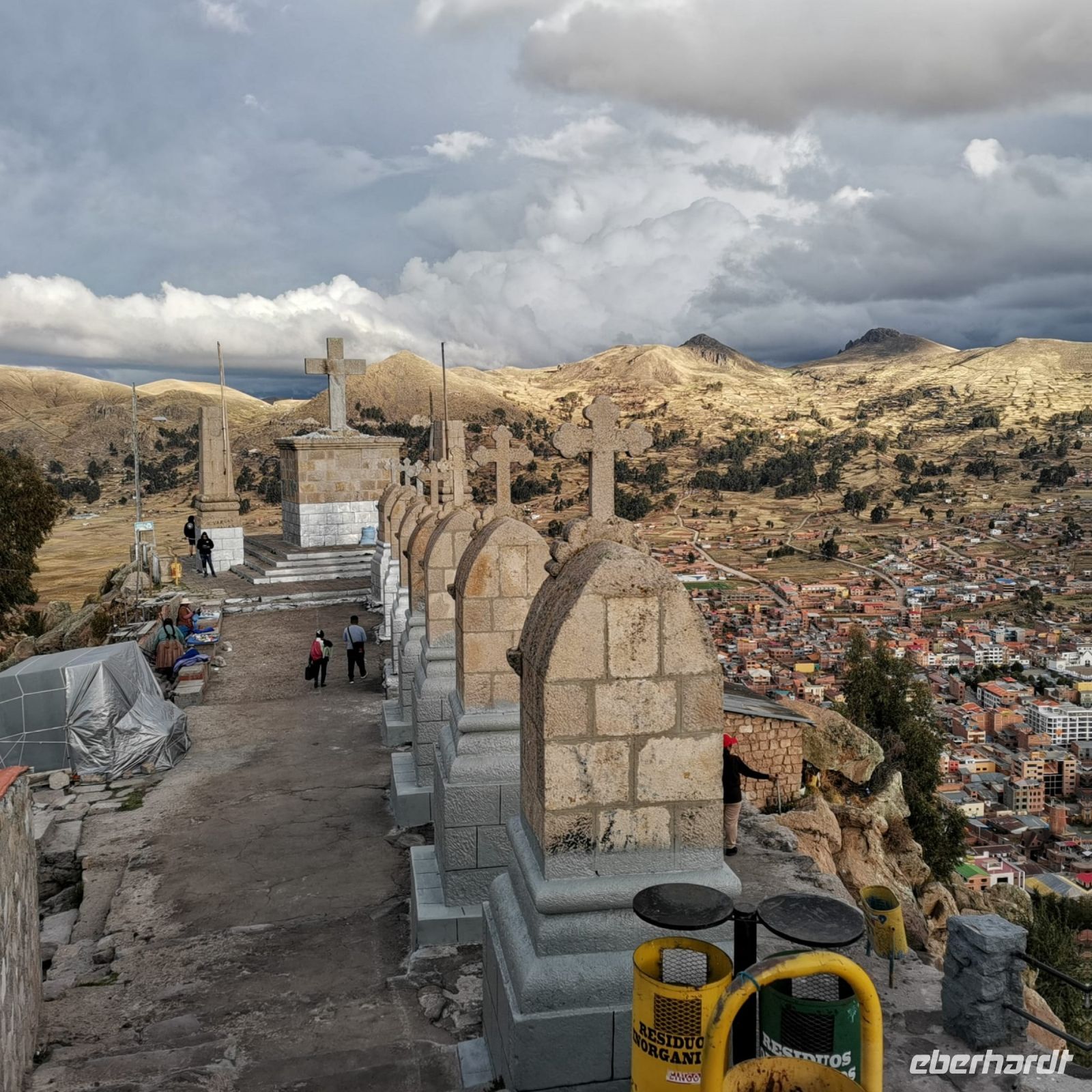 Wir spazieren noch ein wenig weiter durch die Straßen, den Markt und die Souvenirgeschäfte und ruhen uns nach den anstrengenden Tagen ein wenig aus. Einige entscheiden sich am Nachmittag noch mit Omar auf den Kalvarienberg zu steigen, von wo aus man einen fantastischen Blick über Copacabana hat.