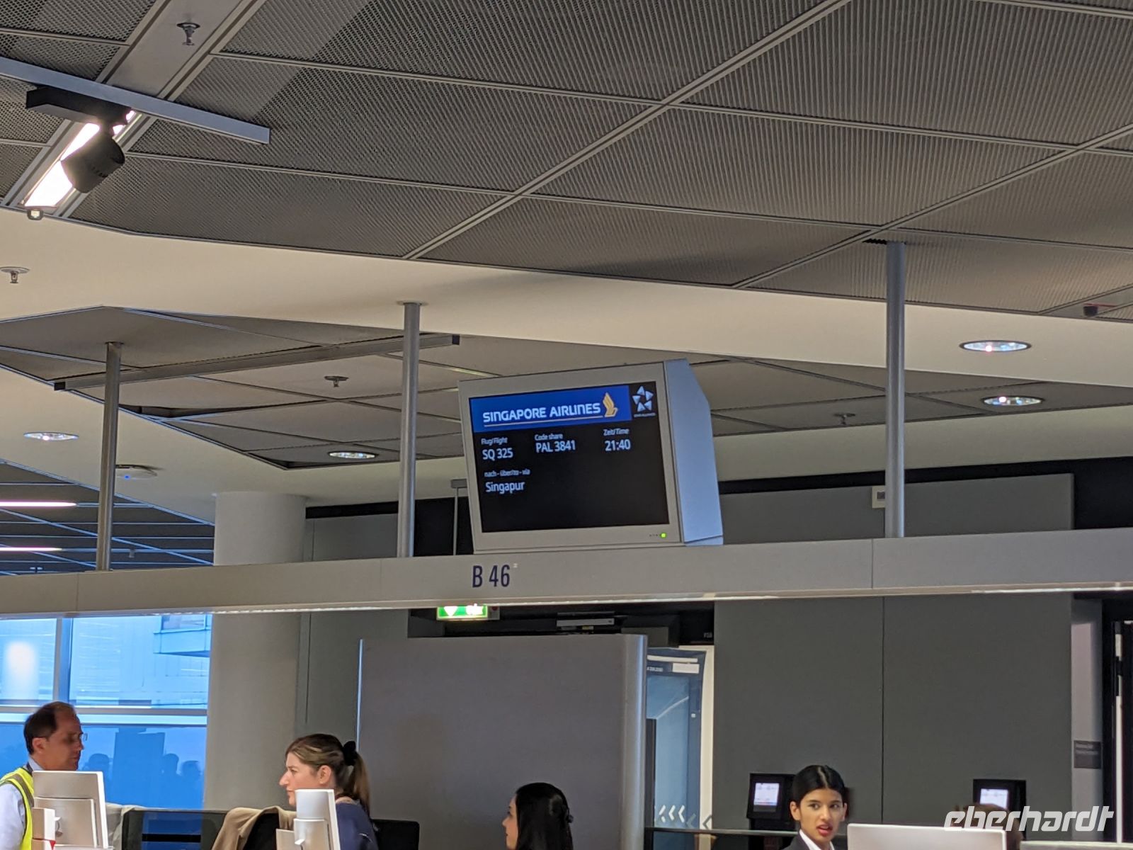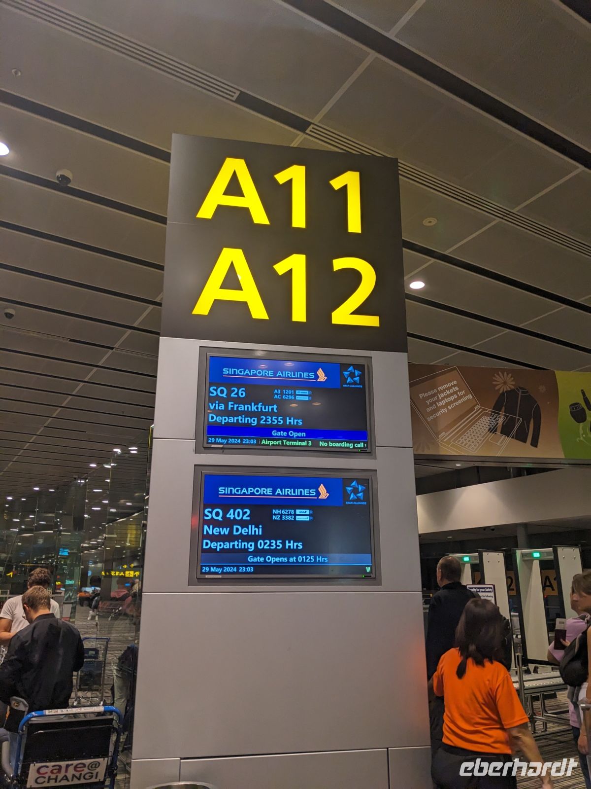 Nachdem wir uns alle in Frankfurt am Gate getroffen hatten und erste Gespräche zustande kamen, startete auch schon unser Flug nach Singapur. Hier hatten wir großes Glück, denn die Maschine war recht leer und so hatte man vieeel Platz - selbst in der Economy Class. Und so kamen wir komfortabel zunächst in Singapur an.