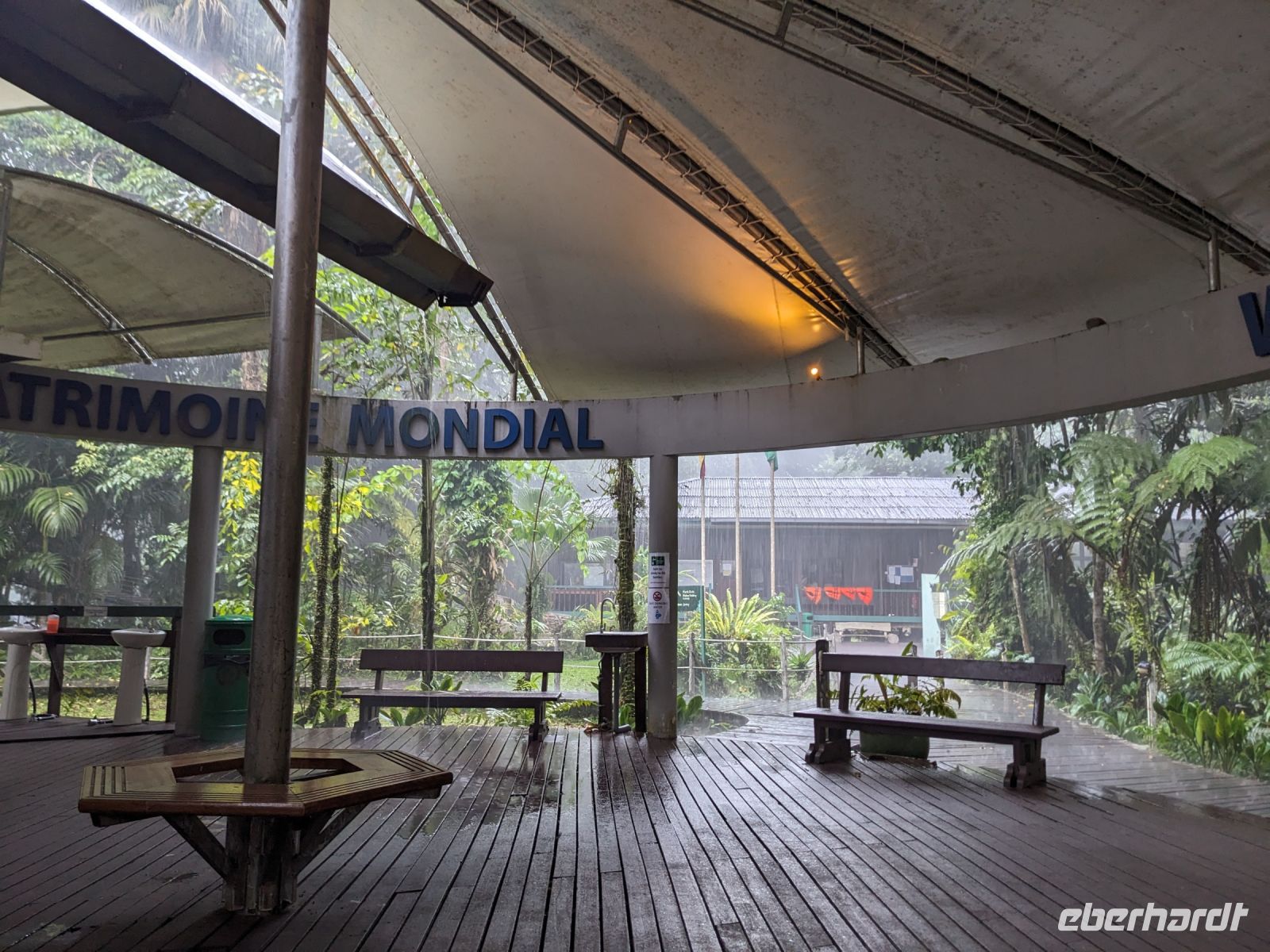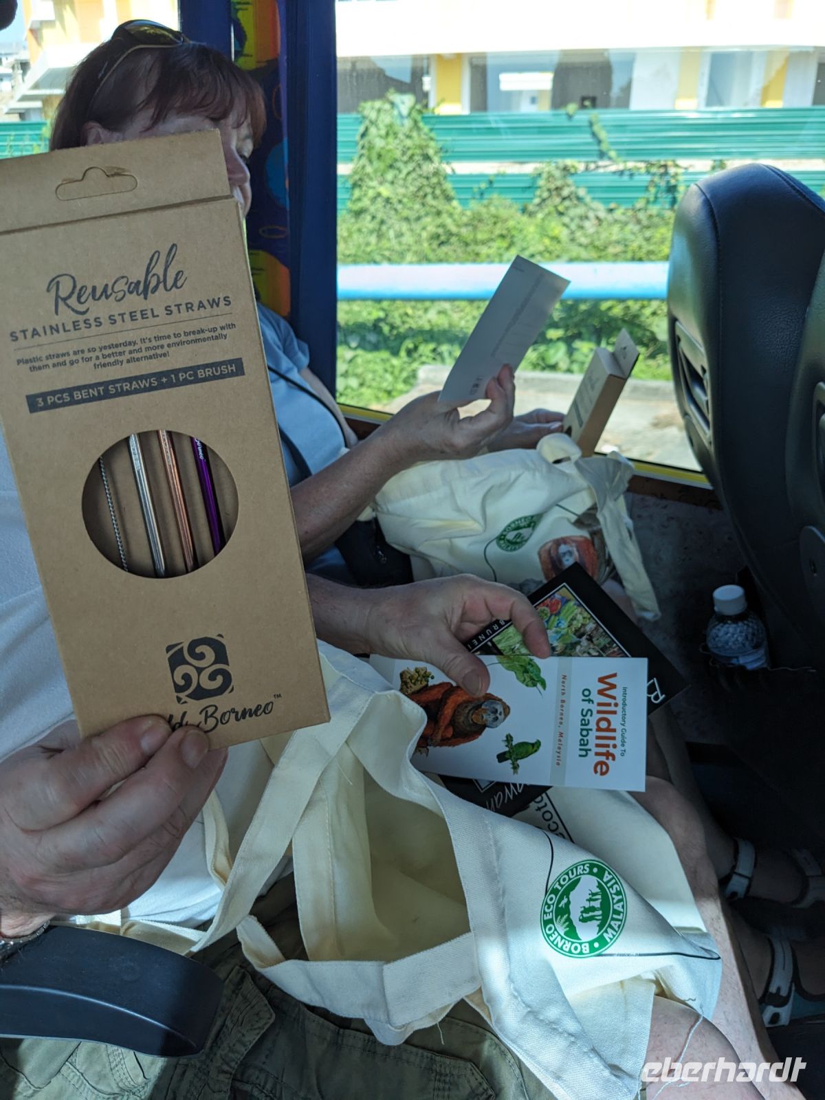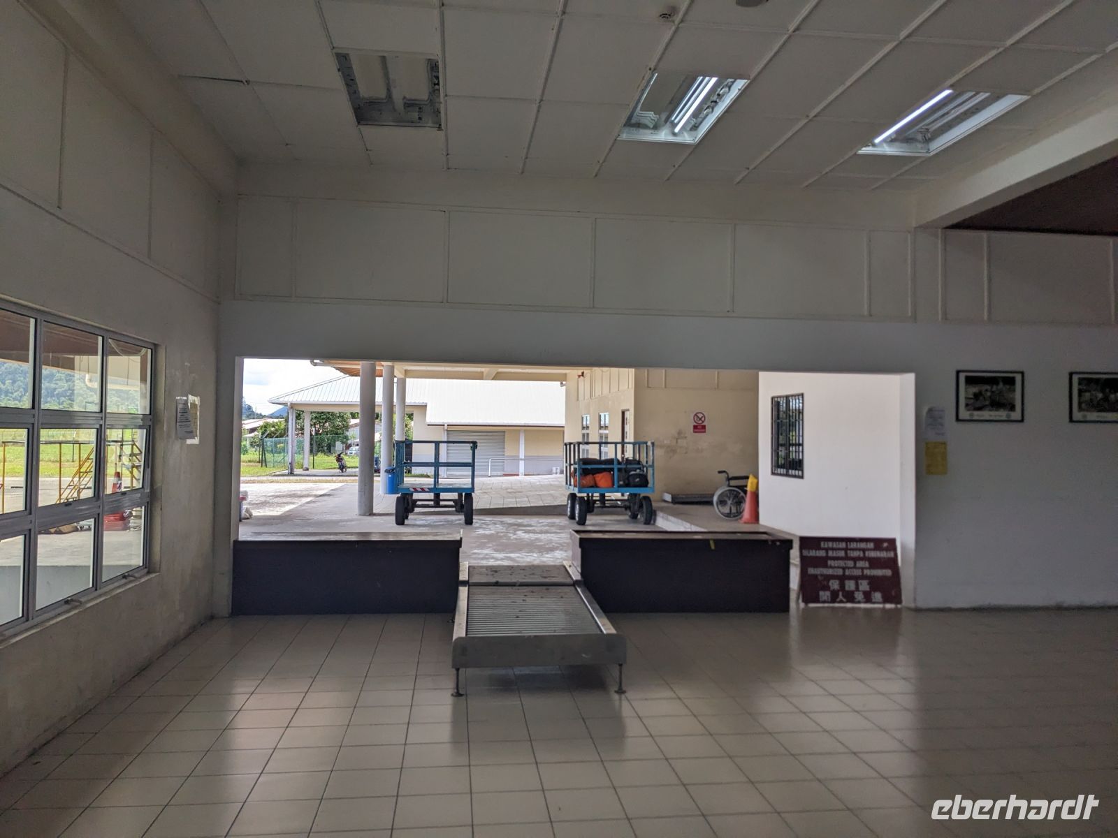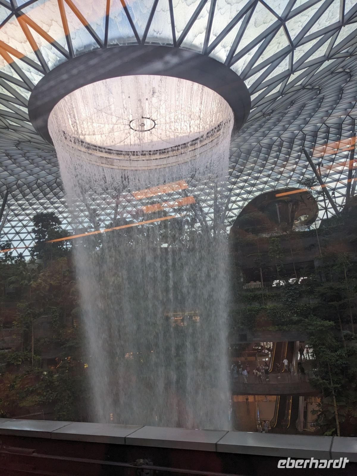 Mit den Skytrams, die die Terminals in Singapur miteinander verbinden, fuhren wir mehrmals durch den riesigen Dome, welcher mit seinem gewaltigen Wasserfall sehr eindrucksvoll ist. Anschließend flogen wir von Singapur weiter nach Kuching, wo uns unser lokaler Reiseleiter Tino sowie unser temporärer Guide für Kuching, Selvam, in Empfang nahmen. Leider hatte es ein Koffer nicht mit ans Ziel geschafft. Zum Glück wurde hier gut gepackt und die zwei waren erstmal mit dem Nötigsten versorgt. Ob wir wohl Glück haben und der Koffer rechtzeitig wieder auftaucht?