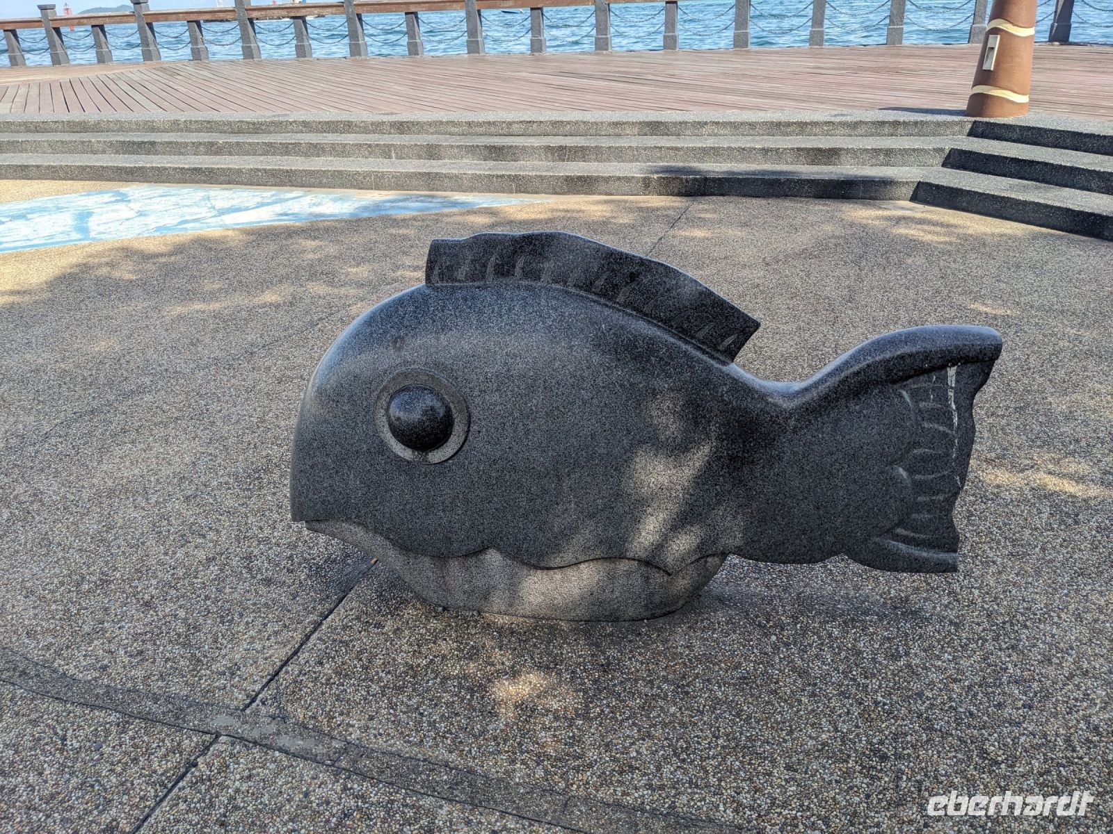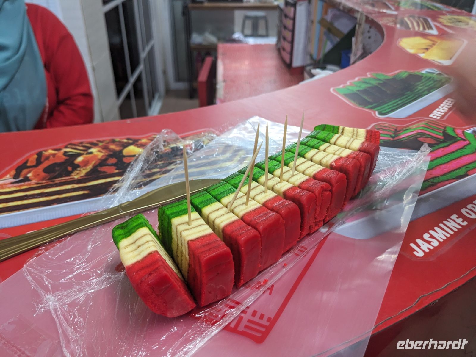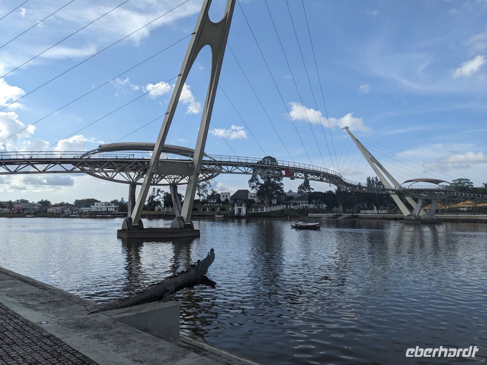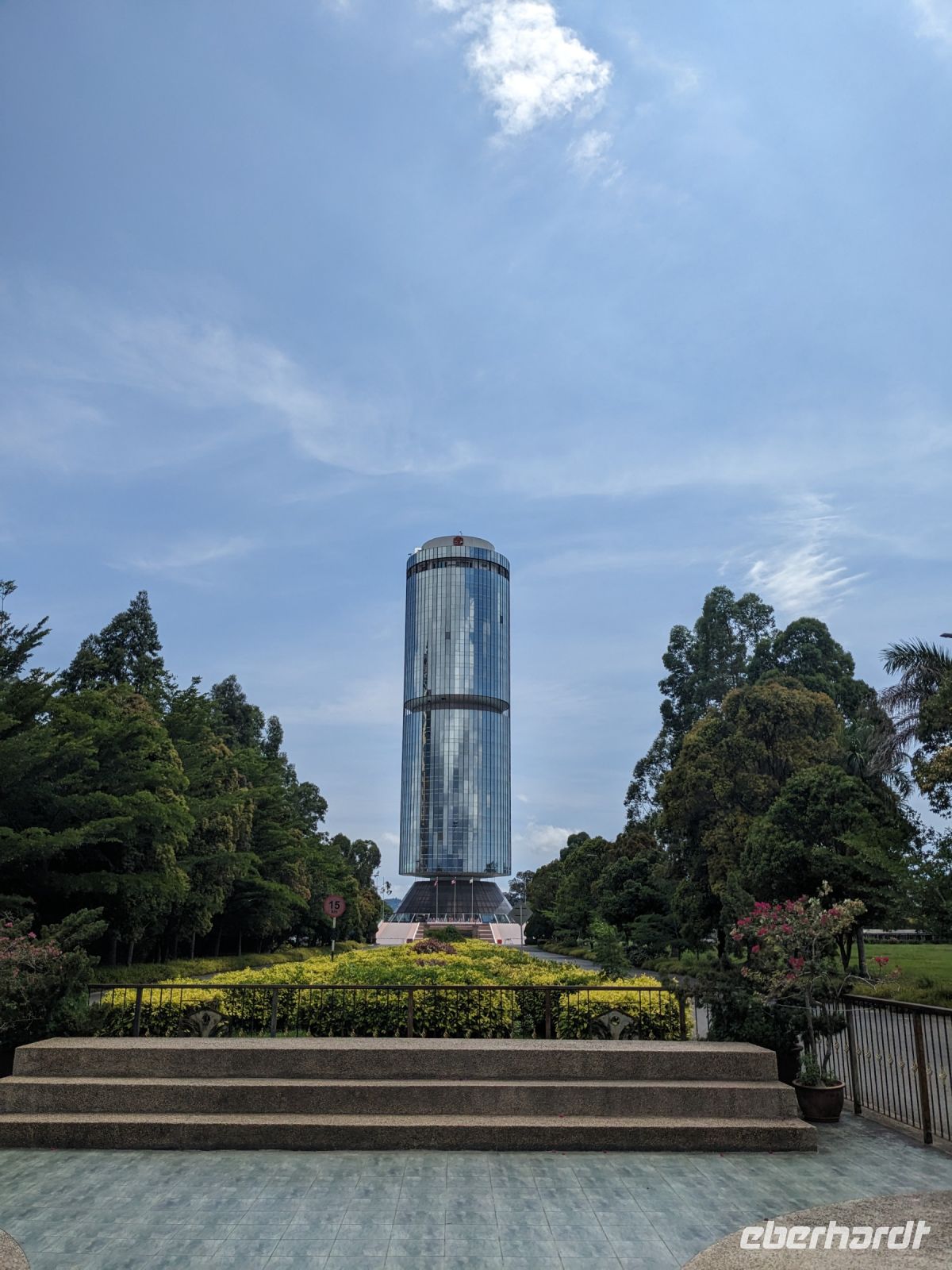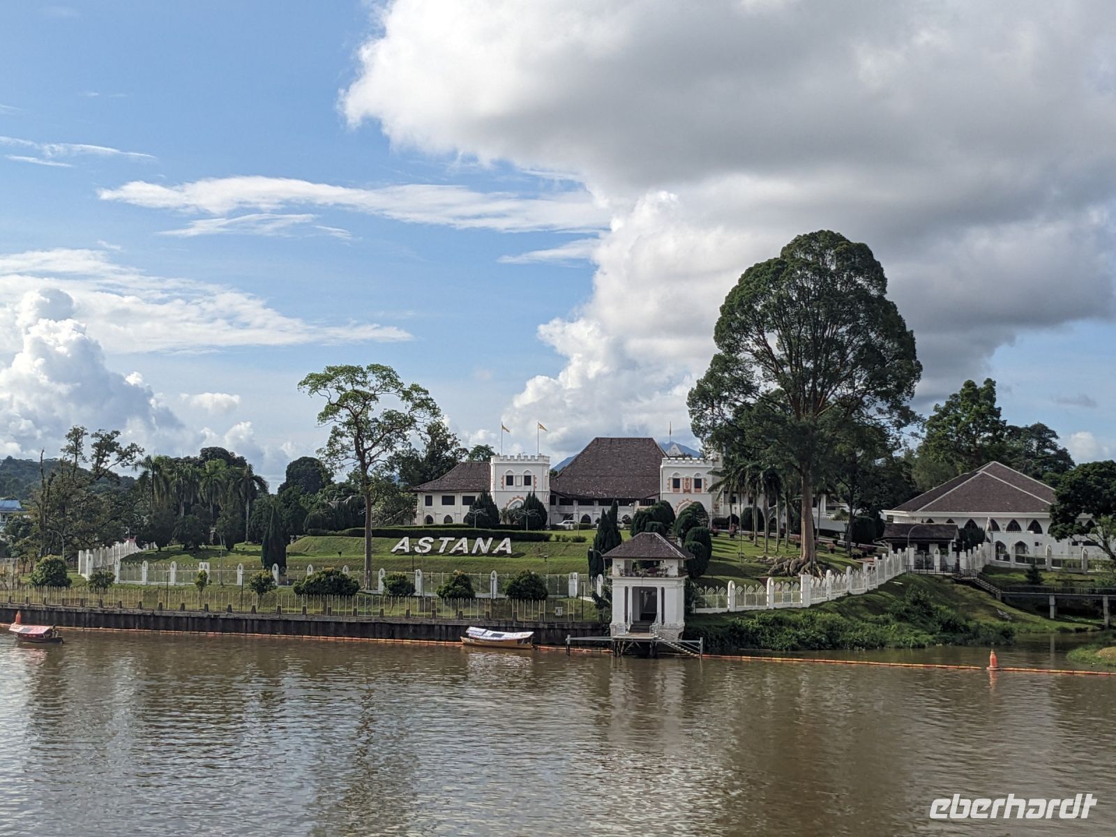 Ein wahrhaft schöner Tag erwartete uns heute. Nach einer paradiesischen Bootsfahrt kamen wir am Anleger des Nationalparks an. Während eines ersten Spaziergangs entdeckten wir schon einige tierische Bewohner – z.B. die Silbernen Haubenlanguren, eine Herde wilder Schweine sowie eine giftgrüne Schlange. Anschließend gab es ein Lunchpaket für uns, welches wir in der weitläufigen Zentrumshalle einnehmen konnten. Dann folgte unser zweiter Spaziergang oder sollte ich eher sagen Wanderung? Denn es ging über Stock und Stein, doch alles lohnte sich, denn auf dem Rückweg entdeckten wir unseren ersten Nasi – unseren ersten Nasenaffen. Er zeigt sich uns in seiner vollen Pracht und gab uns unglaublich viele schöne Möglichkeiten zum Fotografieren. Schließlich trauten sich auch die Langschwanz-Makaken heraus und damit haben wir alle drei vertretenen Affenarten innerhalb des Nationalparks gesehen. Nach diesem grandiosen Abschluss kehrten wir zurück nach Kuching. Dort verabredeten wir uns wieder zum Abendessen und überquerten dafür den Fluss in einem kleinen Boot, um zum Restaurant auf die andere Seite zu kommen. Direkt am Ufer genossen wir traditionelle Gerichte und als Dessert einen für die Region typischen Kuchen, welchen wir uns teilten. Mit dem Boot fuhren wir wieder zurück auf die andere Seite und flanierten noch entlang der Wasserpromenade, um die abendliche Wassershow vor dem Parlamentsgebäude zu bestaunen. Unterlegt mit Musik sowie Feuerelementen und schön ausgeleuchtet, hatten sie sich hier echt was einfallen lassen.