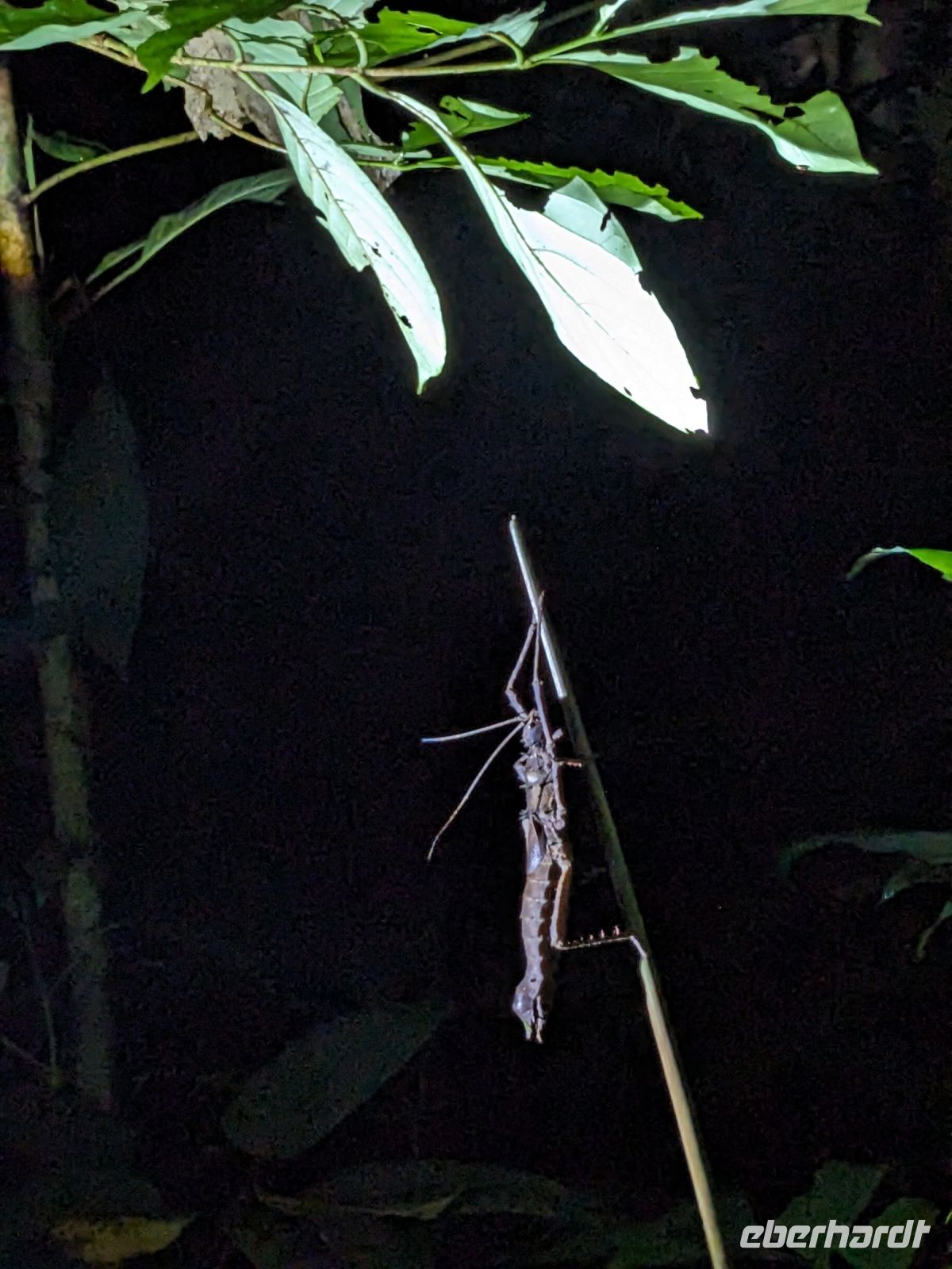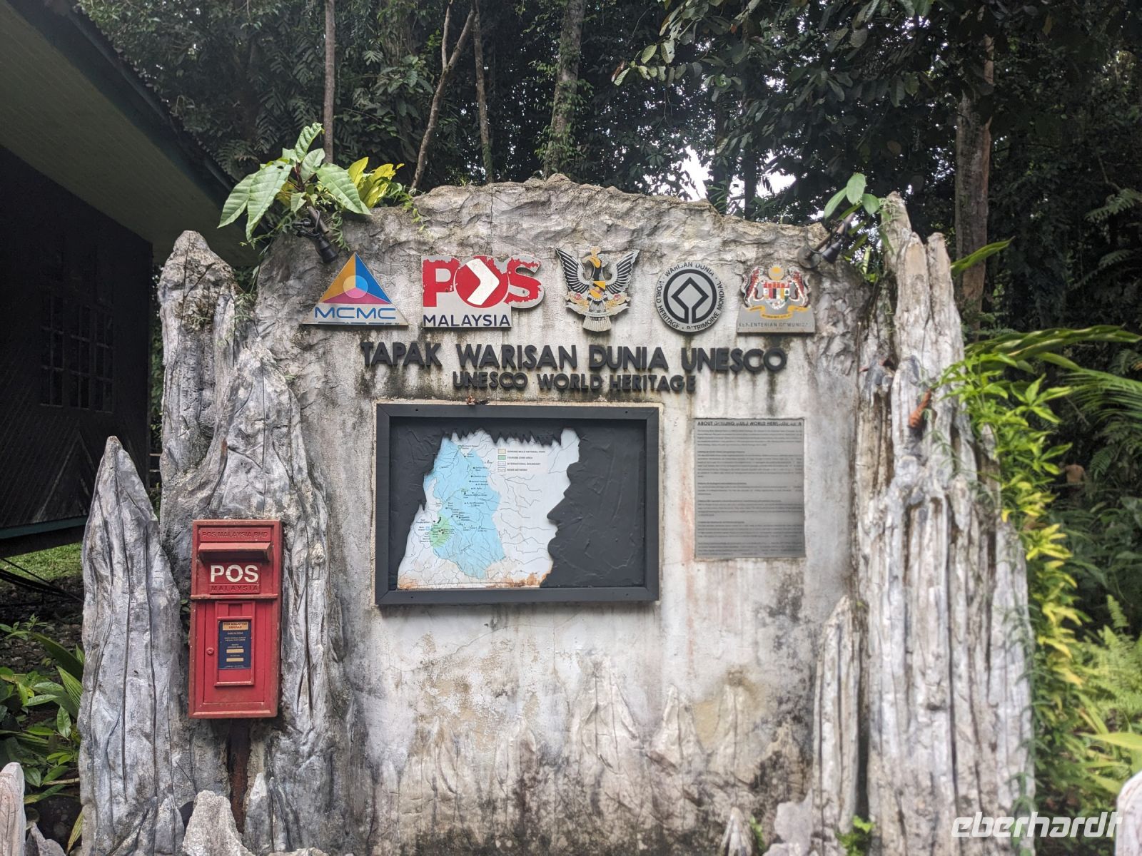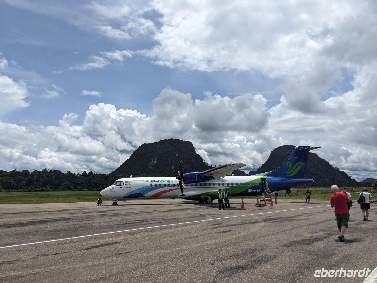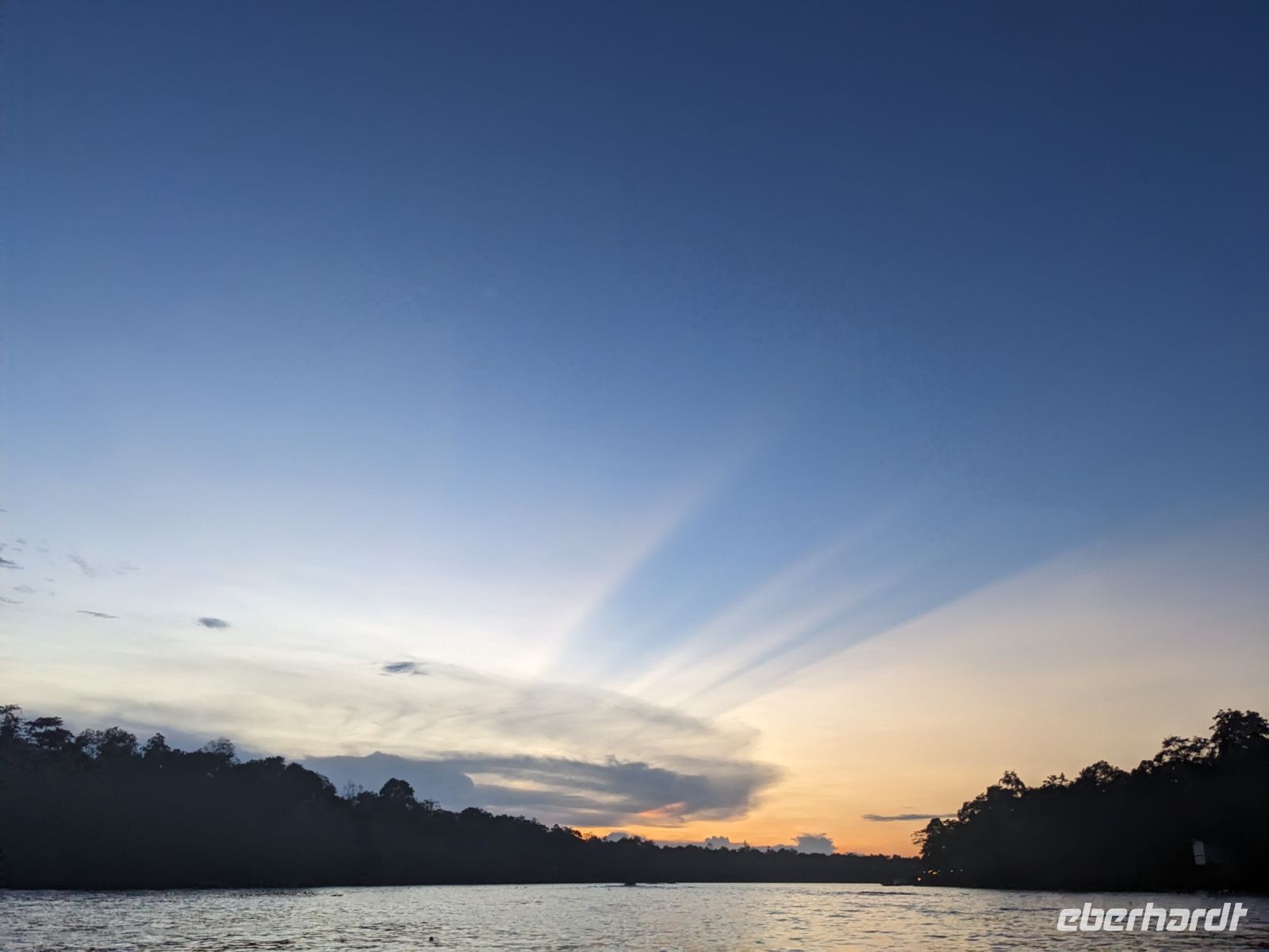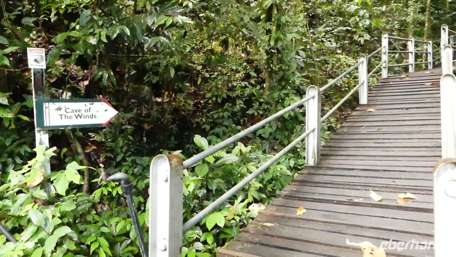Nach unserer Ankunft an dem sehr kleinen Flughafen in Mulu brachte man uns sogleich ins Hotel. Während wir darauf warteten, dass unsere Zimmer bezugsfertig wurden, erlebten wir bereits dieses einzigartige offene Konzept der Lodge umgeben von purer Natur. Schließlich ging es zum Mittagessen, worauf wir im Anschluss unsere Erkundungstour im Mulu Nationalpark starteten. Entlang des flachen Boardwalks erlebten wir den Regenwald von Borneo mit all seiner Intensität. Es zeigten sich einige tierische Bewohner, vor allem Insekten und final kamen wir dann auf eine Lichtung, an der wir kurz Pause machten und später zum Fledermäuse beobachten zurückkehren sollten. Doch solange es noch hell war, bestaunten wir zunächst erstmal Langs Cave und Deer Cave. Langs Cave beeindruckte vor allem mit seinen zahlreichen außergewöhnlichen Formationen. Deer Cave gab bereits einen Eindruck davon, was uns gleich erwartete. Die riesigen dunklen Flecken an der Höhlendecke waren die Millionen fast aufbruchsbereiten Fledermäusen. Zudem zeigte sich das Profil von Abraham Lincoln mit Blick auf den großen Höhleneingang. Gerade noch rechtzeitig schafften wir es zurück zur Lichtung und bestaunten das unglaubliche natürliche Spektakel der Fledermausschwärme, welche in der Abenddämmerung gen Himmel zogen, um auf Nahrungssuche zu gehen. In kleinerer Gruppe unternahmen wir noch eine Nachtwanderung, während der Großteil der Gruppe in die Lodge zum Abendessen zurückkehrte.
