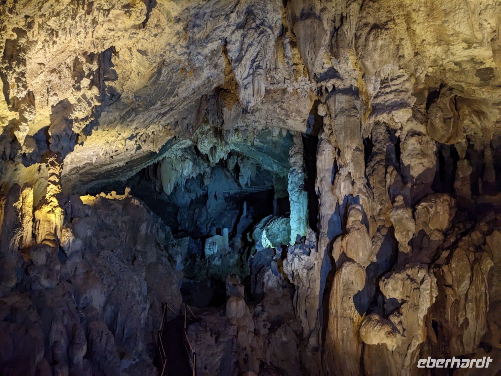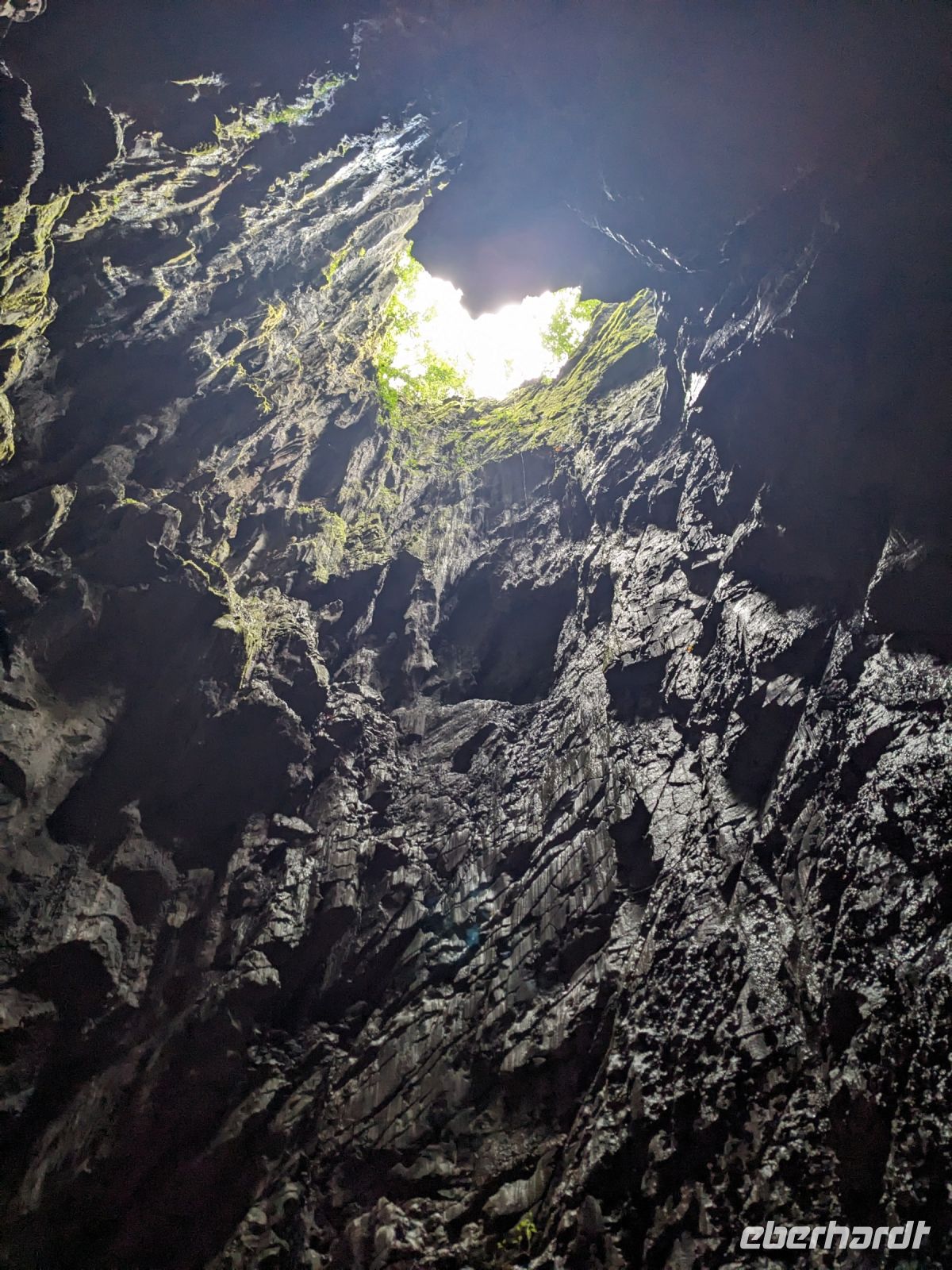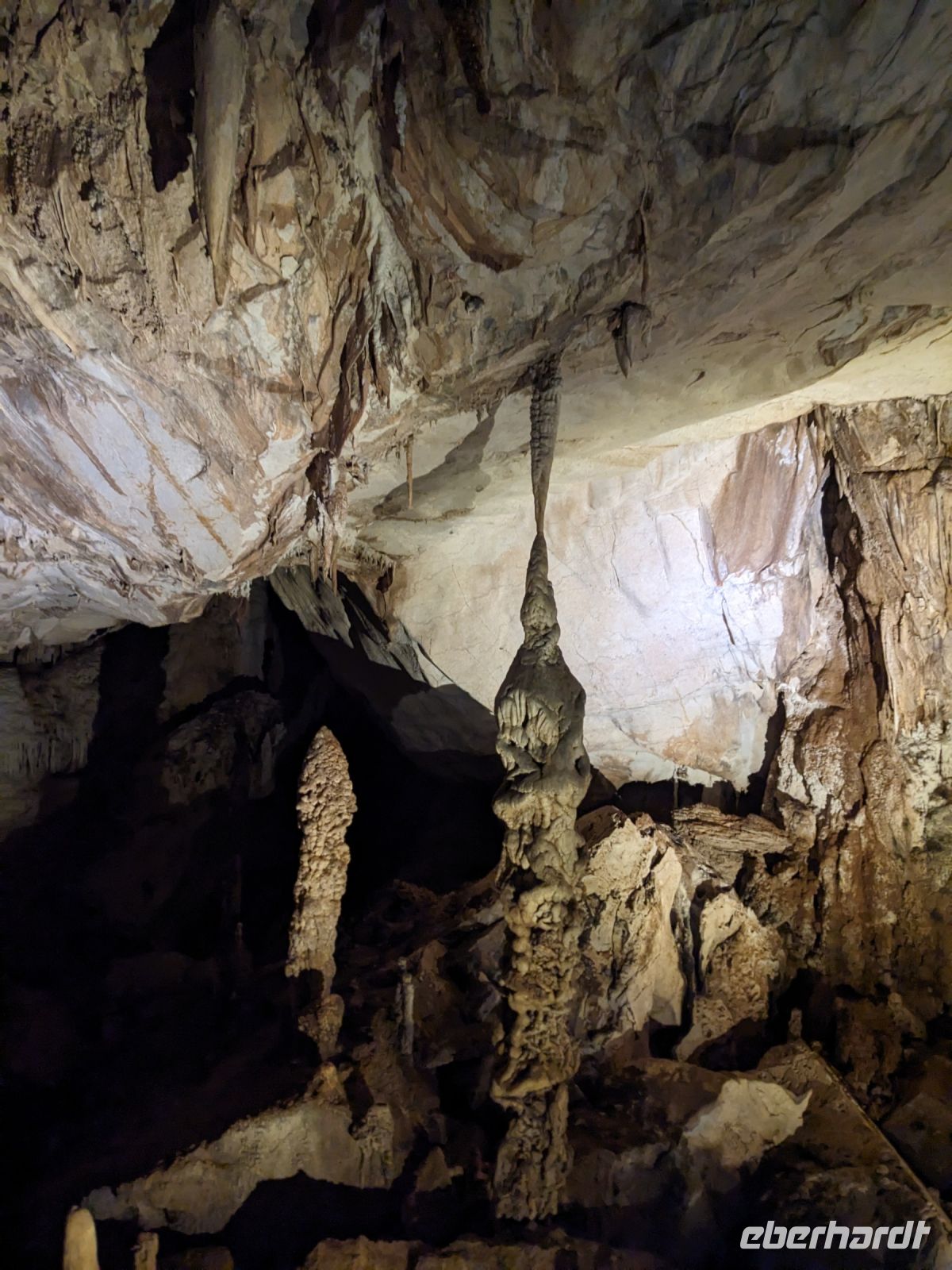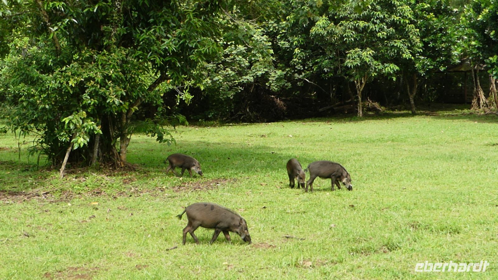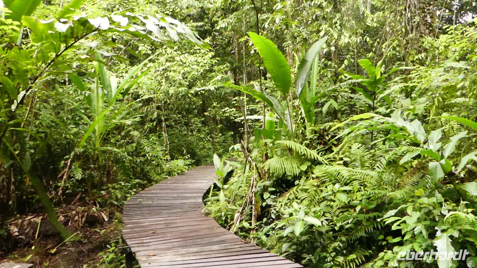 Nach unserer Ankunft an dem sehr kleinen Flughafen in Mulu brachte man uns sogleich ins Hotel. Während wir darauf warteten, dass unsere Zimmer bezugsfertig wurden, erlebten wir bereits dieses einzigartige offene Konzept der Lodge umgeben von purer Natur. Schließlich ging es zum Mittagessen, worauf wir im Anschluss unsere Erkundungstour im Mulu Nationalpark starteten. Entlang des flachen Boardwalks erlebten wir den Regenwald von Borneo mit all seiner Intensität. Es zeigten sich einige tierische Bewohner, vor allem Insekten und final kamen wir dann auf eine Lichtung, an der wir kurz Pause machten und später zum Fledermäuse beobachten zurückkehren sollten. Doch solange es noch hell war, bestaunten wir zunächst erstmal Langs Cave und Deer Cave. Langs Cave beeindruckte vor allem mit seinen zahlreichen außergewöhnlichen Formationen. Deer Cave gab bereits einen Eindruck davon, was uns gleich erwartete. Die riesigen dunklen Flecken an der Höhlendecke waren die Millionen fast aufbruchsbereiten Fledermäusen. Zudem zeigte sich das Profil von Abraham Lincoln mit Blick auf den großen Höhleneingang. Gerade noch rechtzeitig schafften wir es zurück zur Lichtung und bestaunten das unglaubliche natürliche Spektakel der Fledermausschwärme, welche in der Abenddämmerung gen Himmel zogen, um auf Nahrungssuche zu gehen. In kleinerer Gruppe unternahmen wir noch eine Nachtwanderung, während der Großteil der Gruppe in die Lodge zum Abendessen zurückkehrte.