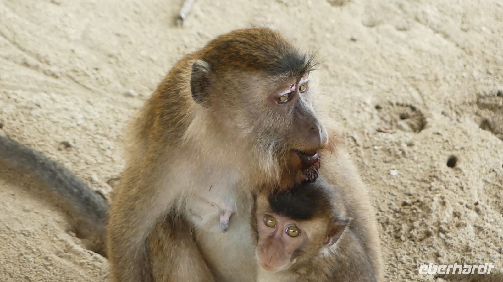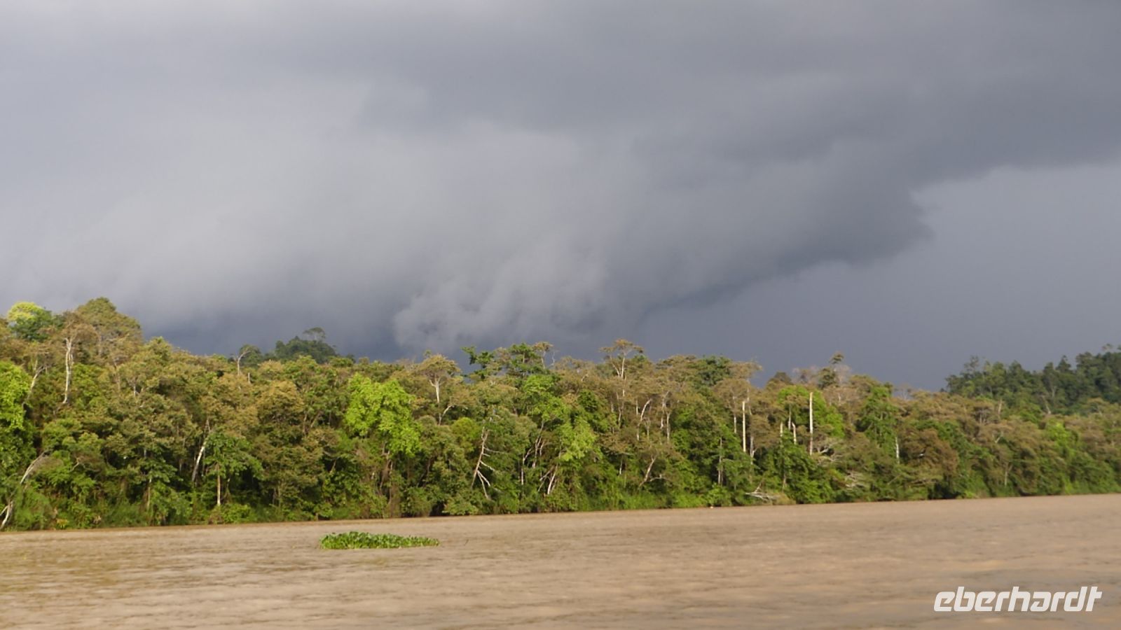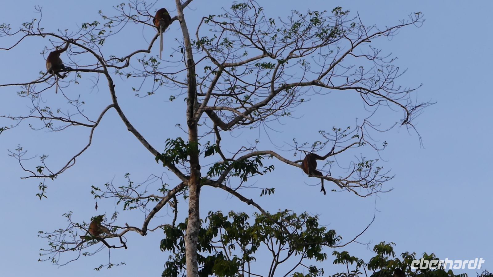 Nach dem Besuch des Orang Utan Zentrums Sepilok, wo wir sowohl Jungtiere als auch ausgewachsene Tiere bestaunen konnten, erlebten wir dort auch die für die Region typischen Sonnenbären. Letztere werden je nach Altersgruppe getrennt voneinander gehalten und wir bekamen die Möglichkeit, sie von der Besucherplattform über den Gehegen zu beobachten. Bei den Orang Utans hatten wir gerade das Glück, dass es wenig Früchte im Wald gibt, sodass die Tiere vermehrt zu den Fütterungszeiten kommen. Auch hier würdigte uns wieder ein großes Alpha-Männchen mit seiner Präsenz, doch genau wie in dem Centre in Sarawak, war er eher kamerascheu und zeigte uns vielfach seine Kehrseite. Es ist schwierig, die Stimmung der Tiere einzuschätzen, da sie sich keinerlei Emotionen ansehen lassen und so ist auf Abstand zu gehen, in jeder Situation, der beste Ratschlag. Mit dem Bus fuhren wir dann zu unserer Rainforest Lodge direkt am Kinabatangan-Fluss. Gerade noch rechtzeitig vor einem Regenguss schafften wir es zu unserer Unterkunft. Pünktlich für die spätnachmittägliche Rundfahrt hörte es dann wieder auf und wir erlebten zahlreiche Nasenaffen, Makaken sowie gut versteckte Orang Utans in freier Wildbahn. Auch der für die Region typische Nashornvogel zeigte sich uns. Bei toller Stimmung während der Abenddämmerung erlebten wir eine eindrucksvolle Bootsfahrt. Wieder zurück in der Lodge gab es in traditionellen Gewändern gekleidet ein leckeres Buffet.