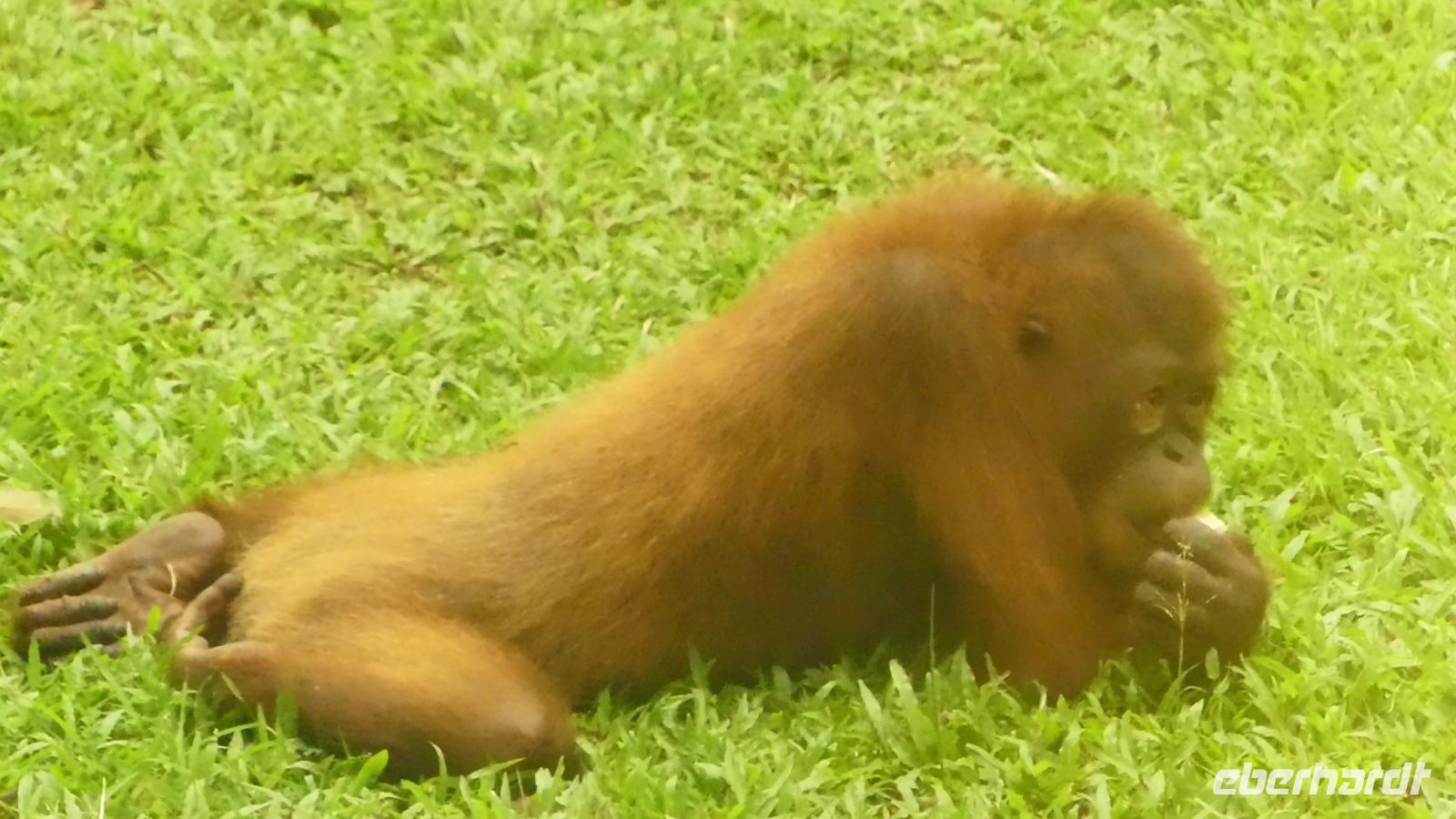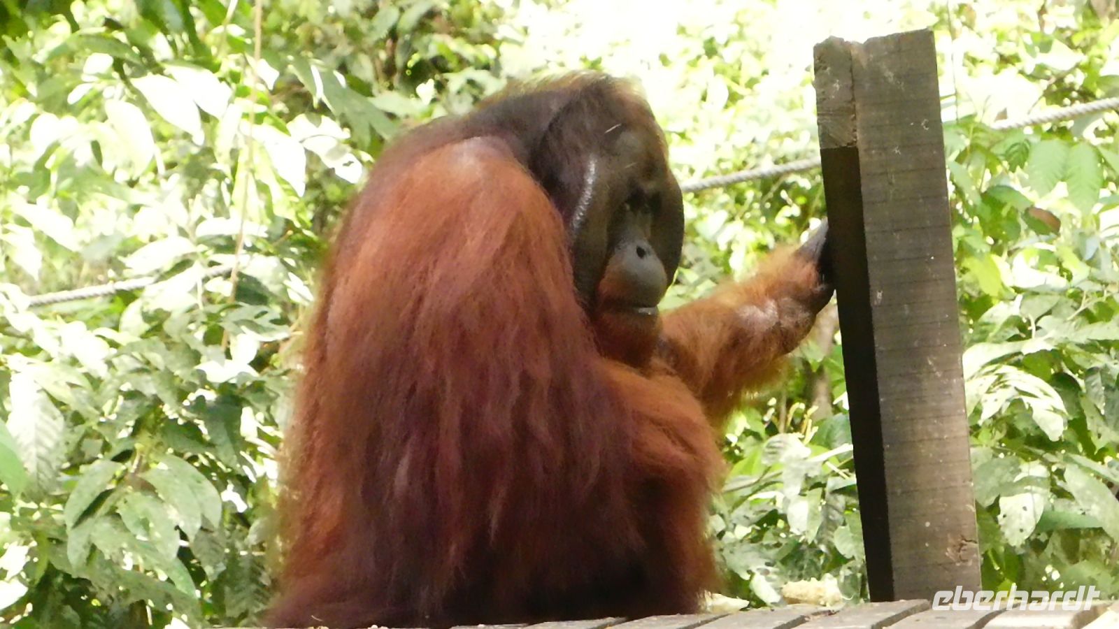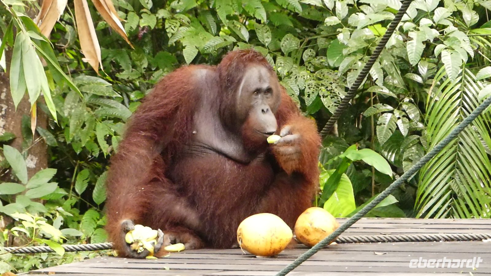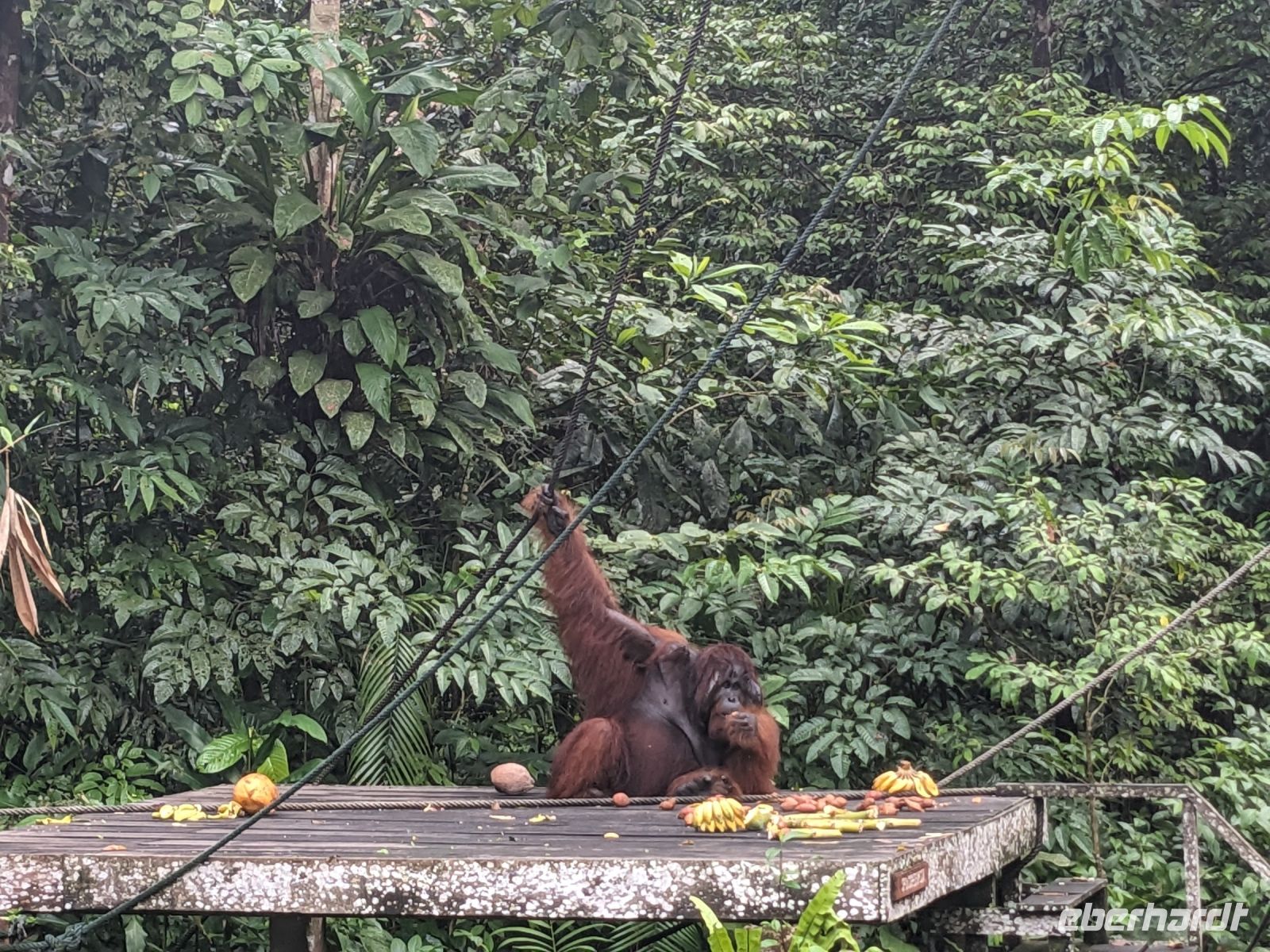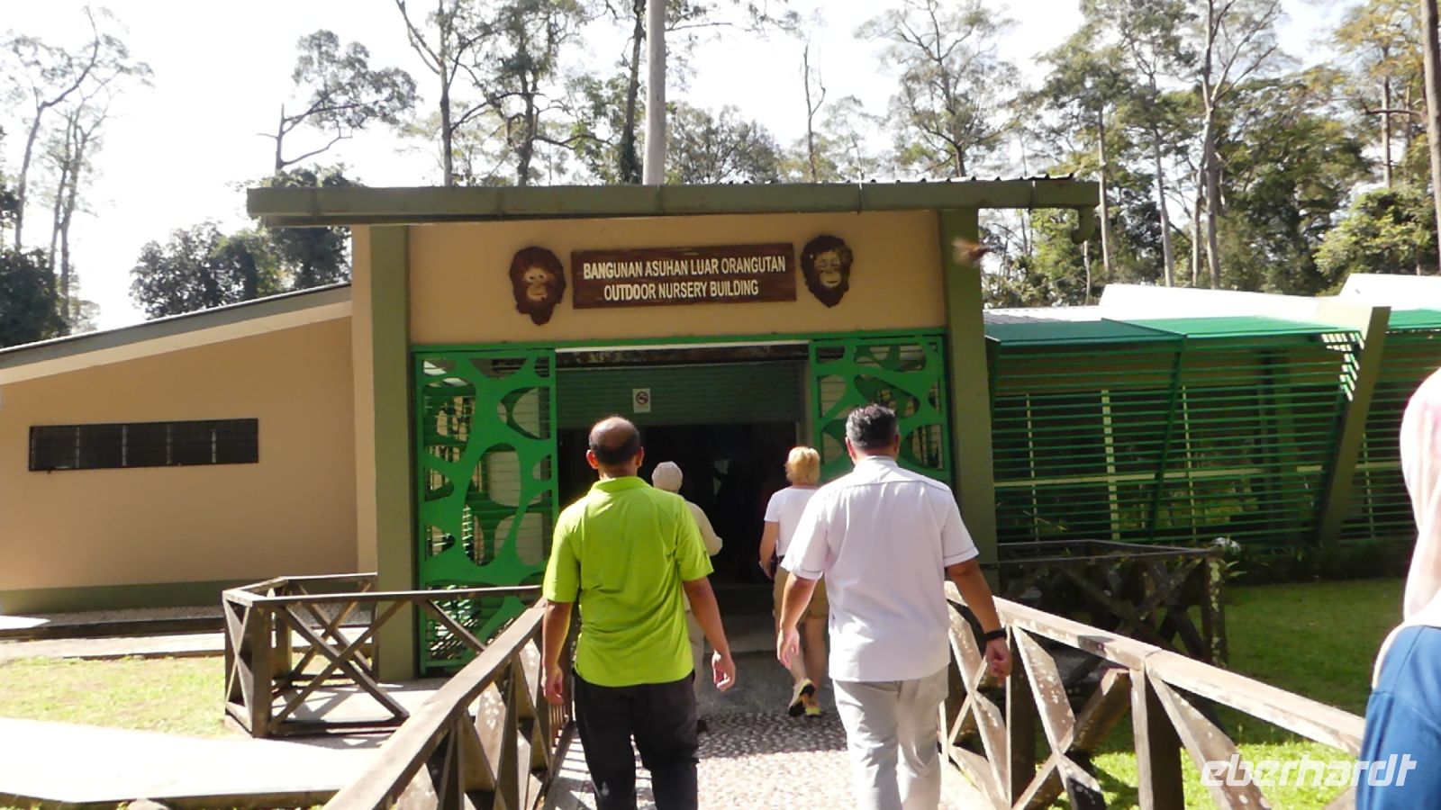 Von einer Aussichtsplattform aus konnten wir uns heute die Orang Utans anschauen, welche zur Fütterungszeit aus den verschiedensten Richtungen zusammenkamen. Wie wir gelernt haben, sind die Tiere, anders als viele andere ihrer Artgenossen, Einzelgänger. Auch ein Alphamännchen ließ sich sehen – ein bisschen scheu, sahen wir aber vor allem seine eindrucksvolle Rückseite. Eine Mama mit Baby traute sich auch hervor. Die Bananen waren dann doch zu verlockend. Zurück in Kuching hatten wir den Nachmittag zur freien Verfügung. Fast geschlossen besuchten wir hier den Orchideengarten. Die kostenfreie Anlage ist sehr schön angelegt und beherbergt einige sehr außergewöhnliche Arten. Zum Abendessen waren wir wieder alle zusammen – es ging in das Restaurant The Junk. Hier war das Essen nicht nur besonders lecker, sondern auch in absoluter Superlative. Ein Spaß war es allemal. Eine Glücksbotschaft erreichte uns zudem am heutigen Abend: der verlorene Koffer war wieder aufgetaucht und sollte nun nach Mulu, unserem nächsten Stopp, gebracht werden!