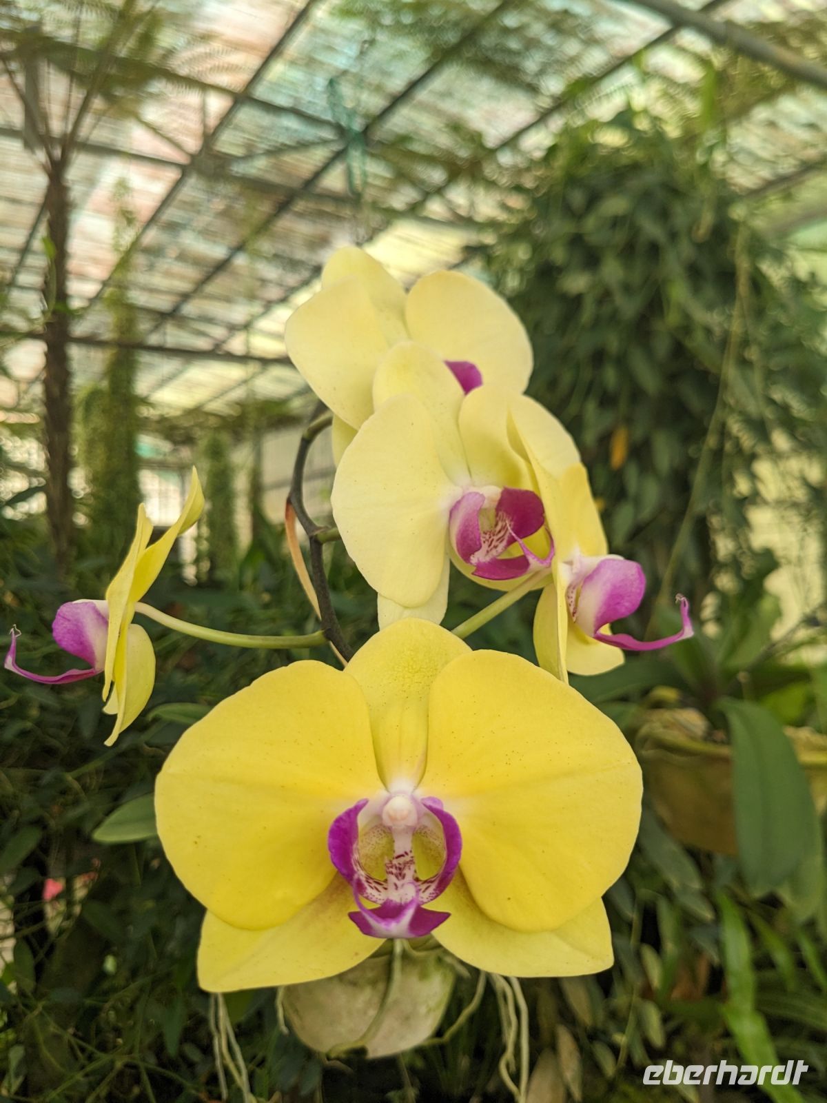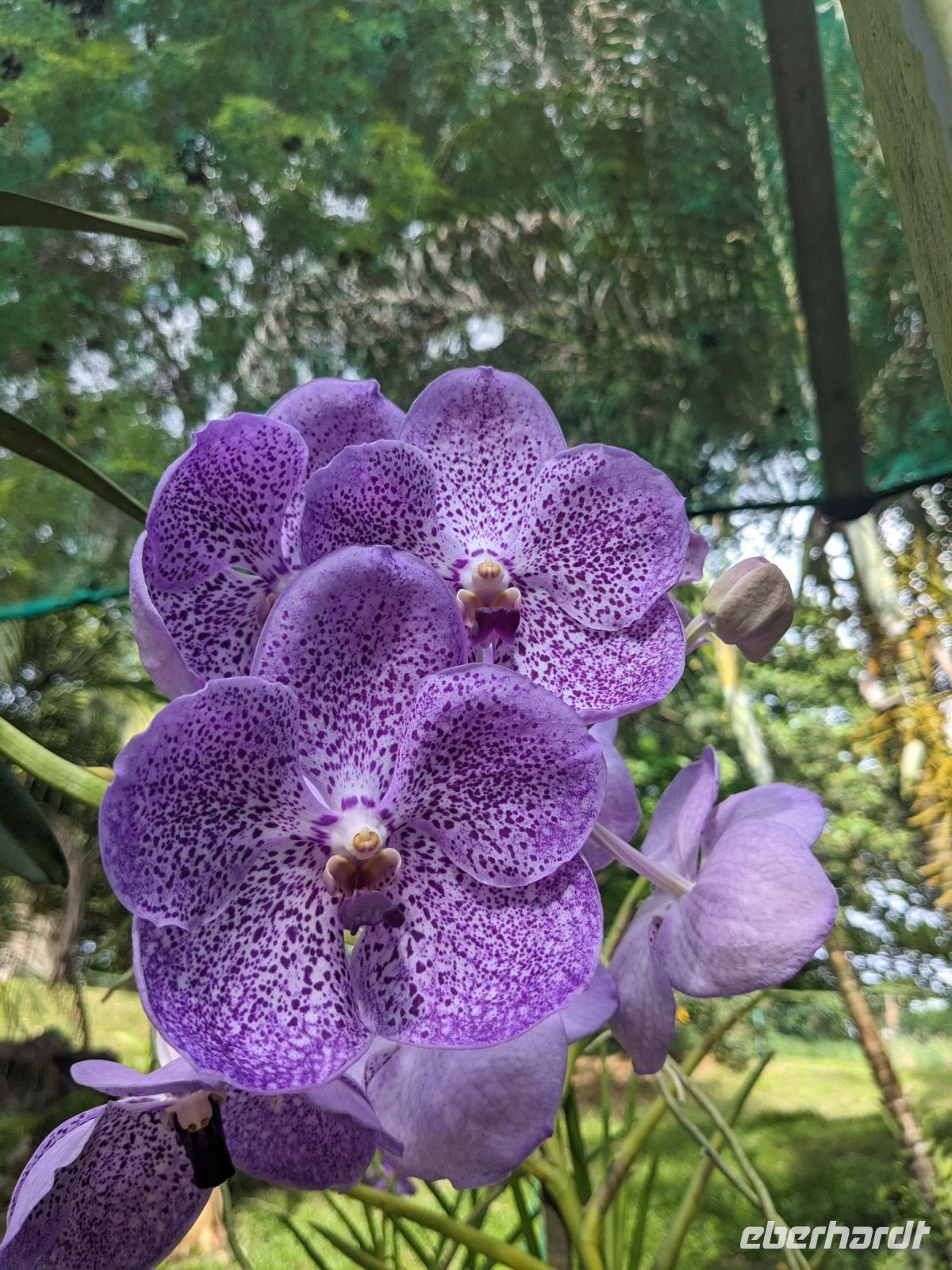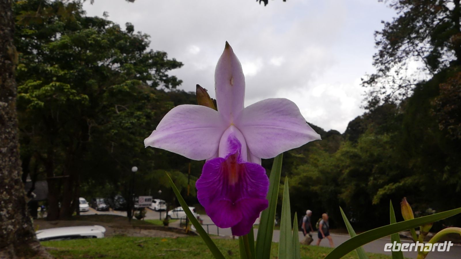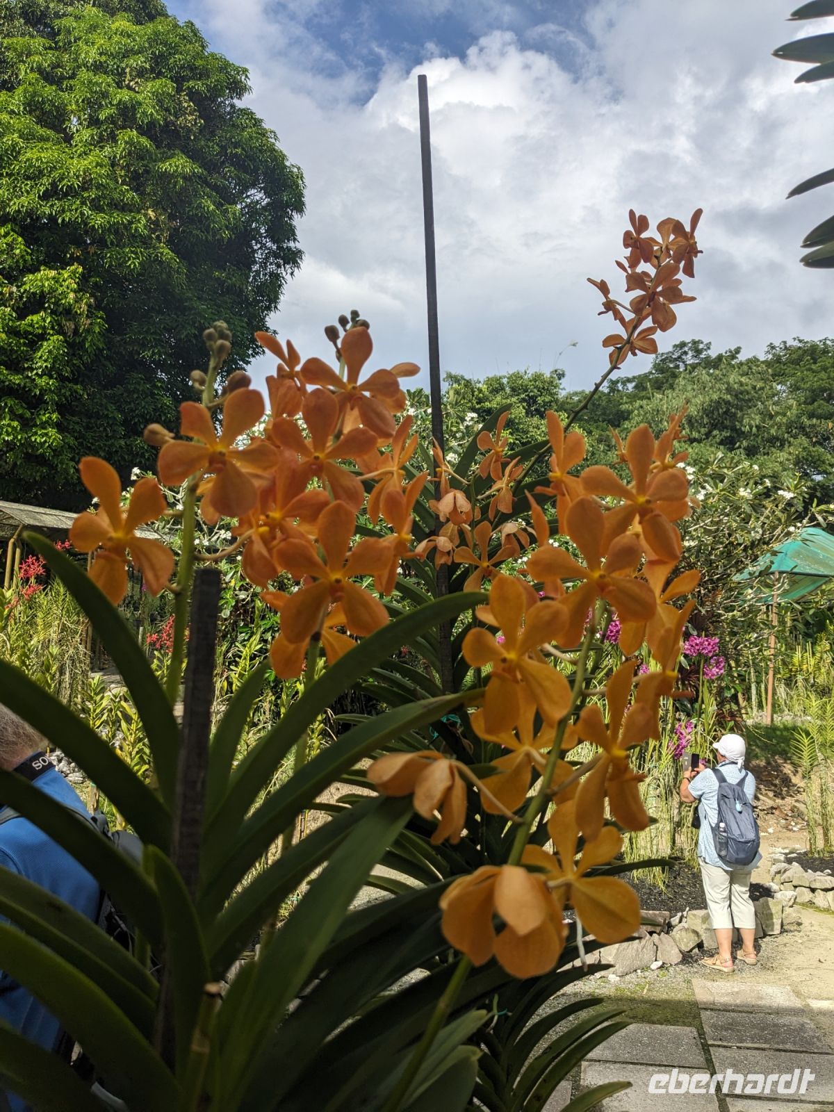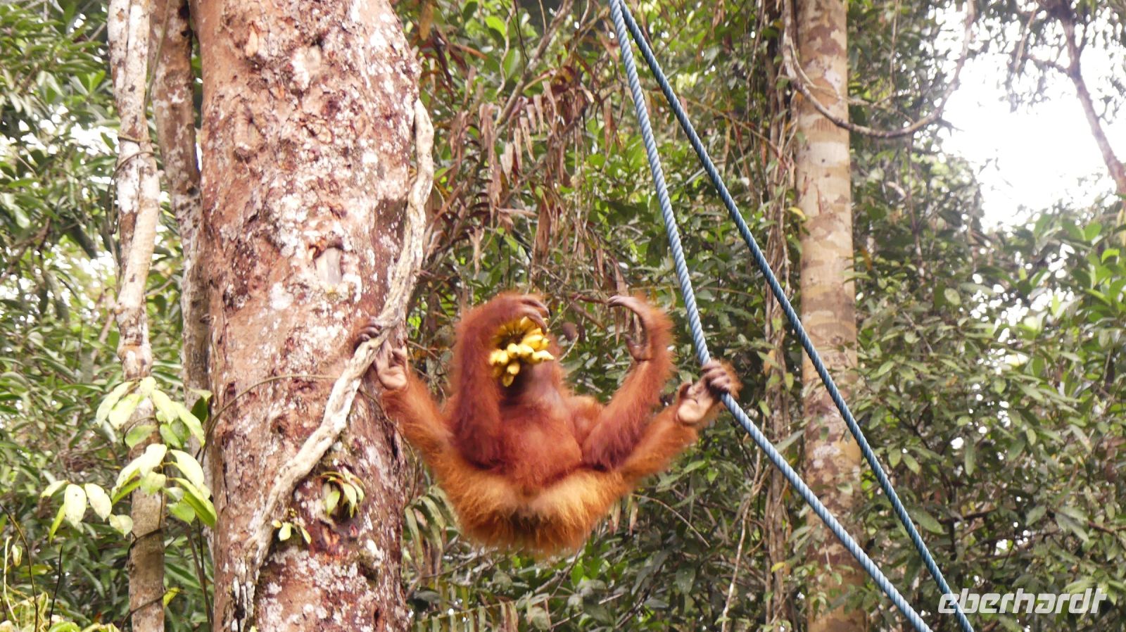 Von einer Aussichtsplattform aus konnten wir uns heute die Orang Utans anschauen, welche zur Fütterungszeit aus den verschiedensten Richtungen zusammenkamen. Wie wir gelernt haben, sind die Tiere, anders als viele andere ihrer Artgenossen, Einzelgänger. Auch ein Alphamännchen ließ sich sehen – ein bisschen scheu, sahen wir aber vor allem seine eindrucksvolle Rückseite. Eine Mama mit Baby traute sich auch hervor. Die Bananen waren dann doch zu verlockend. Zurück in Kuching hatten wir den Nachmittag zur freien Verfügung. Fast geschlossen besuchten wir hier den Orchideengarten. Die kostenfreie Anlage ist sehr schön angelegt und beherbergt einige sehr außergewöhnliche Arten. Zum Abendessen waren wir wieder alle zusammen – es ging in das Restaurant The Junk. Hier war das Essen nicht nur besonders lecker, sondern auch in absoluter Superlative. Ein Spaß war es allemal. Eine Glücksbotschaft erreichte uns zudem am heutigen Abend: der verlorene Koffer war wieder aufgetaucht und sollte nun nach Mulu, unserem nächsten Stopp, gebracht werden!