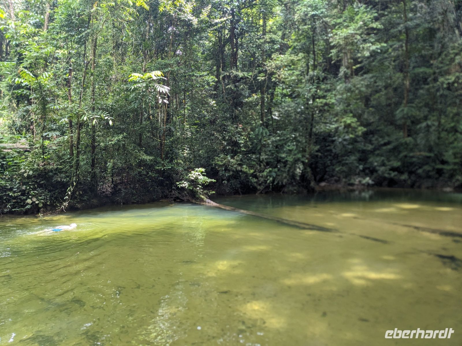 Sowohl bei der morgendlichen als auch bei der nachmittäglichen Bootsfahrt hielten wir Augen und Ohren offen, doch leider zeigten sie sich uns nicht: die Zwergelefanten! Doch wir bekamen die Chance, viele andere Tiere zu sehen, unter anderem auch Krokodile und damit hatten wir, neben den Nashornvogel, dem Orang Utan und dem Nasenaffen, vier der fünf Big Five in Borneo gesehen.