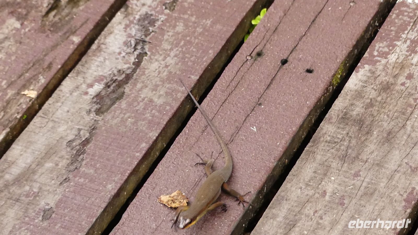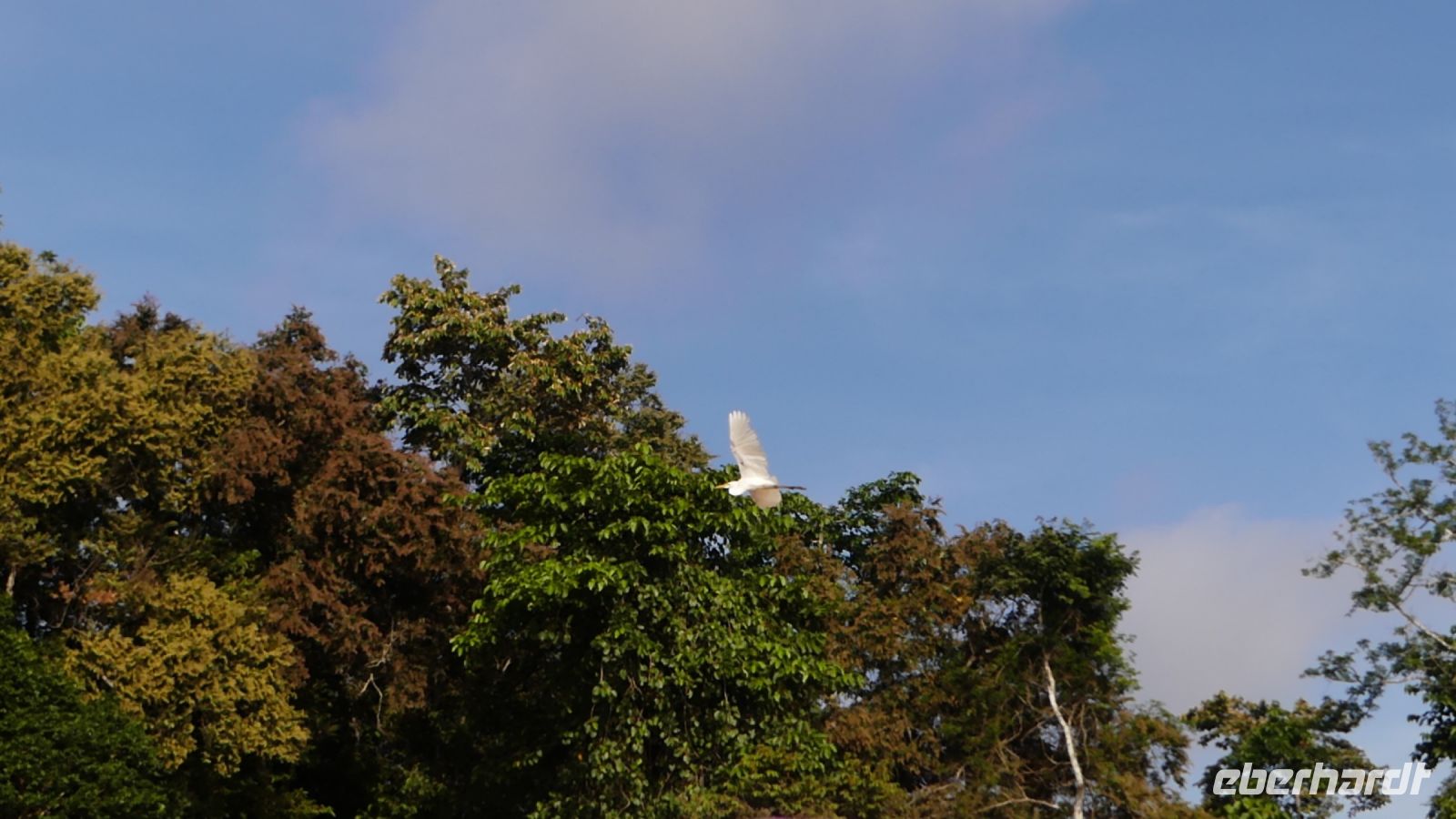 Bei der morgendlichen Rundfahrt waren wir ein Ticken zu spät und zwischendurch war der Geruch der Tiere sogar mal deutlich wahrnehmbar. Es zeigten sich dann aber einige Krokodile, sogar in ihrer vollen Größe. Nach einem reichhaltigen Frühstück unternahmen wir noch einen Spaziergang entlang der Lodge. Hier bekamen wir vorrangig Schmetterlinge und Insekten zu sehen. Nach dem Mittagessen folgte ein sehr unterhaltsamer Vortrag zu den Orang Utans, wobei der vortragende Ranger besonders gut die Tiergeräusche nachmachen konnte und interessante Fakten humorvoll rüberbrachte. Bei der nachmittäglichen Fahrt gingen wir auf Tuchfühlung mit einigen Makaken und konnten mit dem Boot sehr nah heranfahren. Auch ein Eisvogel zeigte sich von seiner besonders fotogenen Seite und schien förmlich für uns zu posieren. Mit vielen schönen Eindrücken im Kopf fuhren wir zurück zur Lodge und genossen ein weiteres leckeres Abendessen. Bei einem abendlichen Spaziergang entlang des Boardwalks der Lodge konnten wir leider nicht so viel ausmachen – einige Glückliche unter uns hatten am Nachmittag hier eine große Schlange entdecken können.