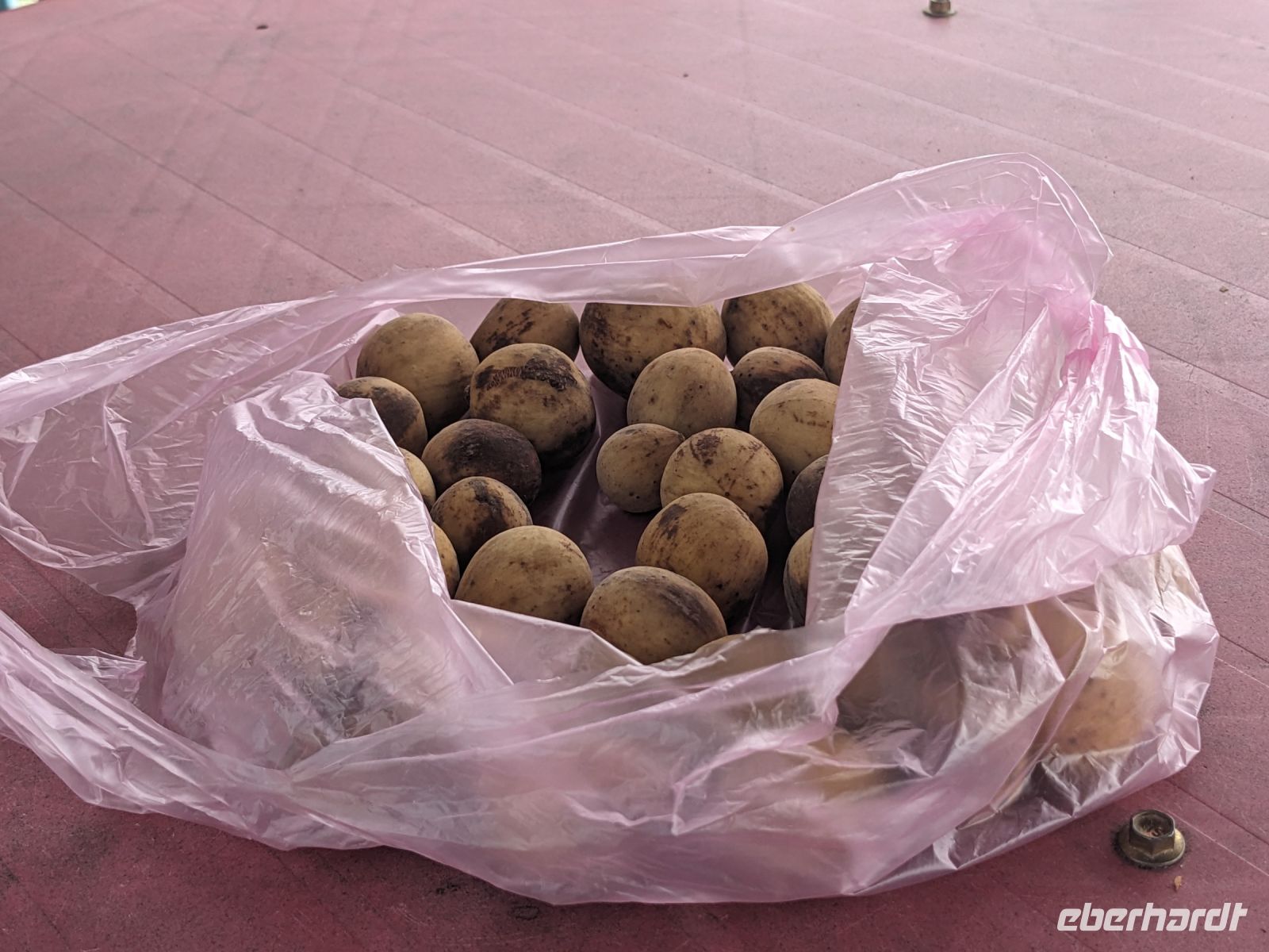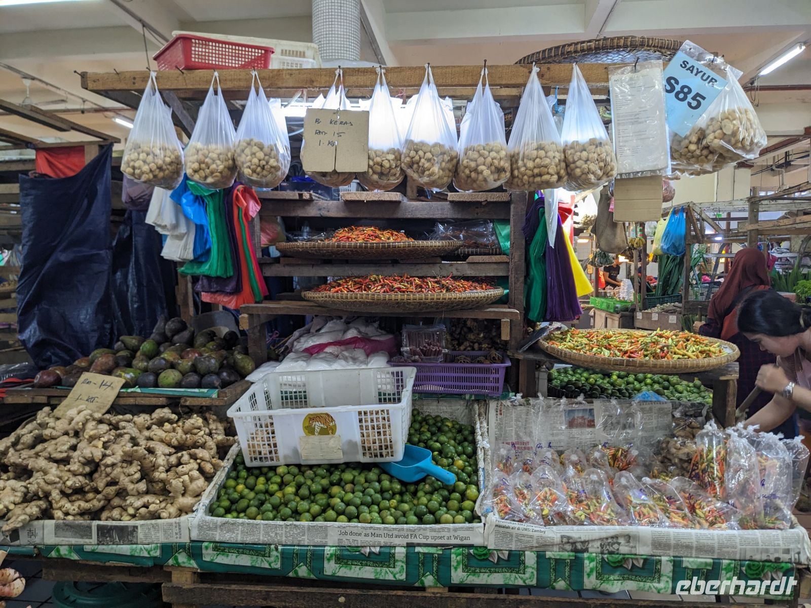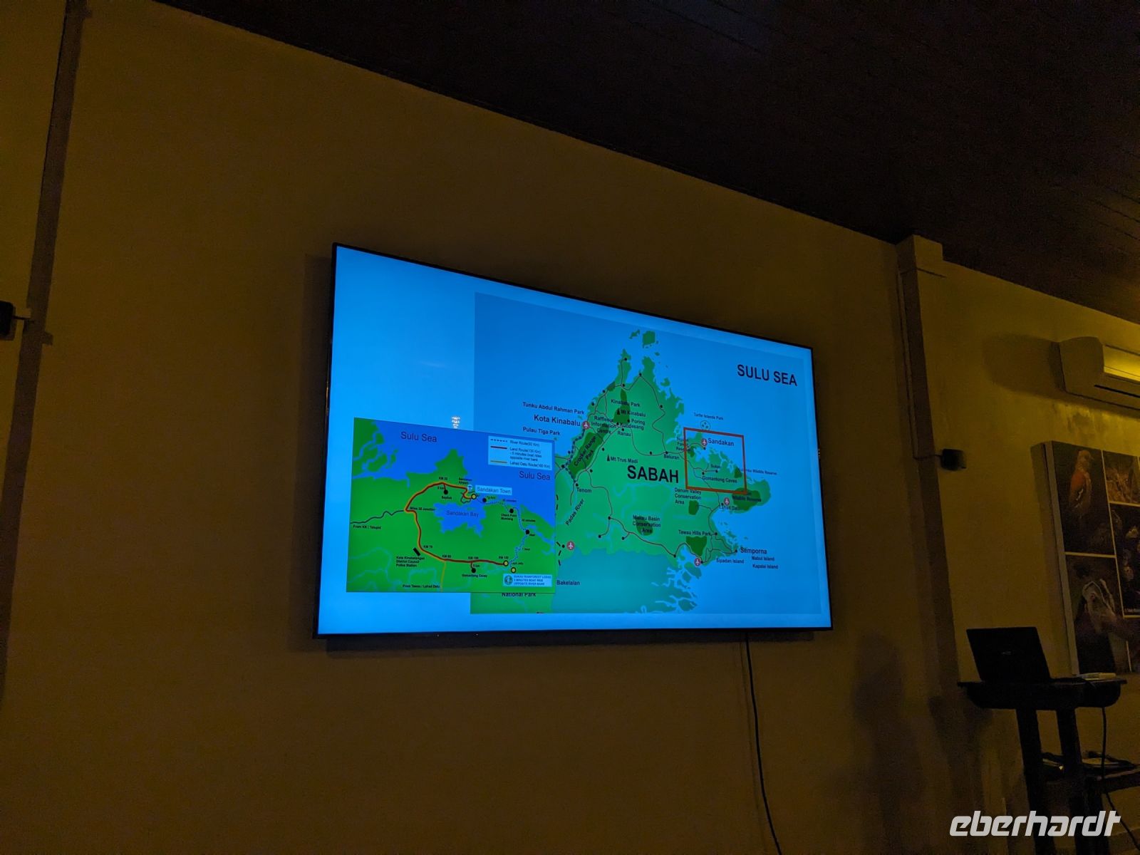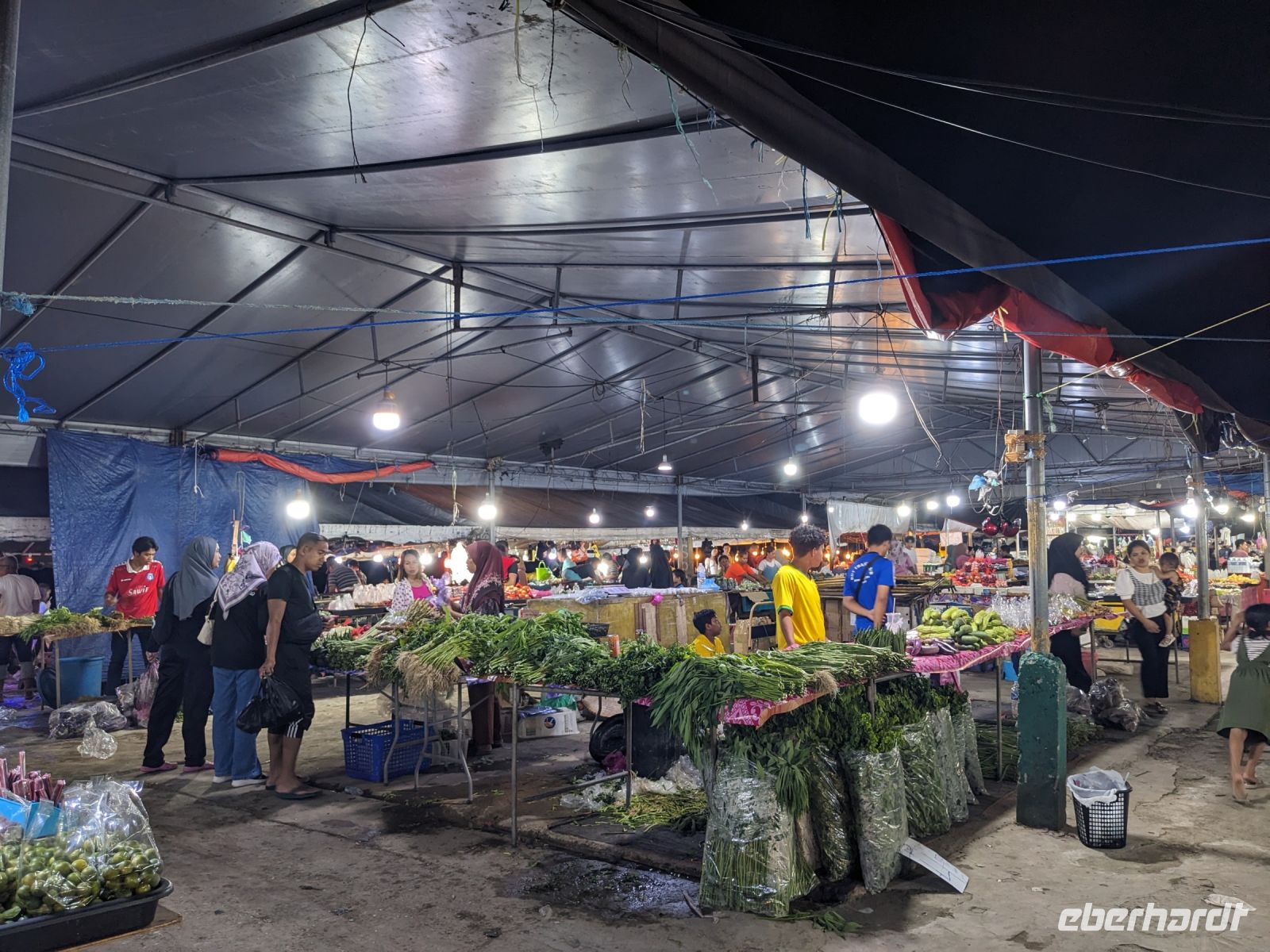 Da wir erst um die Mittagszeit herum abgeholt werden sollten, blieb uns noch der Vormittag zur freien Verfügung. Hier unternahm ich mit einigen aus der Gruppe einen Spaziergang über den Zentralmarkt und wir schauten auch noch bei zwei sehr schönen Souvenirläden vorbei. Am späten Nachmittag erreichten wir dann Sandakan, von wo uns Yunus, unser neuer örtlicher Guide abholte. Der Pool und eine kleine Entspannungspause waren dann doch favorisiert über dem Besuch der Stadt, sodass wir in der Hotelanlage blieben und dort auch bei Vollmond draußen unser gemeinsames Abendessen einnahmen.