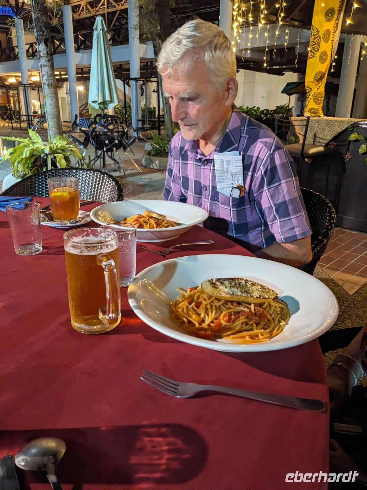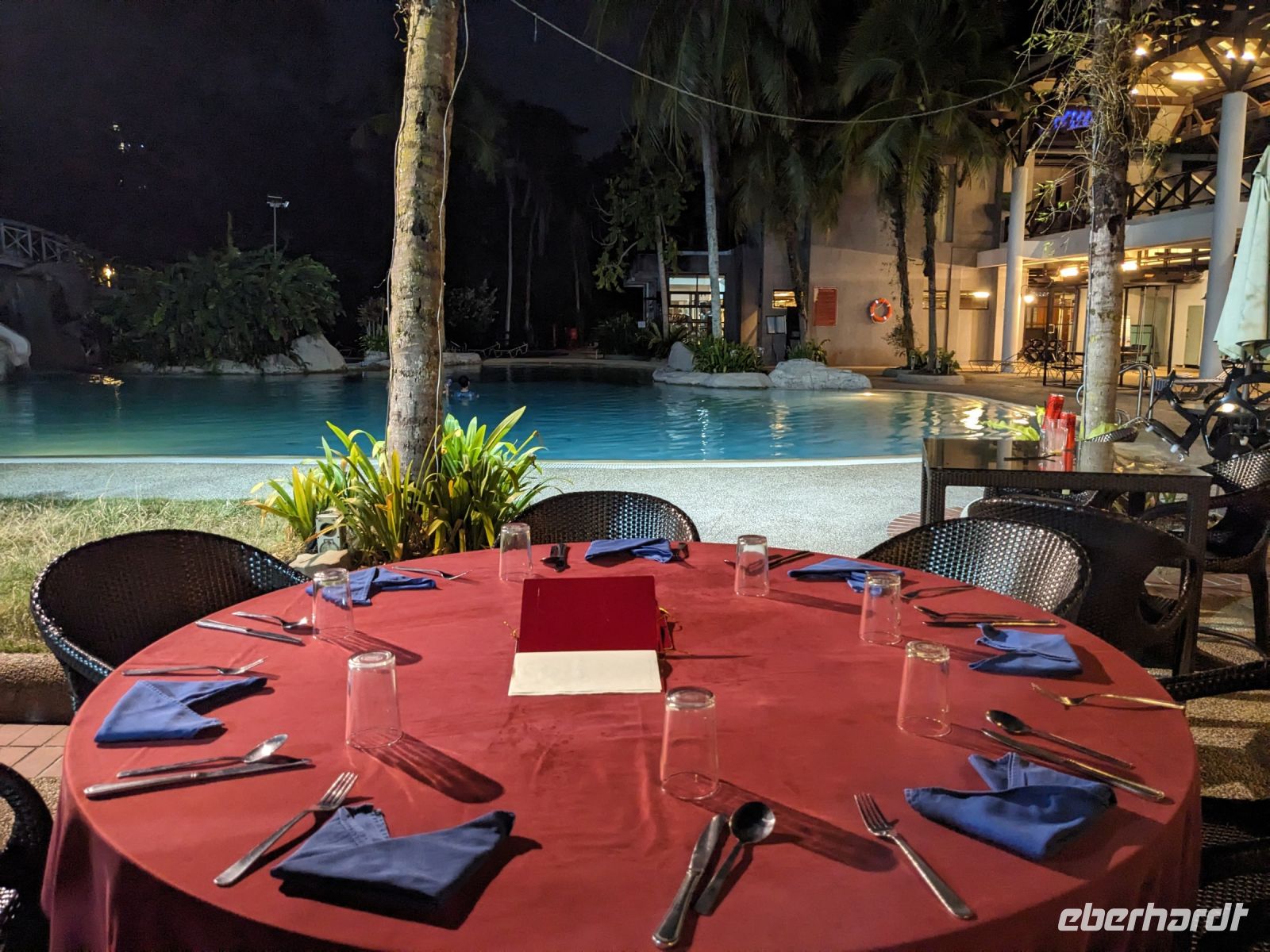 Heute hieß es Abschied nehmen von unserer Rainforest Lodge. Es ging zurück nach Kota Kinabalu. Hier verabschiedeten wir uns auch von Tino – er würde uns für die verbleibenden Erholungstage nicht mehr begleiten. In Kota Kinabalu wurden wir abgeholt und zu unserem Resort gebracht. Dort erwartete uns ein regnerischer Empfang – die nächsten Tage sahen zum Glück vielversprechender aus. Bei einem gemeinsamen Abendessen genossen wir das umfangreiche Buffet.