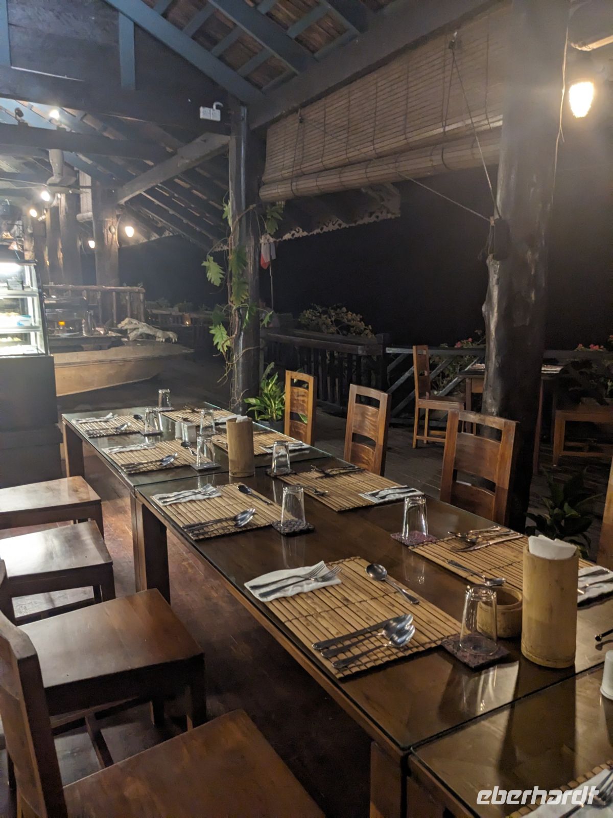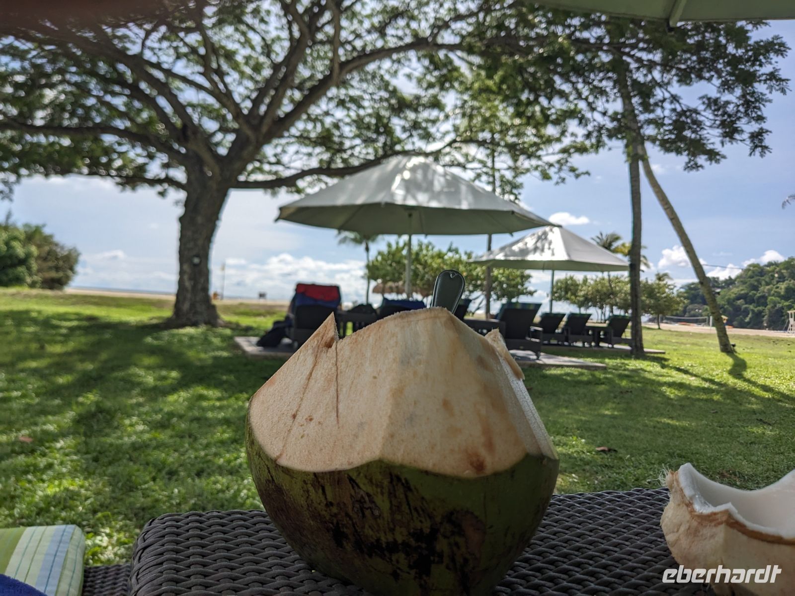 Die zwei Tage im Resort standen uns zur freien Verfügung und jeder konnte tun und lassen, was er wollte. Nur das gemeinsame Abendessen brachte die gesamte Gruppe wieder zusammen. Einige nutzten die Angebote des Reservats mit seinen Aktivitäten, viele erkundeten die Hotelanlage, auf der sich unter anderem eine Nashornvogelfamilie heimisch fühlte, auch Pool und Strandzugang waren sehr beliebt. Es hieß, einfach mal die Seele baumeln zu lassen.