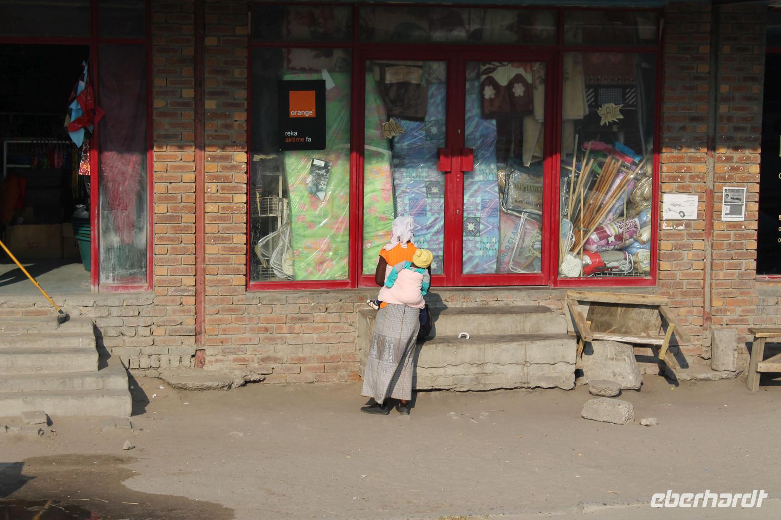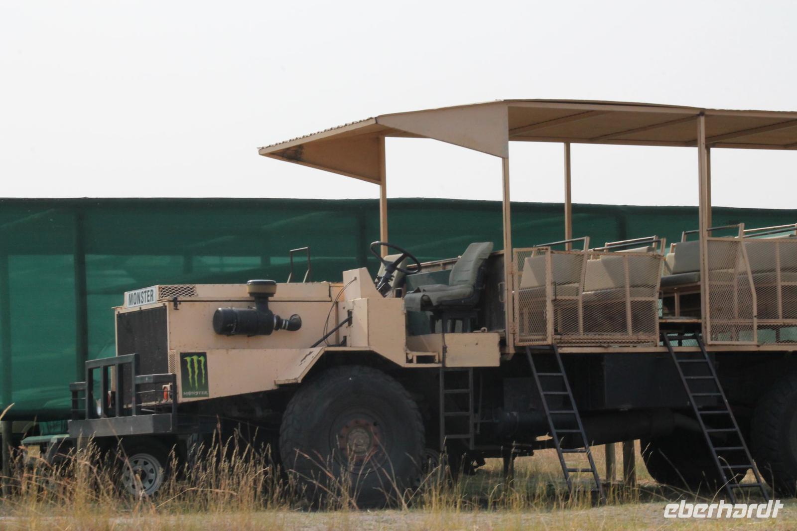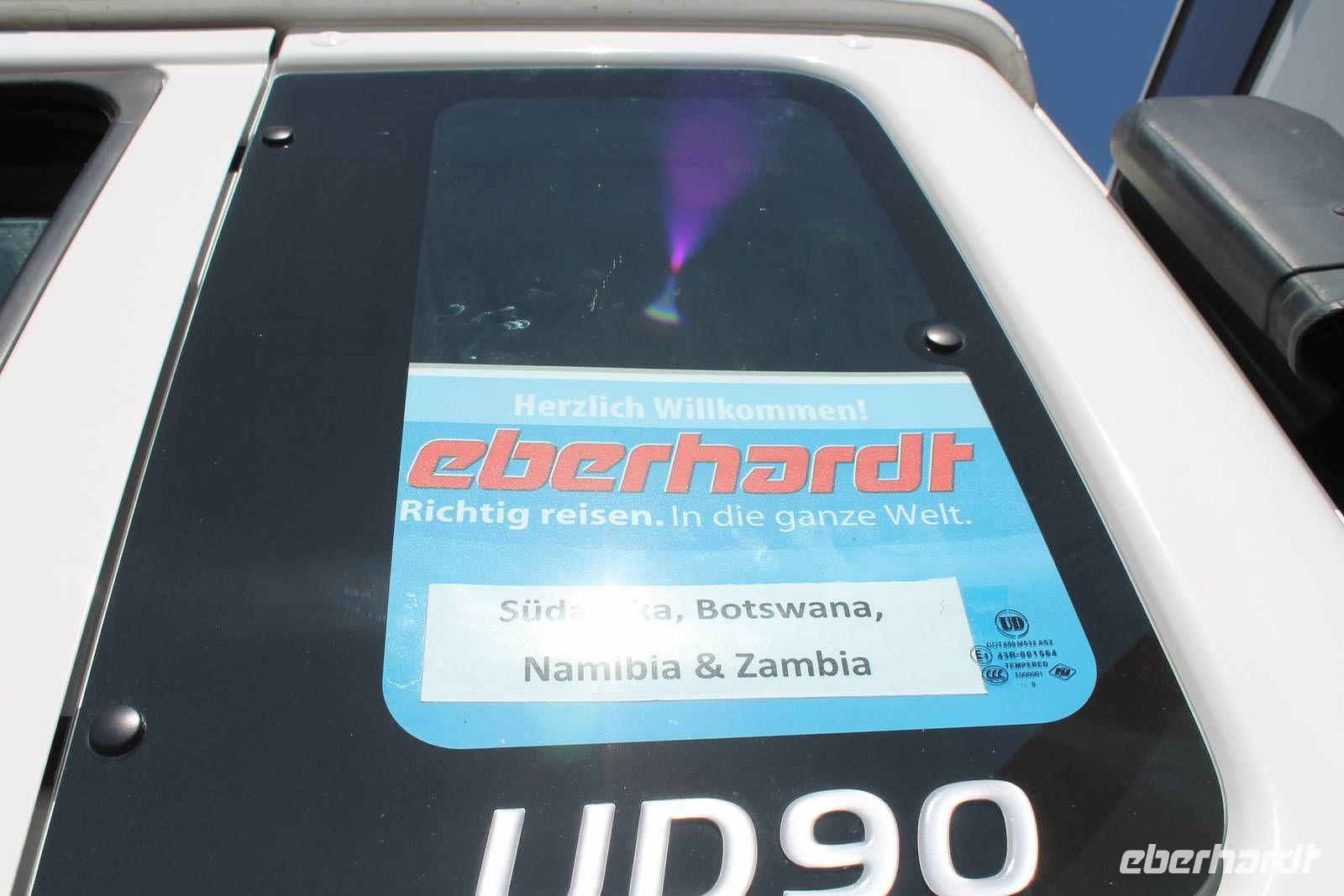 Sofort spüren wir seine Herzlichkeit und fühlen uns gleich gut aufgehoben. Der gute Eindruck wird uns auch während der Reise erhalten bleiben Gemeinsam spazieren wir zu unserem Reisebus, der uns die nächsten 18 Tage begleiten wird und lernen auch unseren umsichtigen Fahrer Chris kennen. Später ist dieser während dieses Berichtes auch als „Pinky" bekannt Wir sind begeistert von solch einem Gefährt, das sogar eine komplette Campingausrüstung für uns bereit hält. So machen wir es uns bequem und fahren zugegeben ein wenig müde zunächst zu einem Supermarkt, denn als Tourist benötigt man ja auch so manche Sachen. So machen wir uns mit Tom gemeinsam auf die Suche nach etwas Essbaren zum Mittag und decken uns mit Wein und Bier für die nächsten zwei Abende ein. Ein bisschen beäugt werden wir natürlich auch von den Afrikanern. Aber das stört uns nicht. Außerdem kauft Tom für uns südafrikanische Adapter, die es in Deutschland nur selten zu kaufen gibt. Dann haben wir erstmalig alles