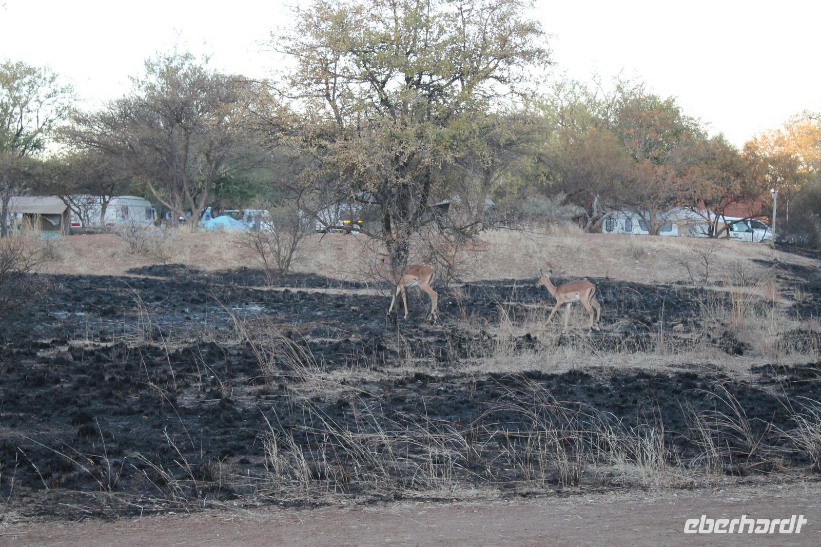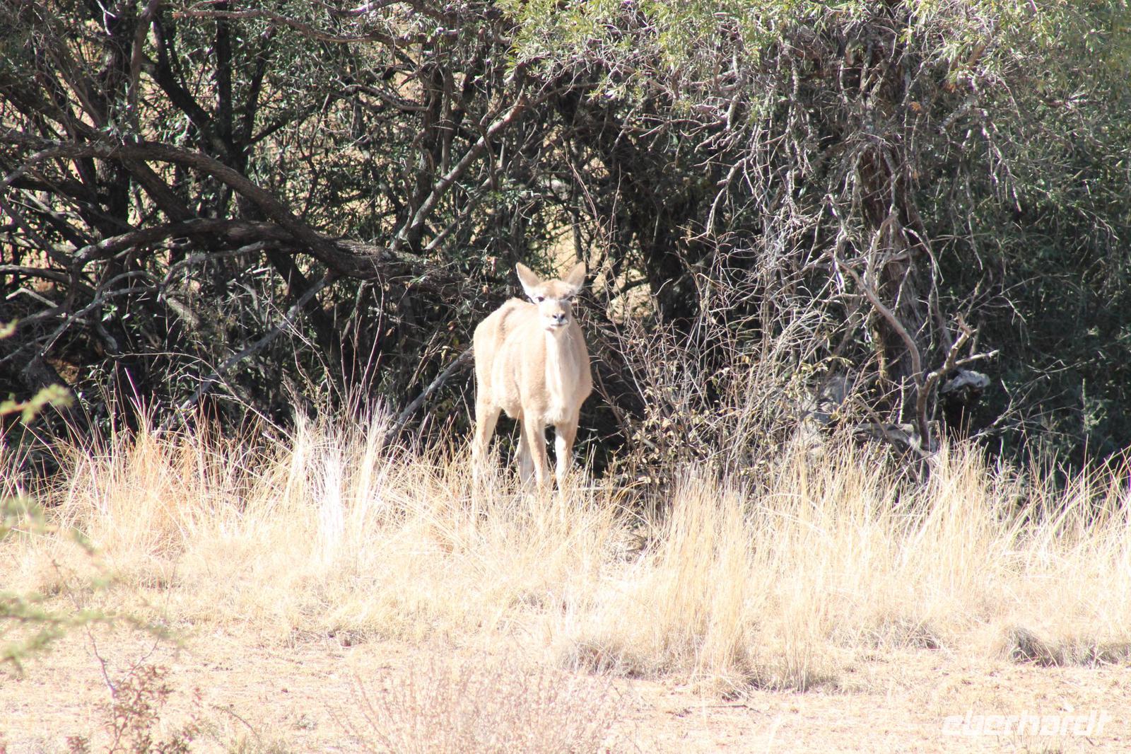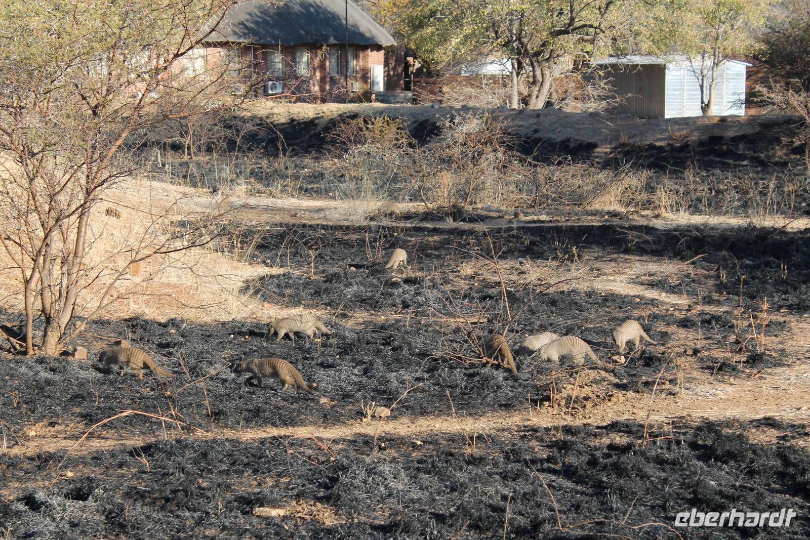 Am Morgen treffen wir uns um 07:00 Uhr in der Früh um zusammen mit Tom eine Pirsch zu Fuß zu unternehmen. Wir beginnen bei strahlendem Sonnenschein einen ausführlichen zweistündigen Spaziergang und sehen dabei unter anderem viele Vögel wie einen Geier und andere Vogelarten. Außerdem einige Impalas und ein Krokodil, welches sich im Limpopo Fluss kurz zeigte. In unserer Lodge zurück angekommen lassen wir uns unser Frühstück mit leckeren Eiern und anderen Köstlichkeiten schmecken. Am Vormittag gönnen wir uns danach eine kurze Pause, bevor uns unsere Jeeps zu einer Safari abholen. Auf unserer ausgiebigen Tour im Limpopo Wildreservat sehen wir unter anderem viele Gnus, Impalas und Kudus. Außerdem führt uns ein kurzer Weg zu Fuß zu zwei Breitmaulnashörnern, die hier zu Hause sind. Wir können die Mutti und Ihr Baby aus nächster Nähe beobachten und fotografieren. Welch ein Glück. Auf dem Rückweg bewundern wir außerdem noch einen Strauß. Den Nachmittag verbringen wir bei dem ein oder anderen Tequila Sunrise in unserer Lodge und lassen die Eindrücke noch einmal Revue passieren. Auch an unserer Lodge gibt es so Einiges zu sehen: z.B. eine Gabelrake und einen Weißkopfadler. Am Abendist ein Barbecue der aller feinsten Sorte für uns angerichtet. Unter freiem Sternenhimmel genießen wir unter anderem Impala Steak frisch vom Grill, Pab mit Tomatensoße, lecker gegrillte Würstchen sowie eine Pilzsuppe mit selbst gebackenem Brot. Natürlich werden wieder einige lustige Gespräche bei einem kühlen Windhoek Bier oder einem Glas Wein geführt. Natürlich immer mit der Angst im Nacken, dass vielleicht in jedem Moment ein Hippo auf uns zuströmen könnte. Dazu kam es aber nicht. So lassen wir den Abend gemütlich am Lagerfeuer ausklingen und horchen gespannt einer weiteren Geschichte von Nelson Mandela, die uns „Mausi" Tom fein vorträgt. Wieder mal ein gelungener Tag im südlichen Afrika.