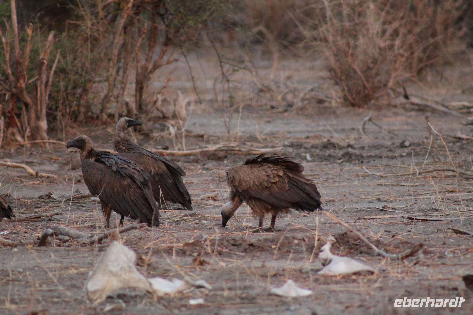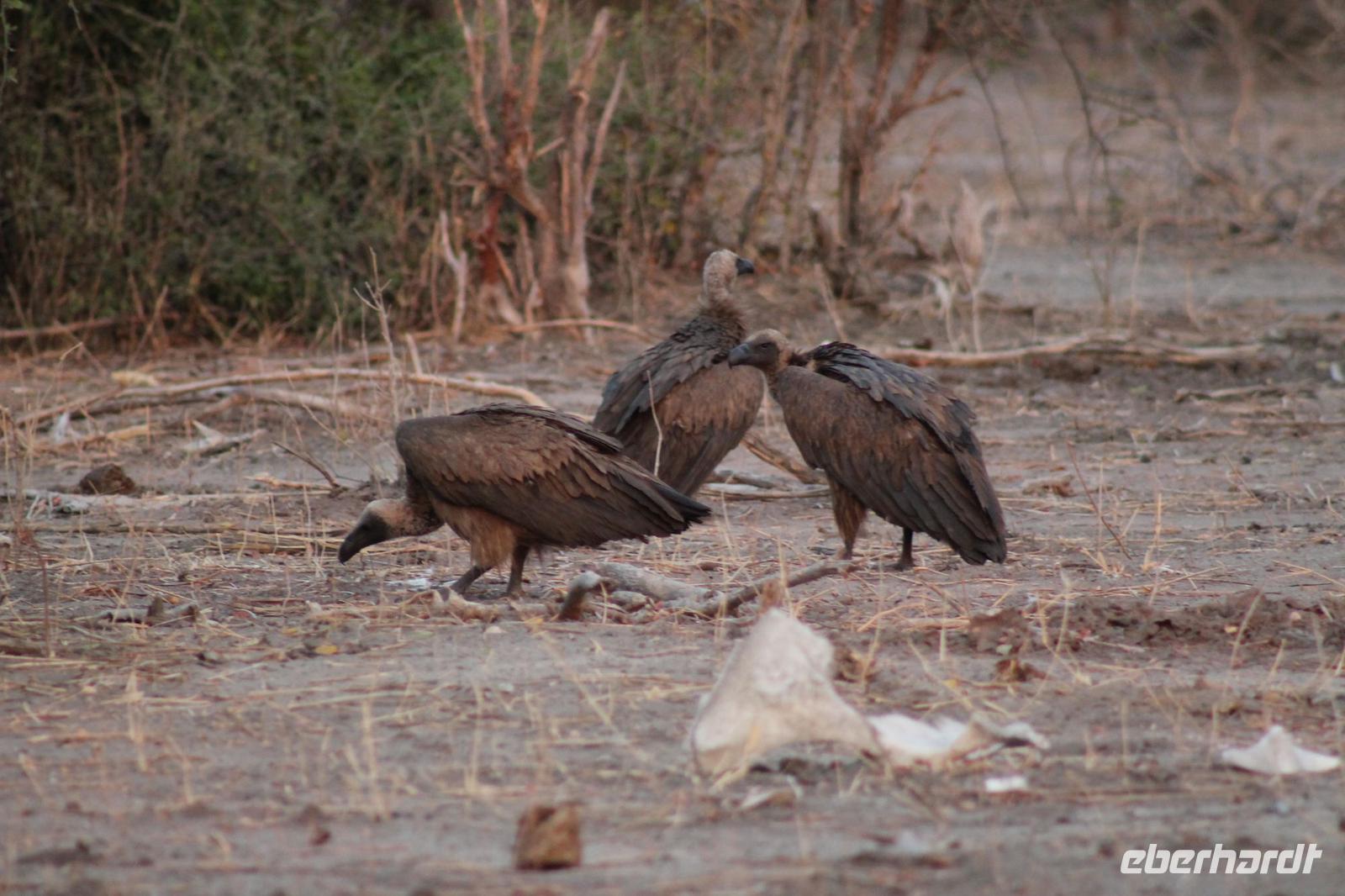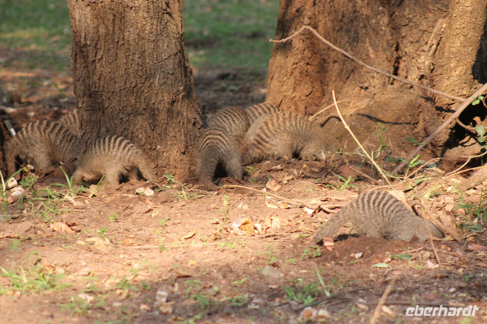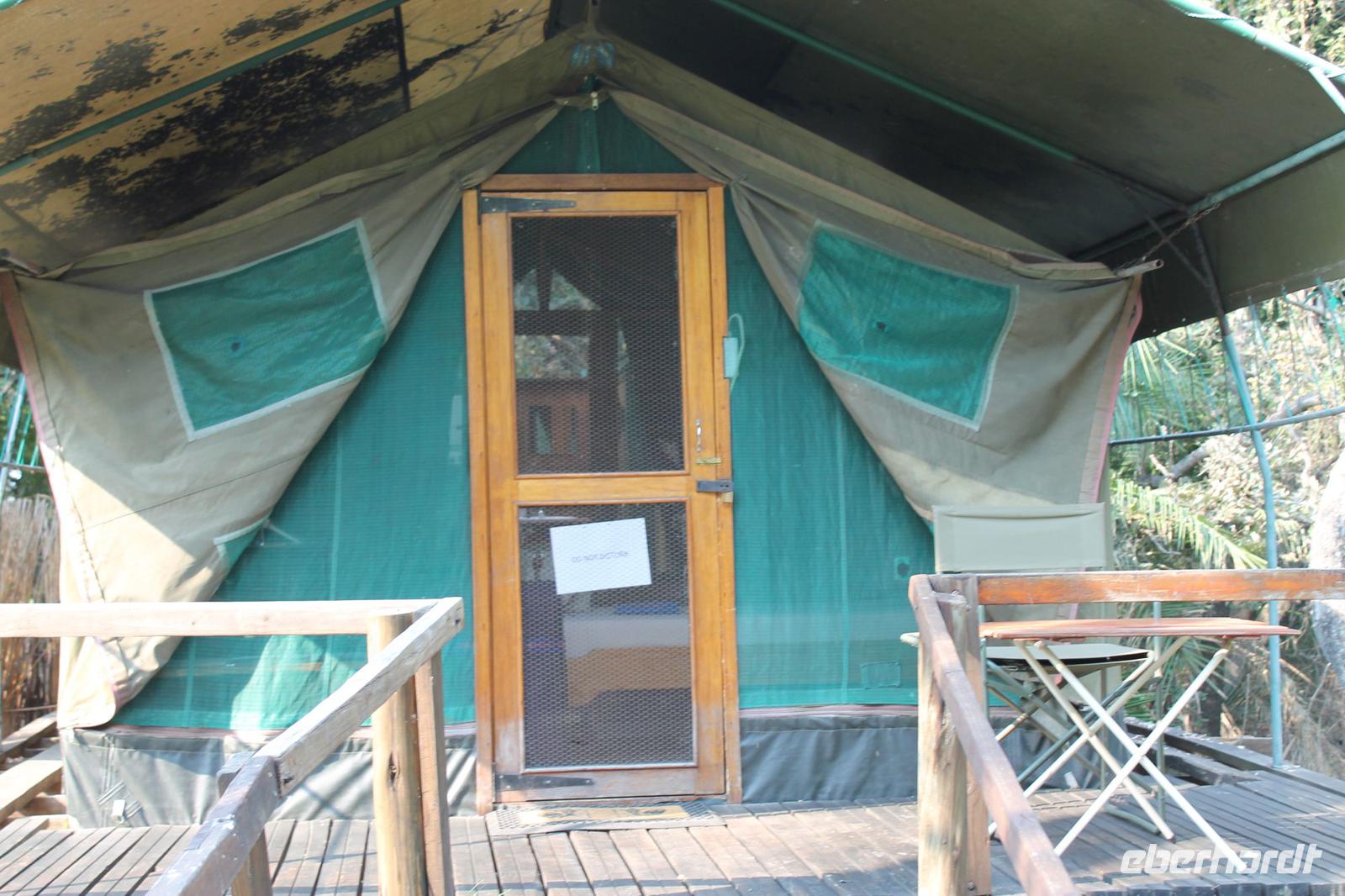 von den Vortagen macht den kulinarischen Genuss perfekt. Alles schnell wieder eingeräumt und dann geht es weiter in Richtung Botswana. An der Grenze angekommen zeigen wir alle unsere Reisepässe vor und erhalten einen Ausreisestempel für Südafrika. Schön war es da. Anschließend spazieren wir gemeinsam mit Tom über die Grenze und über den Limpopo Fluss und erreichen kurze Zeit später das Passbüro. Hier müssen wir unsere Einreisezettel ausfüllen und erhalten einen weiteren Stempel für die Einreise nach Botswana. Chris erwartet uns schon und wir halten noch schnell an einer Wechselstube um einige Euro oder Dollar in Pula zu tauschen und um uns am Bottle Store mit unseren Grundnahrungsmitteln Wein und Bier einzudecken. Von hier aus haben wir noch eine etwa zweistündige Fahrt vor uns die uns über eine Buckelpiste führt, bevor wir an unserer gemütlichen Oasis Zanzibar Lodge im „Tuli Block" ankommen. Unterwegs sehen wir afrikanische Hirsche und nicht ganz lebende Schlangen (Insider Witz). Hier angekommen werden wir herzlich vom Besitzer Jimmy und seiner Crew mit leckerem Orangensaft und einer Rasselbande von Hunden empfangen und beziehen unsere Zimmer. Nach einigen Anfangsschwierigkeiten ziehen wir nochmal um und genießen dann doch die wundervolle Anlage mitten am Limpopo Fluss. Wir erfahren, dass hier aller zwei Nächte eine Hippo Dame einkehrt um zu fressen und so verschließen wir alle gut unsere Türen, besonders Vicky J. Am Abend genießen wir ein geselliges Abendessen in lustiger Runde und freuen uns auf den nächsten Tage, auch wenn einige Reisegäste am rosa Kindertisch Platz