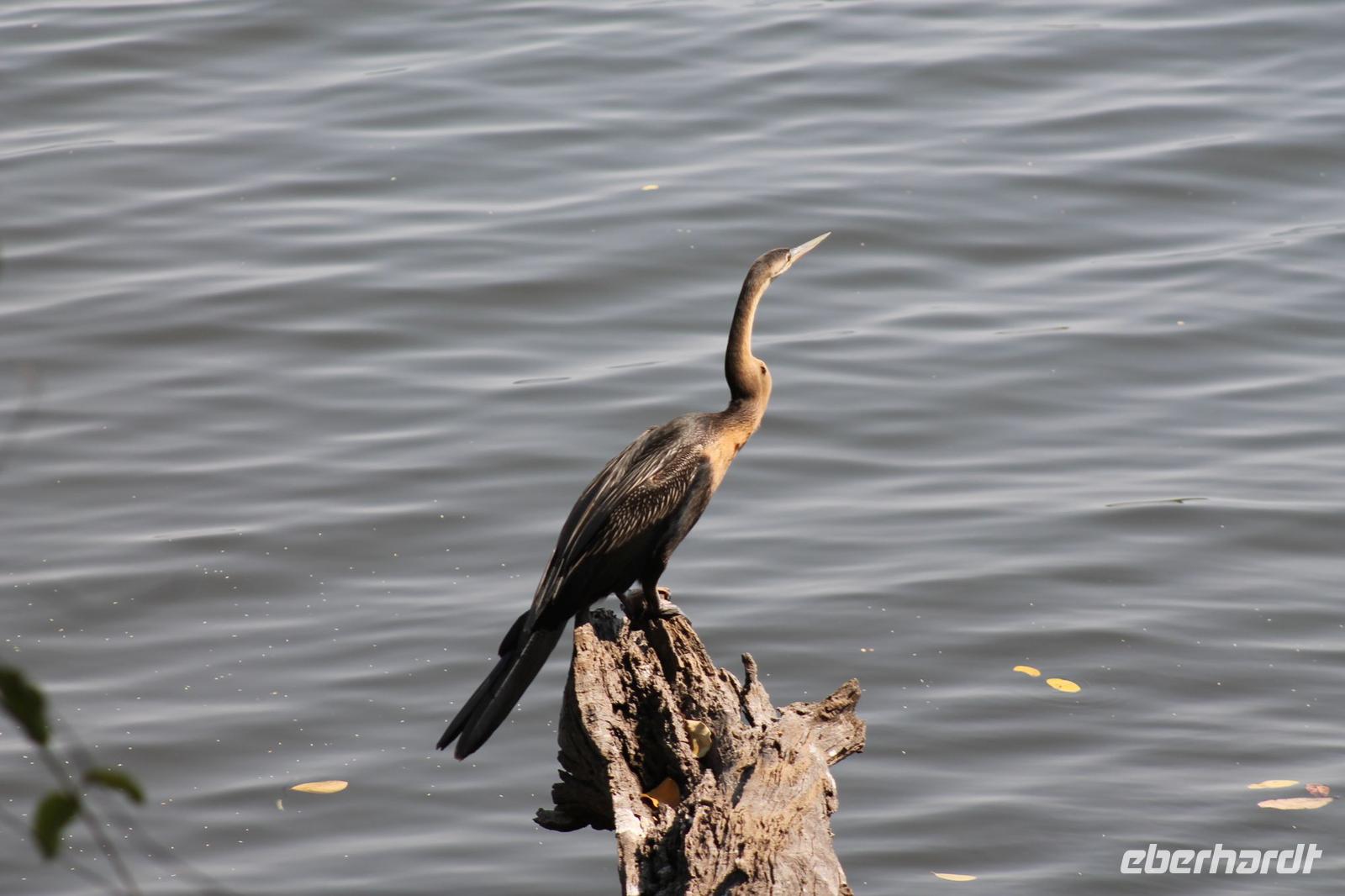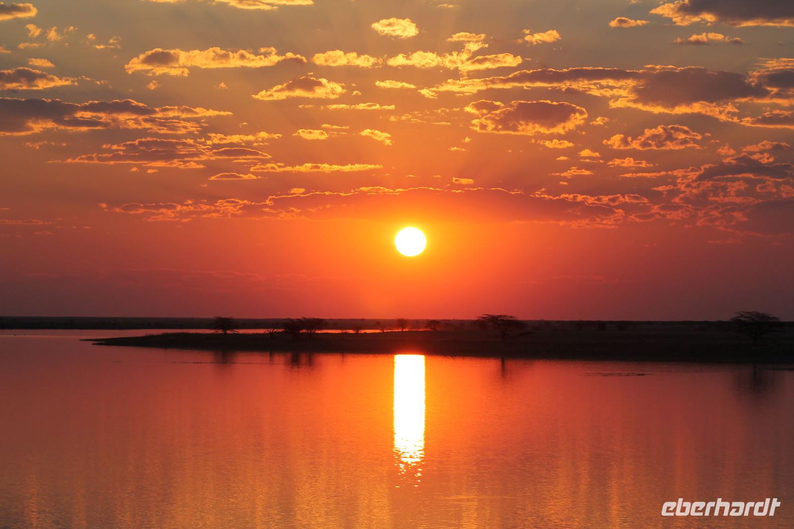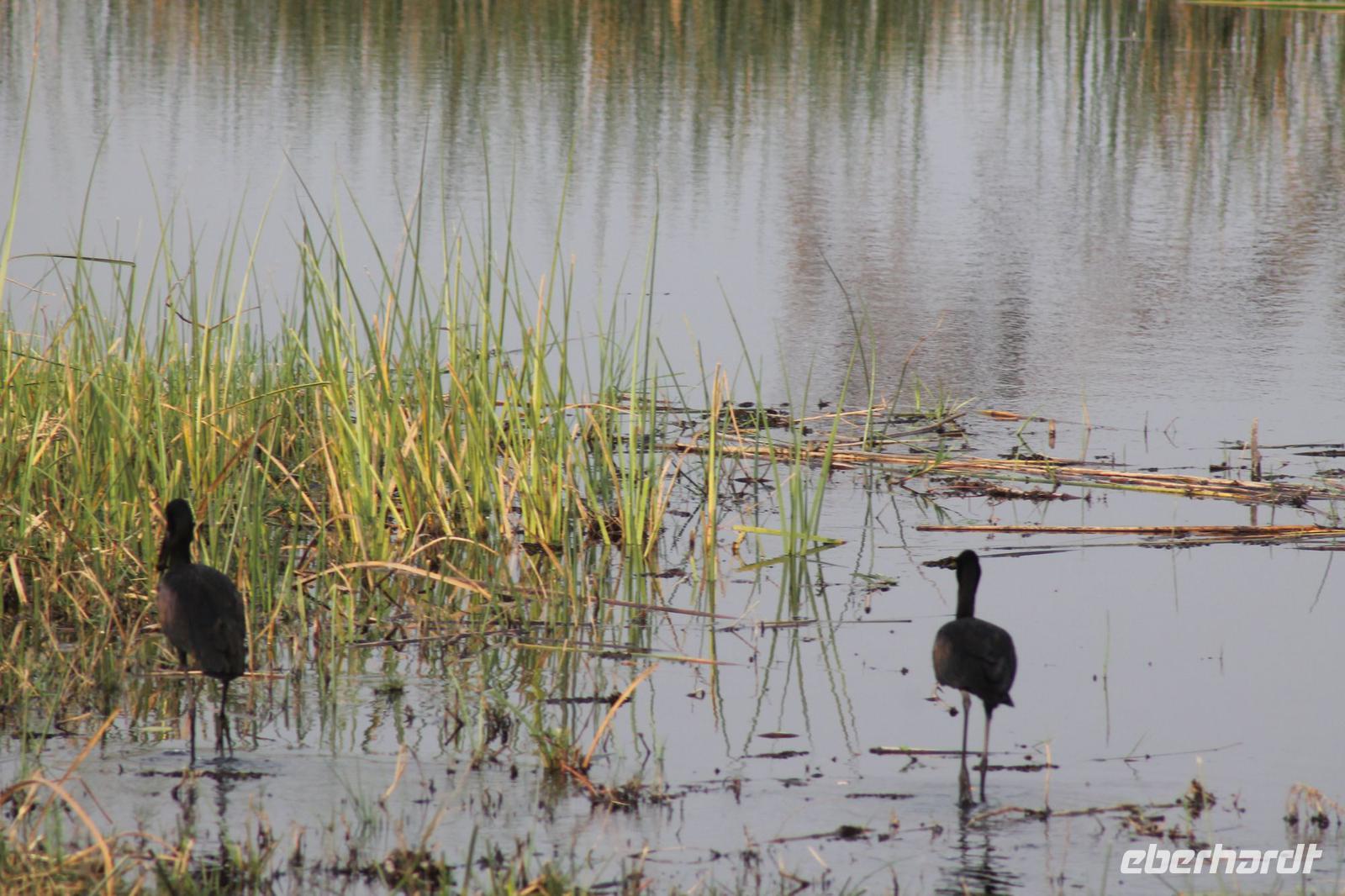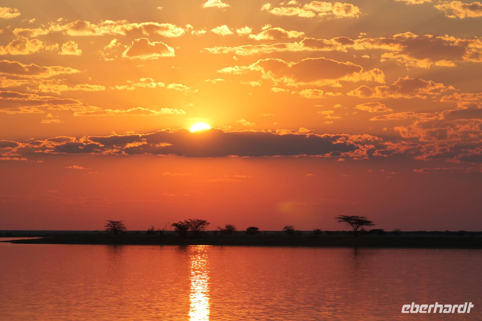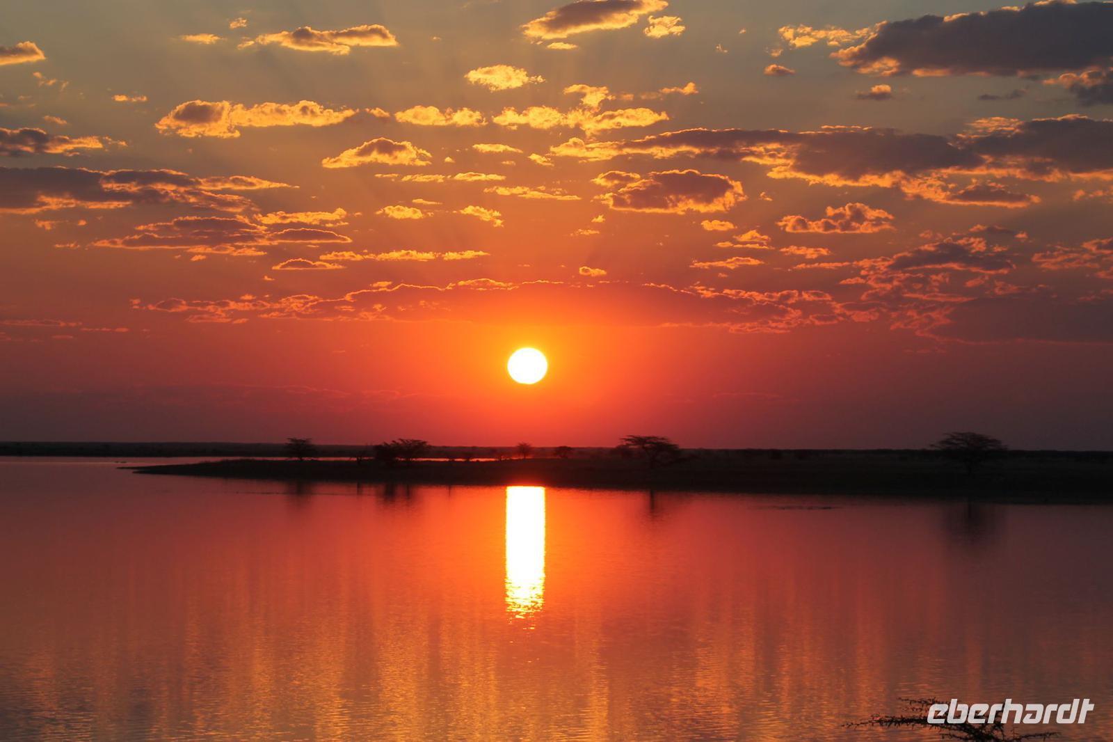 Nach einer kurzen Nacht, zumindest für einige, die aufgrund von manchmal nicht zuordnungsbaren Geräuschen vergeblich die Nachtruhe suchten, genießen wir heute Morgen bei Sonnenschein ein leckeres Frühstück. Anschließend stehen unsere Mokoros mit denen wir heute die Insel erkunden bereits am Bootssteg bereit. Es ist gar nicht so einfach, in diese Einbäume einzusteigen aber es ist auf jeden Fall ein Abenteuer wert. Etwas schunkelnd führen uns unsere Gondeliere jeweils zu zweit sicher durch das Wasser. So sehen wir viele Seerosen und auch einige Vögle wie den Bienenfresser aus nächster Nähe. Der Chef Poler erzählt uns einiges über die Pflanzenwelt und was die Einheimischen damit so alles anstellen. So erfahren wir, dass man aus den Seerosen auch Ketten und Hüte basteln kann und so küren wir die zwei Ältesten unserer Gruppe zur Delta Queen und zum Delta König. Beide können Ihr Glück kaum fassen. Anschließend fahren wir gemütlich weiter durch Papyrus Wälder und Schilflandschaft bis wir zu einer Insel gelangen. Wir unternehmen einen kurzen Spaziergang über die Insel und erfahren wieder viel über Pflanzen, Hinterlassenschaften der Tiere und Spuren. Ein Trinkgeld für diese herzlichen Poler darf natürlich auch nicht fehlen. Anschließend bringen Sie uns sicher zurück zu unserer Lodge und hier lassen wir uns ein Mittagessen schmecken. Den Nachmittag nutzen wir individuell und beobachten Vögel oder spazieren zum Ausschichtspunkt. Pünktlich um 16:00 Uhr werden wir von Nookie im Restaurant mit leckerem Schokoladenkuchen und einer Tasse Kaffee bereits erwartet und müssen feststellen, dass dieser Kuchen einfach wunderbar lecker schmeckt. So ein Drachen ist sie eigentlich auch gar nicht J Anschließend bestellen wir uns einige Getränke für unsere Sunddowner Fahrt am Abend, die wir gleich anschließend mit unserem Motorboot beginnen. So schippern wir gemütlich durch das Delta und sehen viele Vögel wie z.B. den Bienenfresser oder einen Golliathreiher. Außerdem genießen wir die wunderbare idyllische und romantische Landschaft zwischen den Papyruspflanzen. Ganz langsam fahren wir an diesen vorbei und sind erstaunt, als sich auf einem Platz zwischen den Pflanzen vor uns ein riesiges Krokodil in der restlichen Sonne rekelt. Wir können das etwa 3 Meter große Geschöpf aus nächster Nähe beobachten und fahren sogar dicht heran, bis es uns entdeckt und sich seinen Weg in die Tiefe des Wassers sucht. Danach suchen wir uns einen tollen Platz um mitten auf dem Delta einen wunderbaren Sonnenuntergang zu genießen. Wir schaffen es sogar 10 Sekunden kurz still zu sein und inne zu halten. Dem einen fällt das weniger, dem anderen mehr schwer. Wir genießen dabei ein leckeres Bier oder einen Gin Tonic und fahren dann zurück zu unserer Lodge, wo bereits die Dunkelheit wieder Einzug gehalten hat. Nachdem wir uns kurz frisch gemacht haben treffen wir uns wieder zum Abendessen, welches wieder köstlich schmeckt. Wieder lassen wir den Abend wie gewohnt an der Bar ausklingen und lauschen wieder einem tollen Märchen aus „Toms Sammlung" der Nelson Mandela Märchen. Ein gelungener Abschluss für einen wiedermal tollen ereignisreichen Tag. Dieser wird noch von zwei tollen Gesängen des „Harald and the Botswana Sisters" gekürt. (Insider Witz)