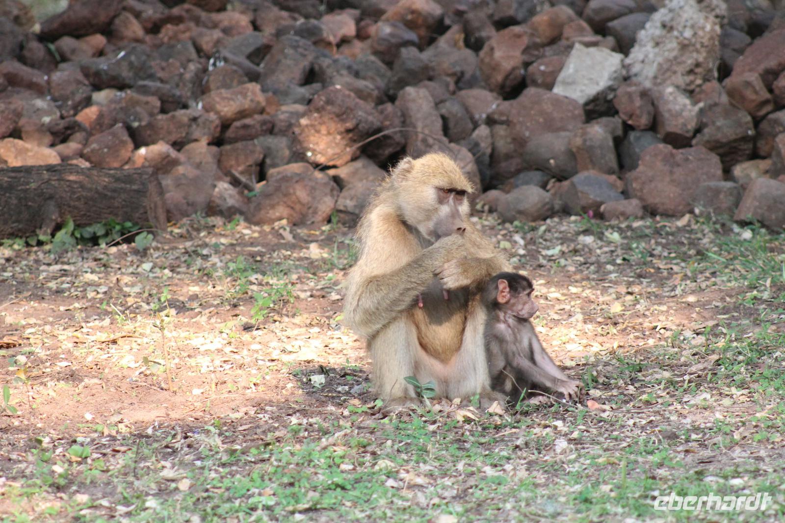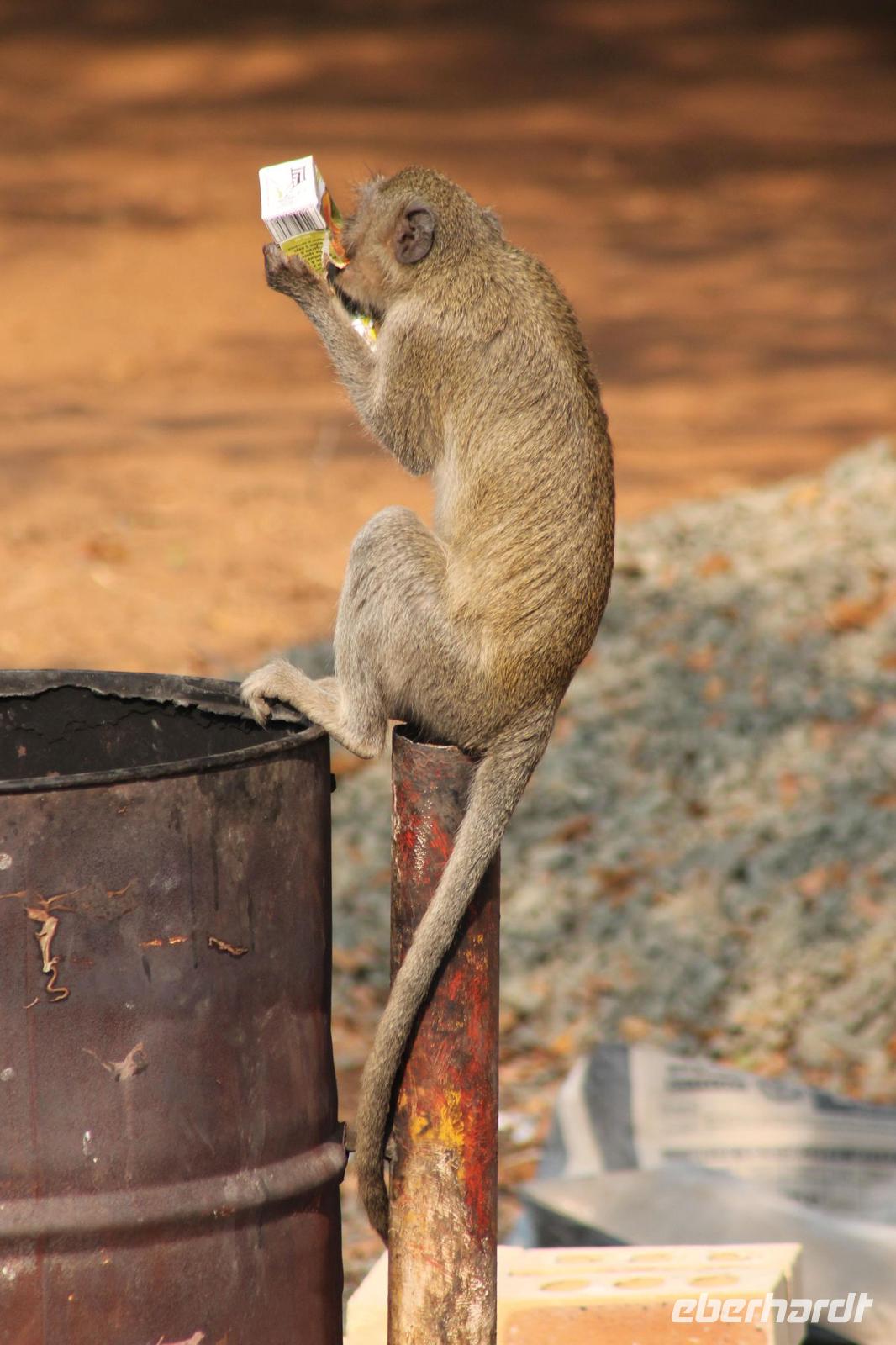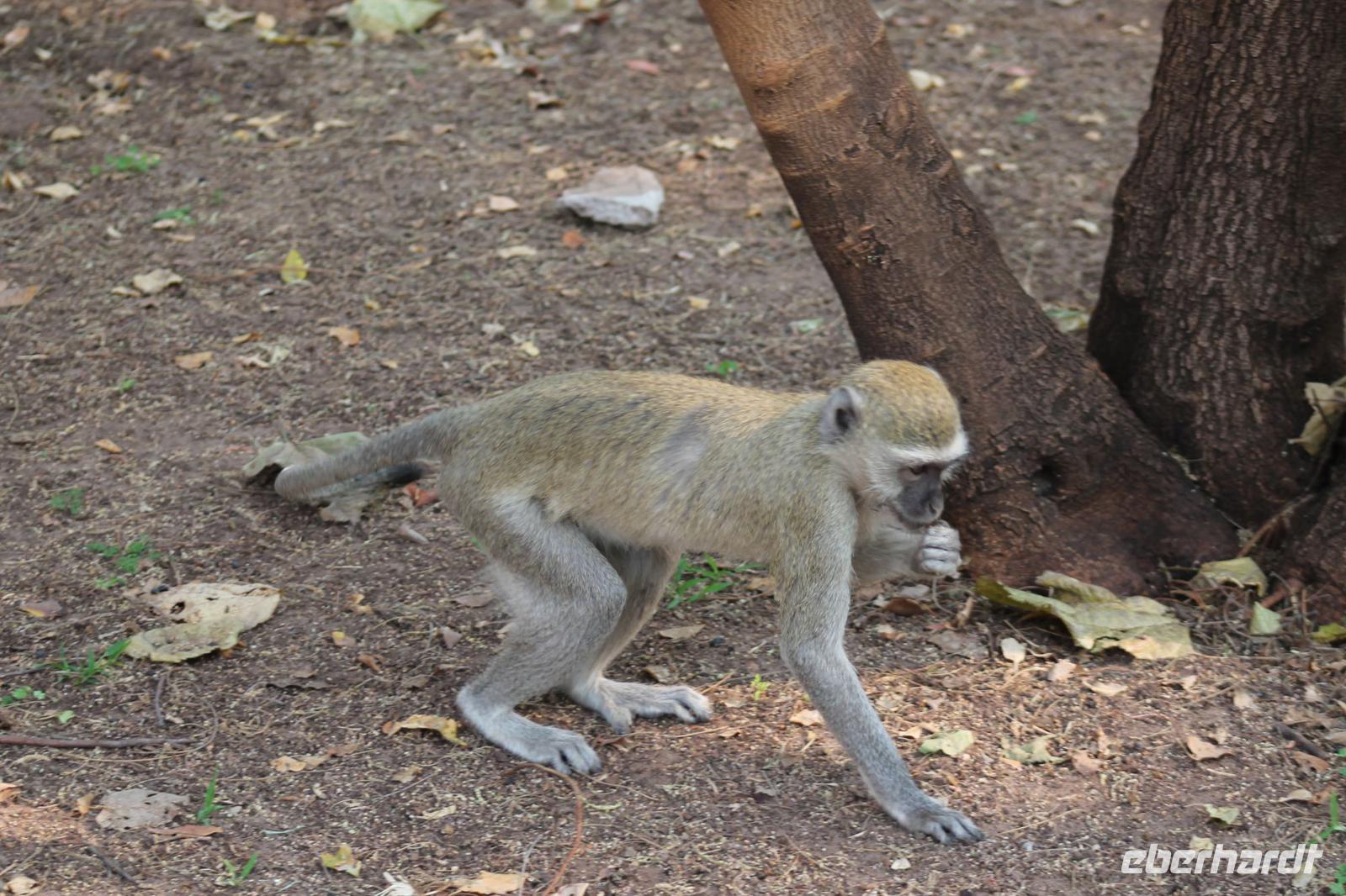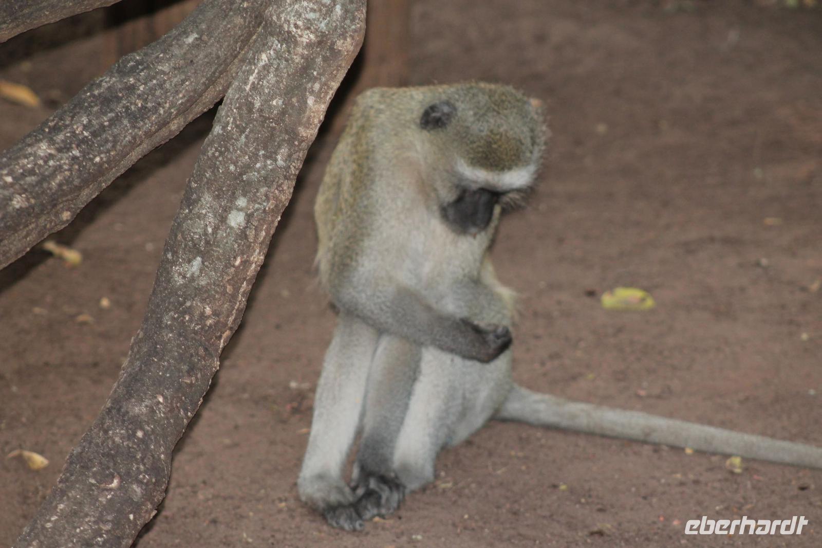 Am heutigen Morgen verlassen wir wieder Namibia und reisen zurück nach Botswana. Nach einem schmackhaften Frühstück und wieder einmal ausgefüllten Ausreiseformularen und bezahlten Rechnungen, fahren wir heute in Richtung Kasane. Auf unserem Weg sehen wir einige Hornraben, die hier sehr selten sind sowie Elefanten und einige Impalas. Außerdem halten wir kurz, um einige Kinder mit Schulheften und Stiften zu versorgen. Für diese Kinder ist der heutige Tag wie Weihnachten und wir können das Strahlen in Ihren Augen sehen. Nach einer längeren Fahrtstrecke erreichen wir letztendlich die Grenze Namibias. Hier zeigen wir unsere Pässe vor und geben unsere Formulare ab und erhalten wieder einen Stempel in unseren Pass. Anschließend erreichen wir das Niemandsland und genießen hier am Straßenrand unser leider letztes Picknick mit Pinky und Tom der Reise. So essen wir alle Reste auf und freuen uns, dass Tom für uns echtes deutsches Brot besorgt hat. Zumindest schmeckt es so. An diesem Platz können wir in der Weite auch Zebras und Elefanten beobachten. Mittlerweile hat die Sonne schon wieder eine Stärke von etwa 37 Grad. Der Wein schmeckt natürlich trotzdem noch. Alle nicht verwendeten Lebensmittel geben wir den Kindern am Straßenrand, die sich über diese Mahlzeit freuen. Mit unseren sieben Sachen fahren wir dann weiter zur botswanischen Grenze. Hier müssen wir durch eine Veterinärschleuse und unser zweites Paar Schuhe vorzeigen. Unser Bus wird ebenfalls kontrolliert aber wir sind „sauber". An der Grenze müssen wir Gott sei Dank nicht noch ein weiteres Formular ausfüllen und so reisen wir wieder ein nach Botswana. Kurze Zeit später sind wir bereits im Chobe-Nationalpark. Noch etwa 100 Kilometer sind wir hier von unserer Lodge in Kasane entfernt und spüren so die unheimliche Größe und Weite des Parks. Wir sehen einige Elefanten, denn nicht umsonst wird der Park auch als das „Land der Giganten" bezeichnet. Am Nachmittag erreichen wir unser wunderschön am Chobe Fluss gelegene luxuriöse Chobe Safari Lodge mitten im Park. Hier angekommen werden wir bereits herzlich von Meerkatzen, Pavianen, Zebramangusten und Warzenschweinen empfangen, die sich hier direkt in der Anlage tummeln und bereits unsere schönen Flusschalets belagern J Jeder von uns hat ein eigenes tolles Rundhäuschen mit einer hübschen Terrasse. Auch eine sehr gelungene Unterkunft. Den restlichen Nachmittag entspannen wir bei einem Kaffee in unseren Häuschen oder fotografieren das Getümmel der Affen am Fluss und im Garten. Wir genießen einfach die Zeit und hoffen insgeheim das diese nie zu Ende geht. Es wurde allerdings nicht beachtet, dass Vicky wieder das Chalet neben dem Fluss hat, wo sich nachts Hippos und Krokodile tummeln. Aber auch diese Nacht hat sie wieder überlebt J Am Abend genießen wir in gemütlicher Runde ein tolles abwechslungsreiches und riesiges Buffet in einer tollen Atmosphäre und gehen heute Abend früh zu Bett, da wir am nächsten Morgen eine zeitige ausgiebige Pirsch unternehmen.