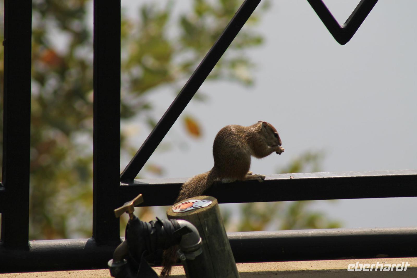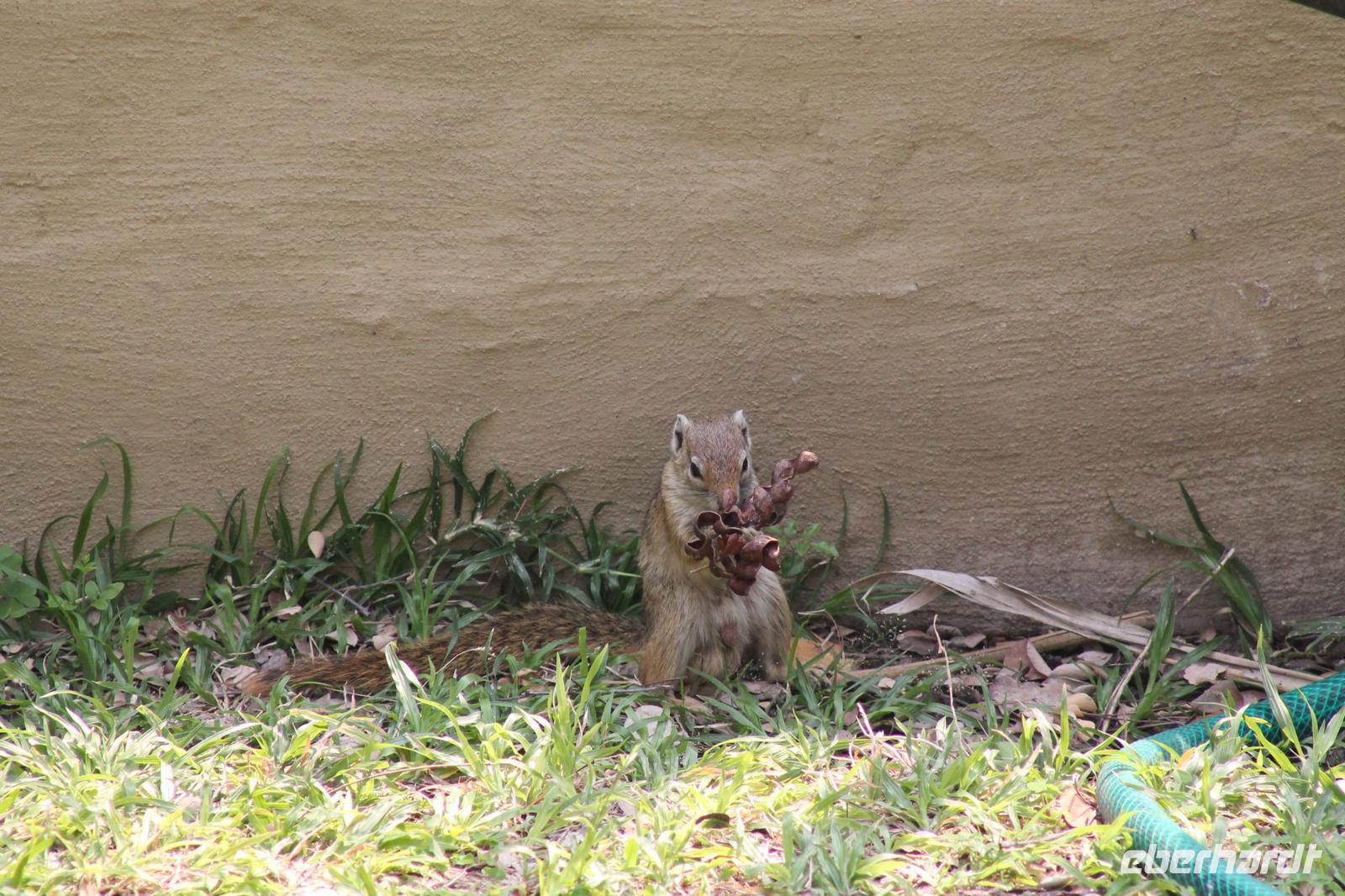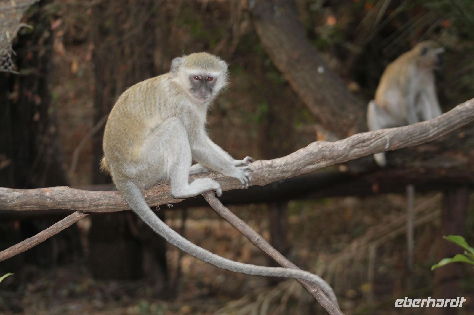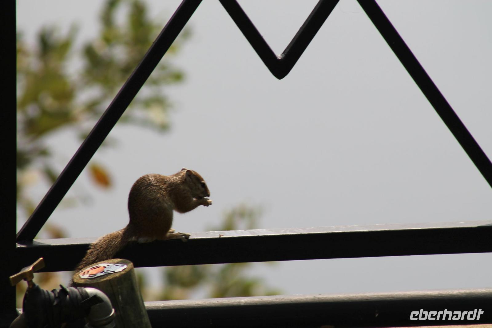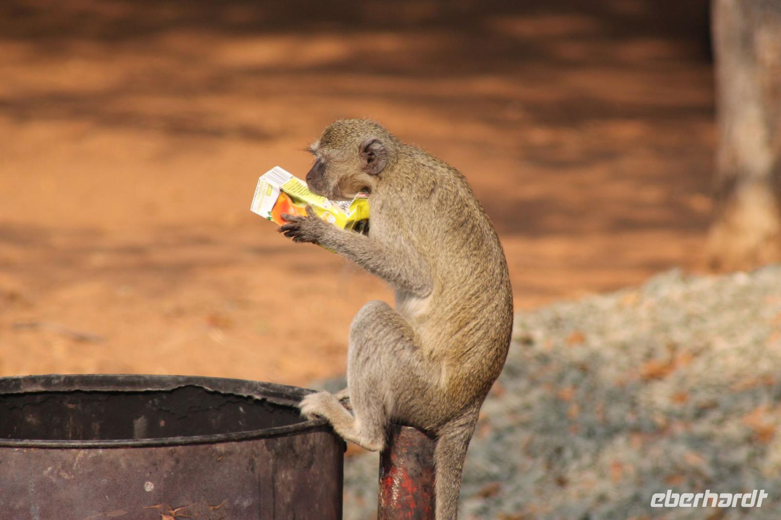 Am heutigen Morgen verlassen wir wieder Namibia und reisen zurück nach Botswana. Nach einem schmackhaften Frühstück und wieder einmal ausgefüllten Ausreiseformularen und bezahlten Rechnungen, fahren wir heute in Richtung Kasane. Auf unserem Weg sehen wir einige Hornraben, die hier sehr selten sind sowie Elefanten und einige Impalas. Außerdem halten wir kurz, um einige Kinder mit Schulheften und Stiften zu versorgen. Für diese Kinder ist der heutige Tag wie Weihnachten und wir können das Strahlen in Ihren Augen sehen. Nach einer längeren Fahrtstrecke erreichen wir letztendlich die Grenze Namibias. Hier zeigen wir unsere Pässe vor und geben unsere Formulare ab und erhalten wieder einen Stempel in unseren Pass. Anschließend erreichen wir das Niemandsland und genießen hier am Straßenrand unser leider letztes Picknick mit Pinky und Tom der Reise. So essen wir alle Reste auf und freuen uns, dass Tom für uns echtes deutsches Brot besorgt hat. Zumindest schmeckt es so. An diesem Platz können wir in der Weite auch Zebras und Elefanten beobachten. Mittlerweile hat die Sonne schon wieder eine Stärke von etwa 37 Grad. Der Wein schmeckt natürlich trotzdem noch. Alle nicht verwendeten Lebensmittel geben wir den Kindern am Straßenrand, die sich über diese Mahlzeit freuen. Mit unseren sieben Sachen fahren wir dann weiter zur botswanischen Grenze. Hier müssen wir durch eine Veterinärschleuse und unser zweites Paar Schuhe vorzeigen. Unser Bus wird ebenfalls kontrolliert aber wir sind „sauber". An der Grenze müssen wir Gott sei Dank nicht noch ein weiteres Formular ausfüllen und so reisen wir wieder ein nach Botswana. Kurze Zeit später sind wir bereits im Chobe-Nationalpark. Noch etwa 100 Kilometer sind wir hier von unserer Lodge in Kasane entfernt und spüren so die unheimliche Größe und Weite des Parks. Wir sehen einige Elefanten, denn nicht umsonst wird der Park auch als das „Land der Giganten" bezeichnet. Am Nachmittag erreichen wir unser wunderschön am Chobe Fluss gelegene luxuriöse Chobe Safari Lodge mitten im Park. Hier angekommen werden wir bereits herzlich von Meerkatzen, Pavianen, Zebramangusten und Warzenschweinen empfangen, die sich hier direkt in der Anlage tummeln und bereits unsere schönen Flusschalets belagern J Jeder von uns hat ein eigenes tolles Rundhäuschen mit einer hübschen Terrasse. Auch eine sehr gelungene Unterkunft. Den restlichen Nachmittag entspannen wir bei einem Kaffee in unseren Häuschen oder fotografieren das Getümmel der Affen am Fluss und im Garten. Wir genießen einfach die Zeit und hoffen insgeheim das diese nie zu Ende geht. Es wurde allerdings nicht beachtet, dass Vicky wieder das Chalet neben dem Fluss hat, wo sich nachts Hippos und Krokodile tummeln. Aber auch diese Nacht hat sie wieder überlebt J Am Abend genießen wir in gemütlicher Runde ein tolles abwechslungsreiches und riesiges Buffet in einer tollen Atmosphäre und gehen heute Abend früh zu Bett, da wir am nächsten Morgen eine zeitige ausgiebige Pirsch unternehmen.