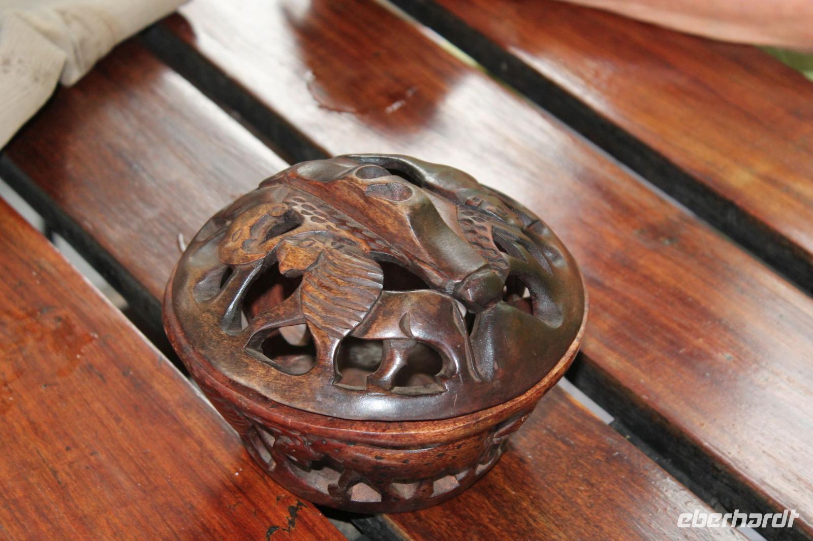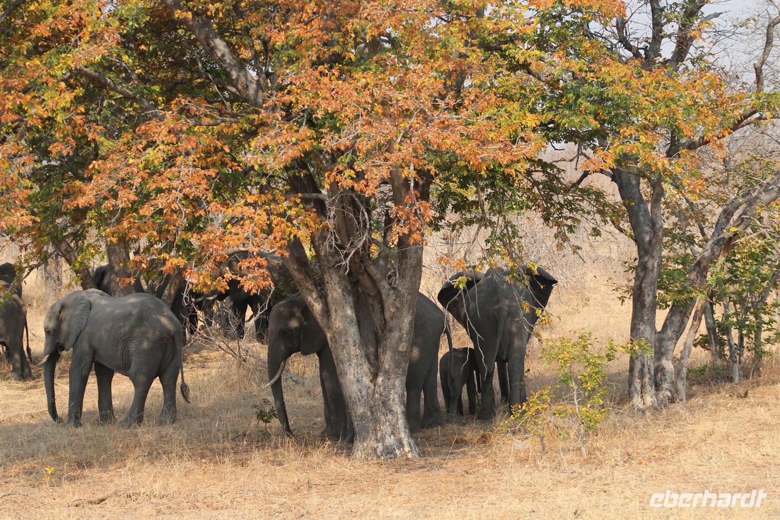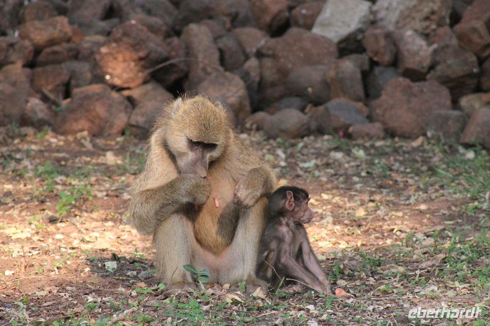 Heute Morgen genießen wir ein wunderbares Frühstück mit sogar leckeren Brötchen, Käse und Salami am Fluss und unternehmen anschließend zusammen mit Tom einen Walk entlang des Flussufers. Gute Schuhe sind in jedem Fall ratsam, denn wir laufen über Stock und Stein und müssen einige Baumstämme und hängende Lianen hinter uns lassen. Tom zeigt uns die verschiedenen Flusspferd - und Elefantenstraßen und erklärt uns viel über Flora und Fauna. Unterwegs sehen wir riesige Elephantenabdrücke und erfahren, dass Sie erst vor Kurzem hier gewesen sein müssen. Außerdem sehen wir an einigen Ästen die Hinterlassenschaften der Hippos, die diese hin und her wedeln um Ihr Revier zu markieren. Gemeinsam spazieren wir unter der afrikanischen Sonne zu einem Kulturdorf, das allerdings noch nicht komplett fertiggestellt ist. Das ist aber nicht schlimm, denn am Mittag werden wir noch ein echtes afrikanisches Dorf besuchen. Fasziniert sind wir aber in jedem Fall von dem riesigen Baobab, der sich in der Mitte des Dorfes majestätisch ins rechte Licht rückt. Um einen Größenvergleich anstellen zu können, fotografieren wir Tom unter dem Baum und können seine Mächtigkeit so noch mehr spüren. Wir erfahren wie so ein Kulturdorf funktioniert uns schauen in die ein oder andere Hütte hinein. Anschließend spazieren wir gemütlich zurück zu unserer Lodge. Den Vormittag nutzen wir alle individuell und sehen an unserer Lodge so manches Eichhörnchen und seltene Vogelarten wie den Pirol und einige Webervögel. Nach dieser Reise sind wir alle ziemlich gut im „Vögeln" J Gut das unser Ornitologe uns auch immer umfassend über dieses Thema informiert J Viele von uns entspannen sich auf der hauseigenen Terrasse und genießen auch das ein oder andere „Plätzchen" und einen Kaffee. Am Mittag brechen wir auf um uns ein echtes afrikanisches Dorf zu besuchen. Tom hat uns bereits am Vortag bei Sharon, der Besitzerin dieses Dorfes angemeldet, und so sind wir heute hier herzlich willkommen. Natürlich kommen wir nicht ohne etwas von uns zu geben. So zeigt Sie uns die Räumlichkeiten in der Sie und ihre ganze Familie d.h. Tanten, Onkel, Cousins und Cousinen sowie Schwestern und Brüder leben. Außerdem sehen wir, wie hier Mais zu Pab verarbeitet wird und wie Sie im Fluss Wäsche und auch sich selbst waschen. Ein wirkliches beschwerliches Leben aber Sharon ist froh, sich in unserer Lodge etwas dazu verdienen zu können und so erfahren wir, dass es ihr und ihren Kindern trotz für uns kaum vorstellbarer Lebensbedingungen doch den Umständen entsprechend gut geht. Wir lassen ihr etwas Öl, Zucker, Wasser und für die Kinder Schulhefte und Stifte da, denn das brauchen die Einheimischen hier am Nötigsten wie wir von Tom erfahren. Wir sind froh, dass Sie uns die Chance gegeben hat, das wahre Afrika zu sehen und nicht das „gespielte" Leben eines Kulturdorfes. Zurück nehmen wir Sharon mit zur Arbeit zu unserer Lodge. Für Sie und auch für uns eine außerordentliche Freude, denn sonst muss Sie die weiten ca. 6 Kilometer immer zu Fuß durch den Bus zurücklegen. Den frühen Nachmittag verbringen wir heute in der Lodge und lassen unsere Blicke auf den Fluss schweifen. Der eine genießt seine Plätzchen der andere nutzt die Zeit um ein wenig im Souvenirladen zu stöbern. Langweilig wird es uns jedenfalls nie eher im Gegenteil viele genießen auch die Ruhe und Abgeschiedenheit der Natur. Am Nachmittag erwartet uns heute ein weiteres Highlight. Nach Kaffee und Kuchen fahren wir heute mit unserem „Monstertruck". Mit dem Bott gelangen wir von unserer Lodge mit unserem heutigen Fahrer Eric auf die andere Seite des Flusses. Hier steigen wir auf unser Monster um, dass auch schon aus diversen Filmen bekannt ist. Insgesamt ist das Fahrzeug höher als ein Elephant und so können wir die Tiere natürlich aus nächster Nähe beobachten. Außerdem haben wir den Truck ganz für uns allein. Unterwegs sehen wir einige Elephanten sowie viele Vögle wie Senegalisten, Tokos, Elsterwürger und Blaustirnplatthühnchen, um nur einige zu nennen. Außerdem sehen wir endlich einen Ellipsenwasserbock, oder auch von uns als Toilettenbock bezeichnet, da er am Hinterteil eine weiße Umrandung hat, die so aussieht, als hätte er eben gerade auf einer Toilette gesessen und neben ihm außerdem noch einen Pferdeantilope. Die beiden setzen sich geschickt in Szene. Außerdem sehen wir einige Gnus und Litschimoorantilopen. Wer sich diese Namen ausdenkt, weiß wohl niemand. Am sogenannten Hufeisen halten wir und genießen ein kühles Getränk und leckere Snacks. Außerdem können wir die Paviane hier aus nächster Nähe beobachten. Danach fahren wir mit dem Monster zurück zur Bootsanlegestelle und setzen über zu unserer Lodge. Ein durchaus gelungener Nachmittag mit wieder vielen Eindrücken. Hier angekommen springen wir noch schnell unter die Dusche und genießen wieder ein tolles Abendessen mit Oryxsteak und leckeren Salaten. Ein schönes Lagerfeuer an der Lodge lockt uns anschließend zu einem Glas Amarula oder Whisky und so werden wieder mehr oder weniger geistreiche Gespräche geführt über Mirabellenetuis, Plätzchen und zu bearbeitende Werkstücke. In jedem Fall beschließt dieser lustige Abend wieder einen ereignisreichen Tag unter dem Himmel Afrikas.