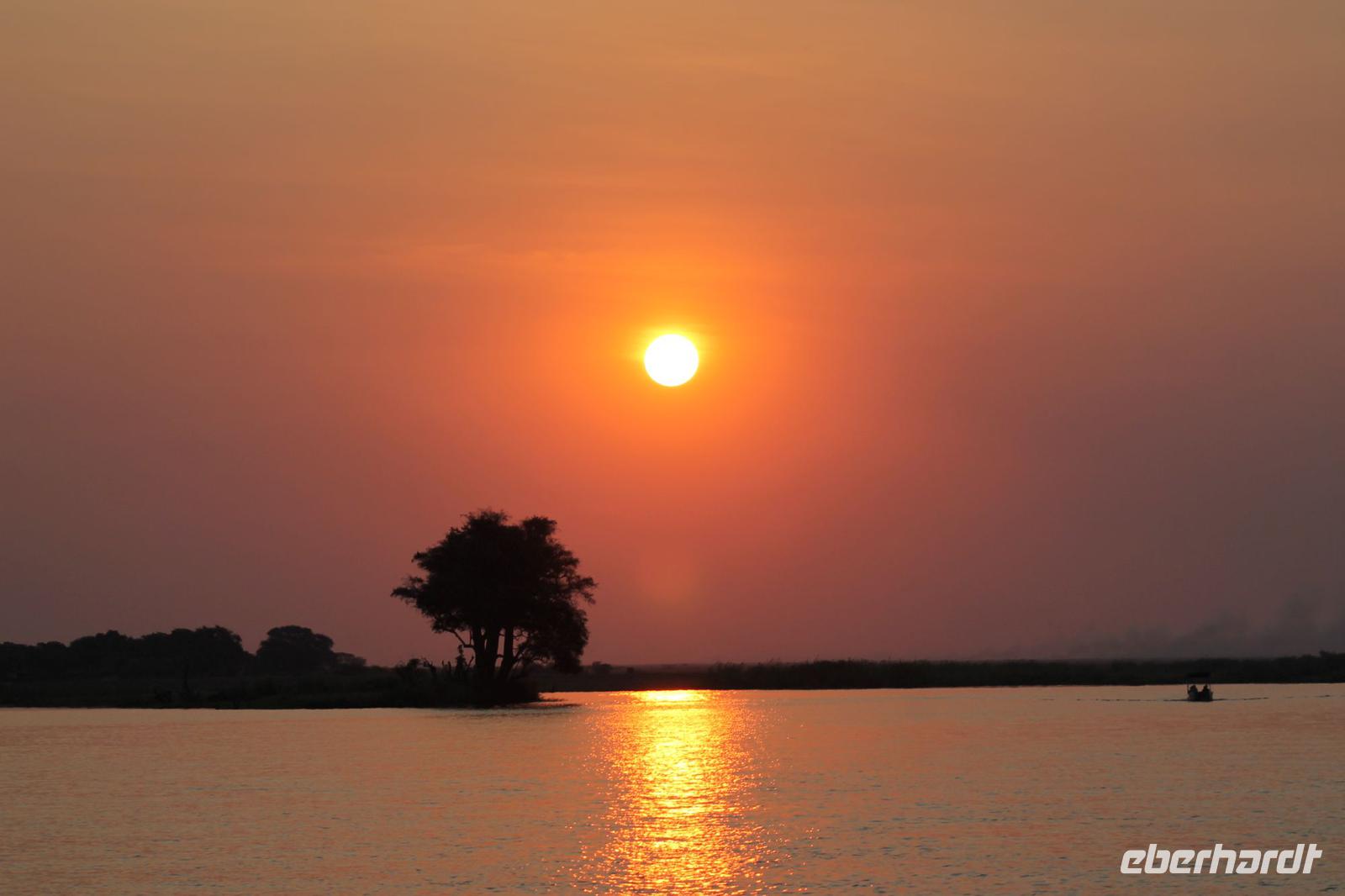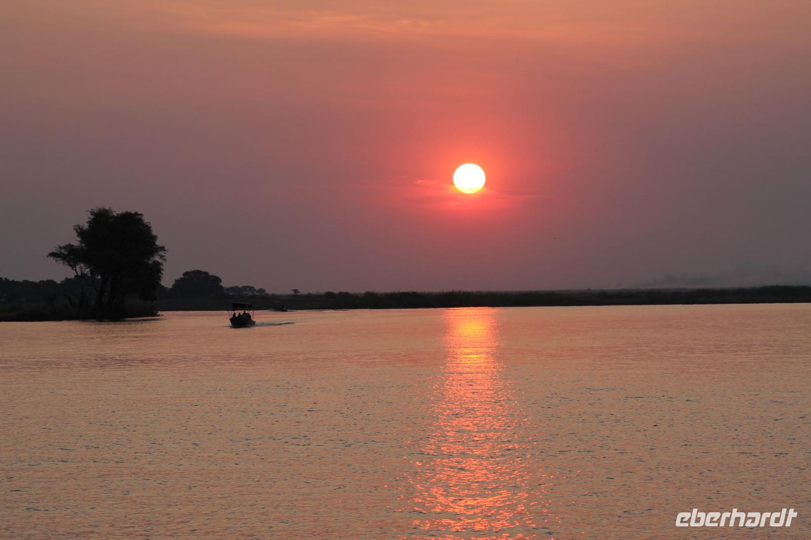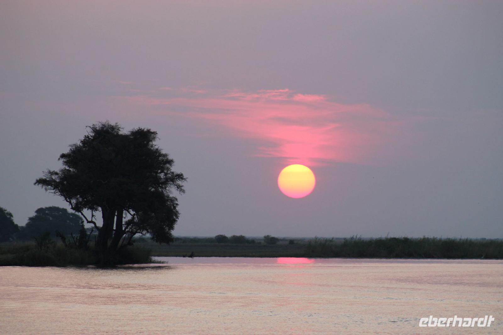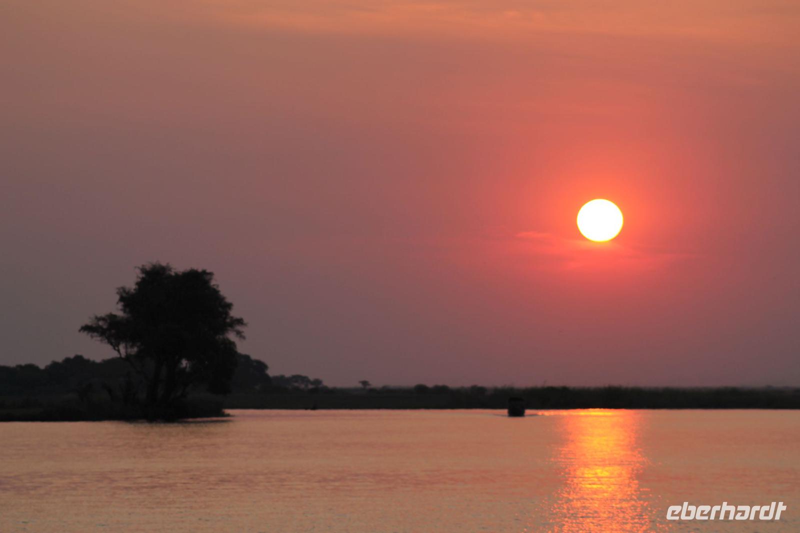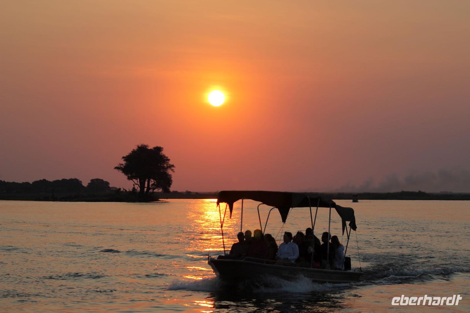 Heute Morgen treffen wir uns bereits 05:45 Uhr an der Rezeption, denn wir unternehmen eine Pirschfahrt in offenen Jeeps im Chobe-Nationalpark. Einige waren schon früh auf den Beinen, denn leider schloss sich Ihre Zimmertür beim Rausgehen von selbst und so musste man sich einen neue Zimmerkarte besorgen. Jedenfalls starten wir wieder wie die Talibanen bekleidet zu unserer Pirsch, denn am Morgen ist es hier doch sehr frisch und der Fahrtwind tut sein Übriges dazu. Wir fahren zunächst etwa 6 Kilometer bis zum offiziellen Eingang des Parks. Unterwegs in der Dunkelheit sehen wir bereits einige Büffel am Straßenrand. Im Park selbst erleben wir einen traumhaften Sonnenaufgang. Von Weitem sehen wir hier am Fluss einige Elefanten und Hippos, die sich am Wasser tummeln. Ganz nah sehen wir außerdem einen Honigdachs, den man hier nur sehr selten sieht. Außerdem auch viele Impalas und andere Antilopen. Später werden wir darauf aufmerksam, dass ein Fahrzeug mehrere Löwen 4 Kilometer von uns entfernt entdeckt hat. Natürlich fahren wir gleich zu dieser Stelle und tatsächlich wir erblicken zwei Löwenmütter mit Ihren Babys. Wir können es kaum glauben. Viele von uns haben nun Ihre „Big Five" vervollständigt. Die Löwenmutter kommt nach einiger Zeit sogar bis etwa 5 Meter auf die Jeeps zu und so können wir Sie aus nächster Nähe fotografieren und bewundern. Ein wirkliches tolles Erlebnis, dass wir sicher noch lange in Erinnerung behalten werden. Mit vielen Eindrücken fahren wir anschließend zurück zu unserer Lodge und genießen hier ein tolles und auch verdientes Frühstück am Fluss. Anschließend nutzen wir die Zeit um uns ein wenig auszuruhen und unsere Eindrücke noch einmal zu ordnen oder auf eigene Faust das Lodgegelände zu erkunden. Am Nachmittag erleben wir eine einzigartige Bootsfahrt. Mit unseren Fotoapparaten bewaffnet fahren wir entlang des Flusses und können kaum glauben was sich links und rechts neben uns abspielt. Wir können gar nicht so schnell knipsen wie die Tiere an uns vorbeilaufen. Wir sehen eine riesige Menge von Elephanten, die sich im Wasser tümmeln und sich anschließend mit Erde beschmeißen um die Parasiten fern zu halten. Außerdem überall Hippos, die Gras fressen und mächtige Giraffen an der anderen Seite. Mit dem Boot gelangen wir ganz nah an die Tiere heran. Später sehen wir sogar einen Kampf zwischen zwei Hippo-Bullen, die zeigen wer der Stärkere von beiden ist. Ein einmaliges Erlebnis was wir auch nach Toms Aussage sehr selten in Afrika sehen. Kurze Zeit später tümmeln sich auch die Krokodile am Rand des Flusses und wir sehen eins nach dem anderen. Einem können wir sogar ins Maul schauen und überprüfen ob er sich heute auch die Zähne geputzt hat J Natürlich sehen wir auch viele Vogelarten was nicht nur die Ornitologen unter uns freut. Ein Höhepunkt jagt heute den nächsten und so können wir auch beobachten, wie eine ganze Elephantenherde den Fluss überquert um auf die andere Seite zu gelangen wo das Paradies ist. Die Elefantendamen tragen dabei ganz sorgfältig Ihre Babys an die andere Seite und wir sehen das Schauspiel hautnah. Mit vielen Eindrücken und auch etwas benommen von so vielen Erlebnissen an einem Nachmittag genießen wir auf dem Boot noch einen traumhaften Sonnenuntergang im Chobe Nationalpark. Kaum zu glauben wie sich der rote Ball gekonnt hinter dem Baum versteckt und uns das typische Afrika Bild zeigt. Es ist wirklich wie aus einem Bilderbuch. Zurück in unserer Lodge machen wir uns kurz frisch und genießen wieder ein tolles Abendessen vom Buffet u.a. mit leckerem Impala Steak. Heute verabschieden wir uns auch offiziell von unserem Busfahrer Chris, alias „Pinky", da er uns morgen nur noch bis zur Grenze nach Sambia bringt. Zum Abschied schenken wir ihm pinke Marschmallows J Wir danken ihm für die tolle Zeit und lassen den Abend gemütlich an der Bar ausklingen. Gute Nacht schönes Afrika.