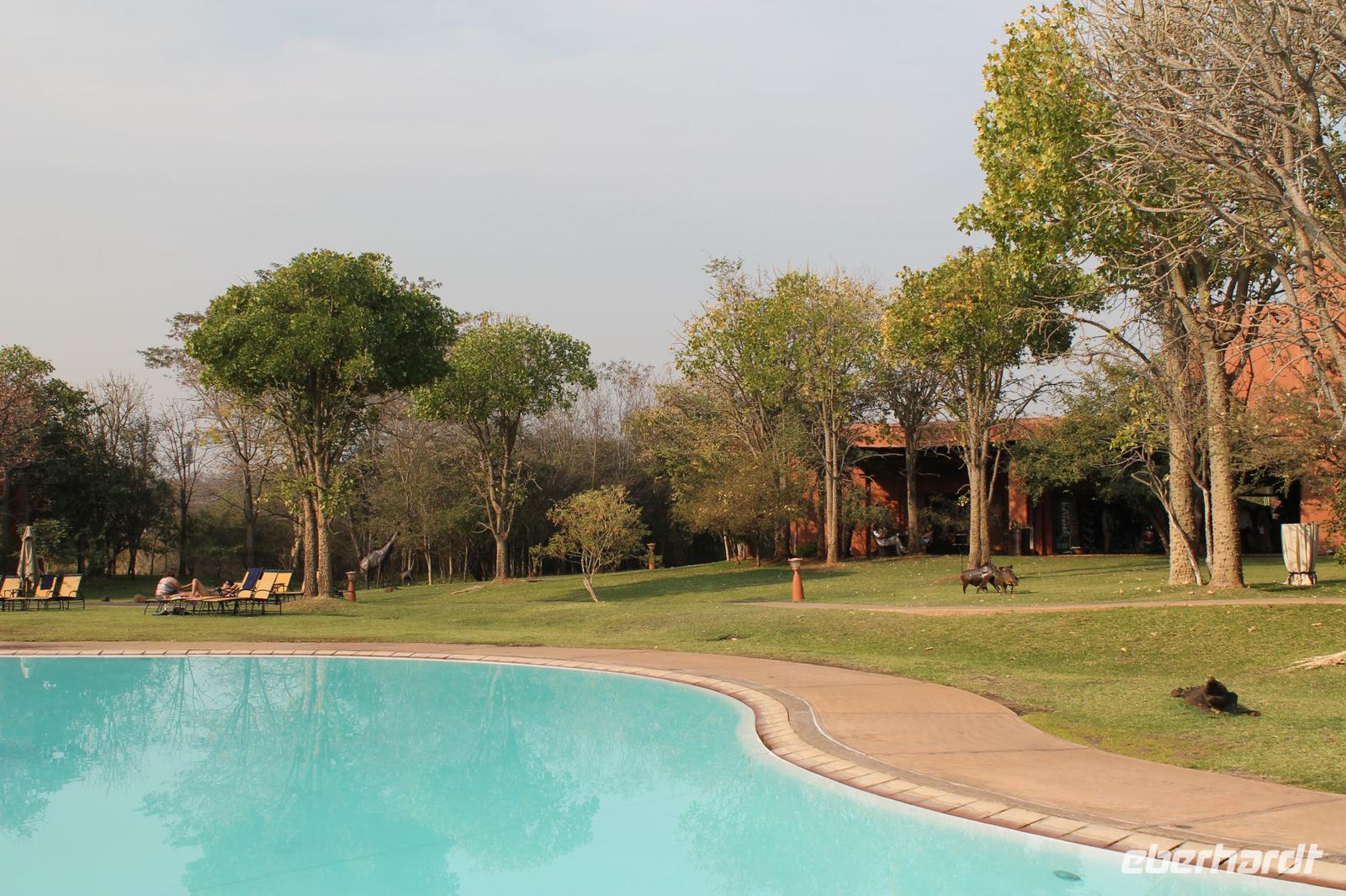 Am Mittag picknicken wir in der Natur am Fish Eagle Rastplatz und genießen leckeres Brot mit Wurst und Käse. Das wollen wir jetzt jeden Tag haben Nach weiteren Tierbeobachtungen bringen uns „Mausi" und Chris wieder sicher zu unserer Lodge zurück. Hier bleibt genügend Zeit um das Erlebte zu verarbeiten. Einige von uns starten direkt danach bereits zu einer Pirsch der besonderen Art. Bei einer „Abendpirsch" erkunden Sie erneut den Park und so erfahren wir bei Ihrer Rückkunft, dass Sie Löwen und Elephanten gesehen haben.