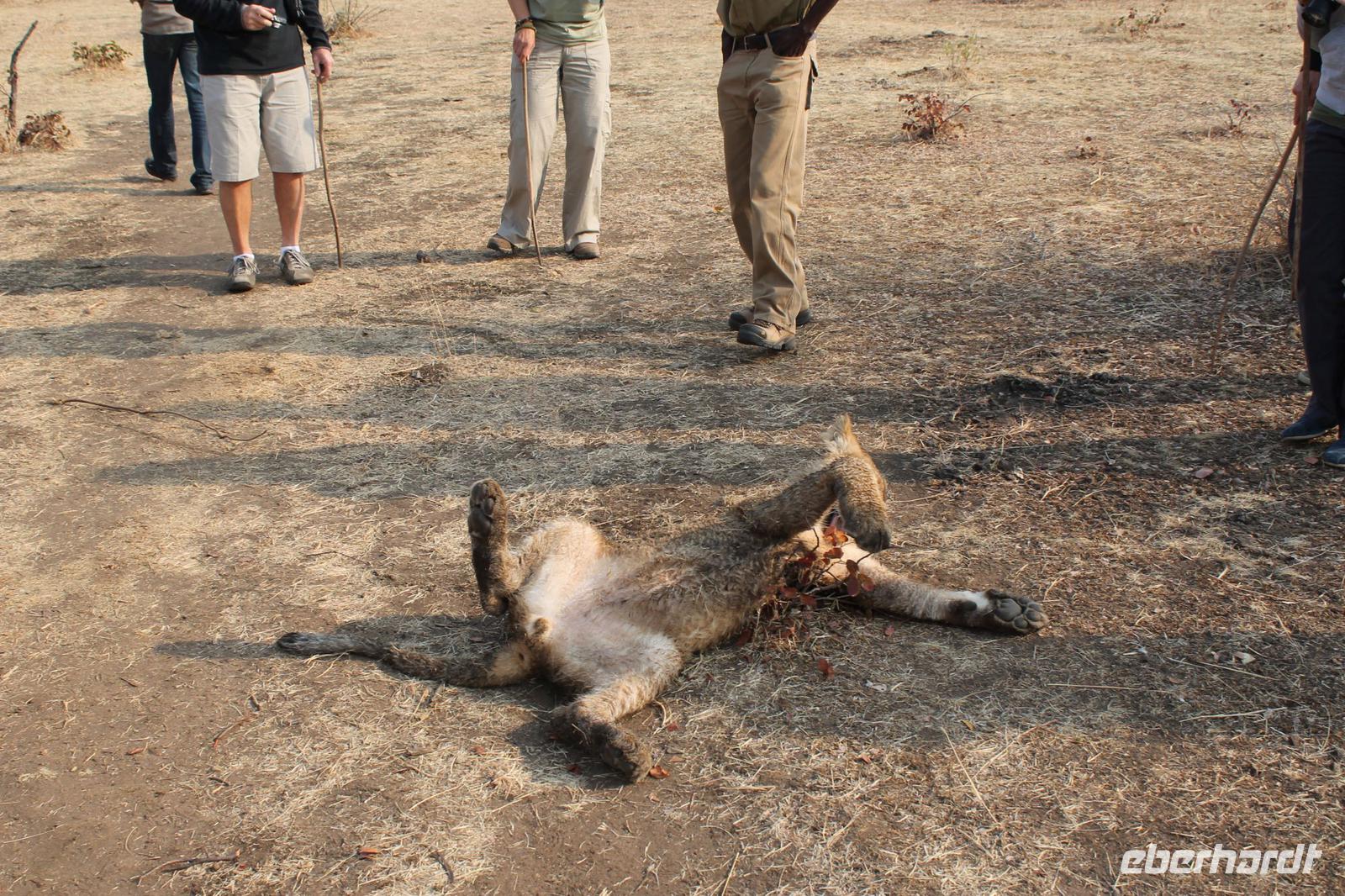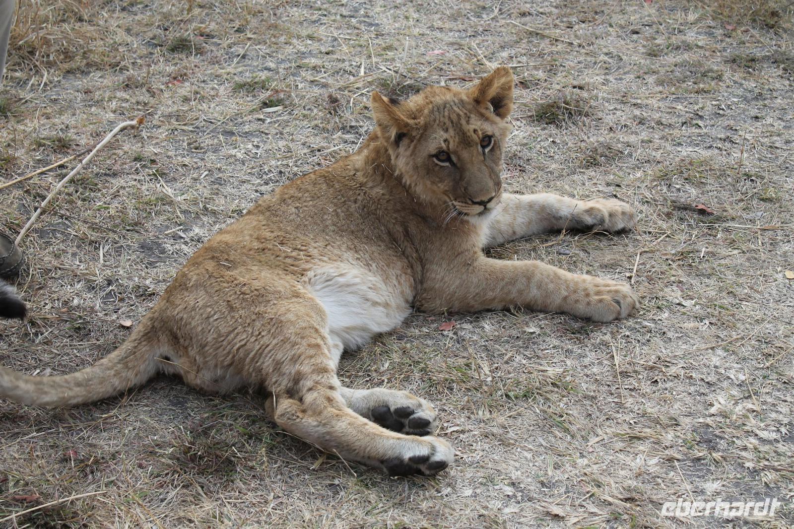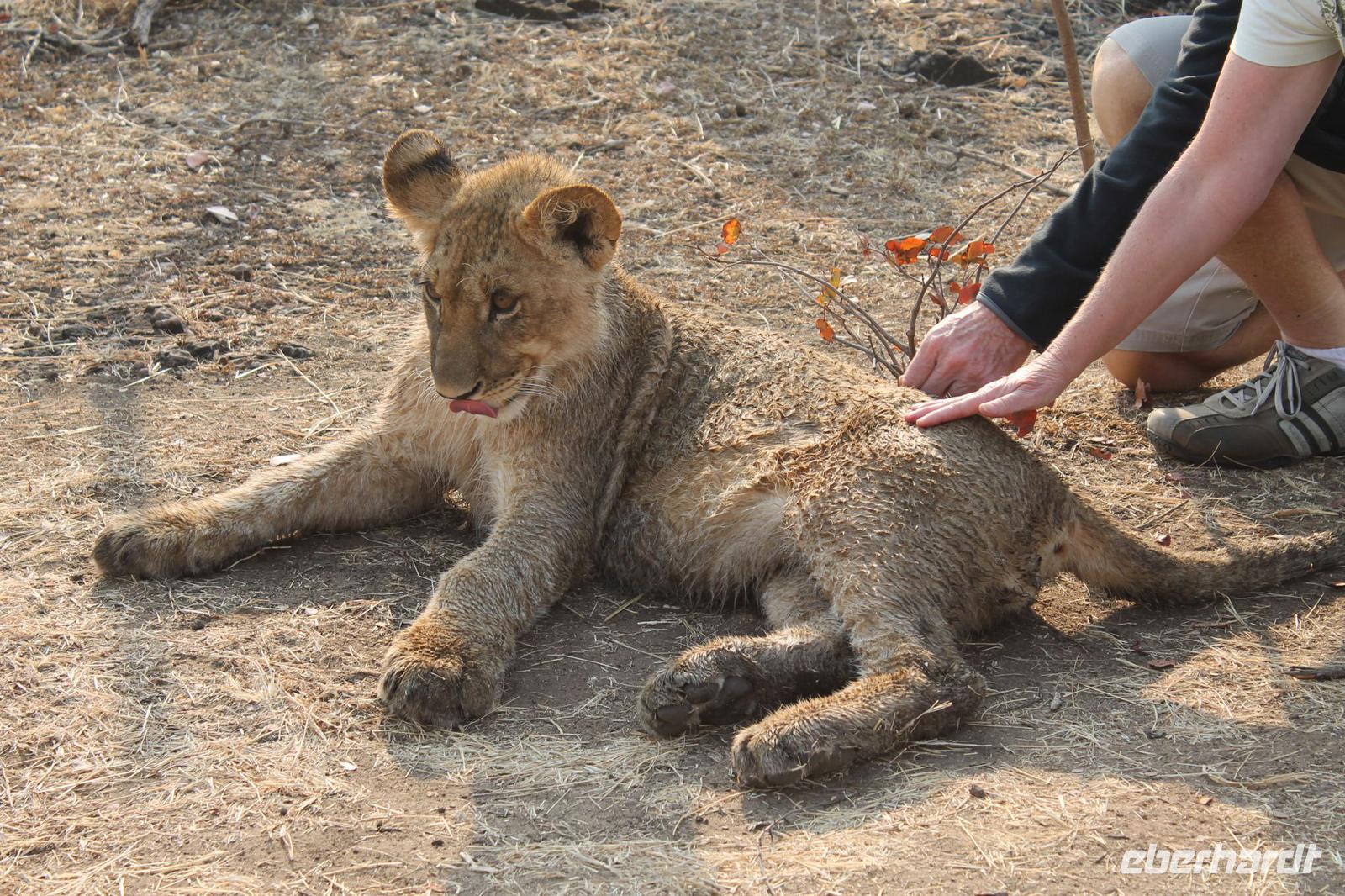 Einige Gäste müssen heute früh aufstehen, denn Sie gehen zusammen mit Vicky auf Löwenjagd. Pünktlich um halb 7 werden wir an unserem Hotel abgeholt und fahren zunächst etwa eine halbe Stunde zum Startpunkt unserer Tour mit den Löwen. Unterwegs läuft uns eine riesige Giraffe vor den Bus und auch einige Zebras. Außerdem sehen wir am Straßenrand Elephanten. Die Fahrt hat sich also schon jetzt gelohnt J Am Center angekommen bekommen wir leckeren Kaffee und Tee und werden in einem Film, über die Verhaltensweisen informiert und wie wir mit den Löwen umgehen soll. Die Stiftung unterstützt hier ein Auswilderungsprogramm und so tun wir hier etwas für den guten Zweck. Alles wird uns genau erklärt und erfahren, dass es sich um 3 junge Löwen im Alter von 8 Monaten handelt, die wir begleiten werden. Nach einer kurzen Fahrt sehen wir bereits die Vierbeiner und schießen erste Fotos. Anschließend spazieren wir je in zwei Gruppen mit zehn Personen zusammen mit den Rangern und den Löwen. Diese sind noch ganz schön verspielt und sehr aktiv diesen Morgen. Trotzdem gelingt es uns Sie anzufassen und ein schönes Foto mit einem Löwen zu schießen, auch wenn sich Vicky nicht gleich getraut hat J Nach einer etwa einstündigen Wanderung mit den Löwen durch den Bus kehren wir mit einem breiten Grinsen in das Center zurück. Hier erfahren wir, dass wir bei unserem Gang gefilmt wurden und können uns nun selbst mit den Löwen im Fernsehen anschauen. Einige erwerben die DVD anschließend käuflich. Mit vielen Eindrücken fahren wir zurück zu unserem Hotel und stärken uns bei einem späten Frühstück. Auch die Helikopter Flieger sind bereits zurück und ebenfalls voll auf begeistert. Den letzten Nachmittag nutzt jeder individuellund so spazieren einige nochmal mit Vicky oder alleine zu den Fällen oder zum Markt. Am Nachmittag tummeln sich auch Zebras und Impalas direkt auf der Anlage und man könnte denken, Sie posieren extra für ein Foto. An der Hotelbar genießen wir ein Savanna Dry oder ein Bierchen. Um 16:00 Uhr treffen wir uns mit Tom, da wir am letzten Abend mit allen eine Dinner Cruise auf dem Sambesi unternehmen. Auf dem Schiff ankommen bekommen wir kostenfrei Getränke und alles was wir wünschen. So stoßen wir alle nochmal auf unsere unvergessliche Reise an und das alle gesund geblieben sind und könnten uns vorstellen noch ein paar Wochen zusammen hier zu bleiben. So toll war es. Und so behielt Tom durchaus Recht als er und am Anreisetag sagte, dass wir hier die schönsten Tage unseres Lebens verbringen sollen. Das ist aber nicht das Einige, dass wir heute feiern. Ein Gast unserer Reisegruppe hat Geburtstag und so trinken wir natürlich auch auf sein Wohl. Unterwegs sehen wir viele Hippos und auch ein Krokodil, dass sich gekonnt und elegant im Wasser fortbewegt. Wir essen einige Snacks und später auch einen Burger mit Salat, Hühnchen und Wurst. Die letzte halbe Stunde nutzen wir um uns in aller Form noch einmal bei Tom zu bedanken. Wir singen auch ein Ständchen: „Goodbye Tommy, goodbye Tommy, die Zeit mit dir war wunderschön. Goodbye Tommy, goodbye Tommy, wir hoffen, wir werden uns wiedersehen". So stehen auch dem ein oder anderem die Tränen in den Augen. Tom war für uns wie ein Vater und seine Fürsorglichkeit, Herzlichkeit und einfach nur sein einzigartiges Wesen werden uns wohl noch lange in Erinnerung bleiben. Zurück in der Lodge, lässt es sich das Geburtstagskind nicht nehmen an der Hotelbar noch einen Drink für jeden zu spendieren und so feiern wir noch eine Weile und plaudern über das Erlebte.